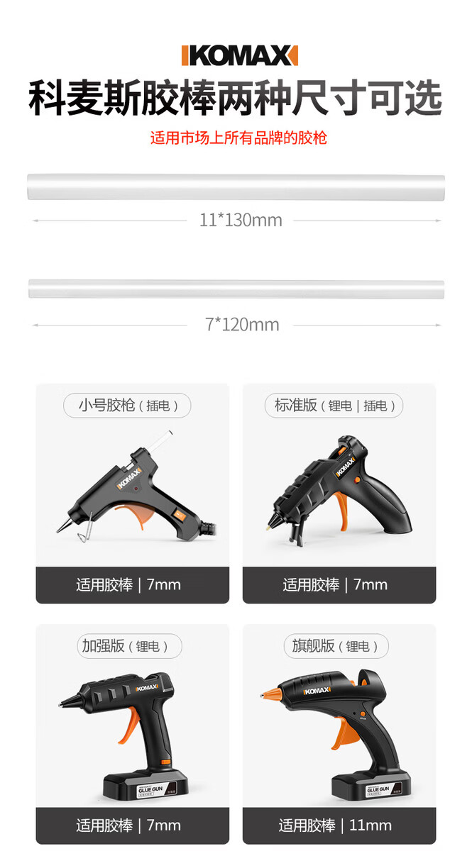 Pupan Kemax hot melt glue gun household transparent hot melt glue stick glue strip 711MM high viscosity electric hot melt solid glue 0 formaldehyde 7MM high purity high viscosity glue stick 120 pieces
