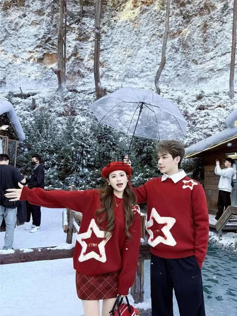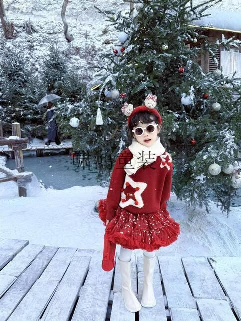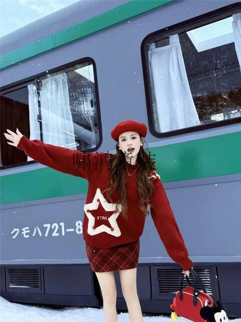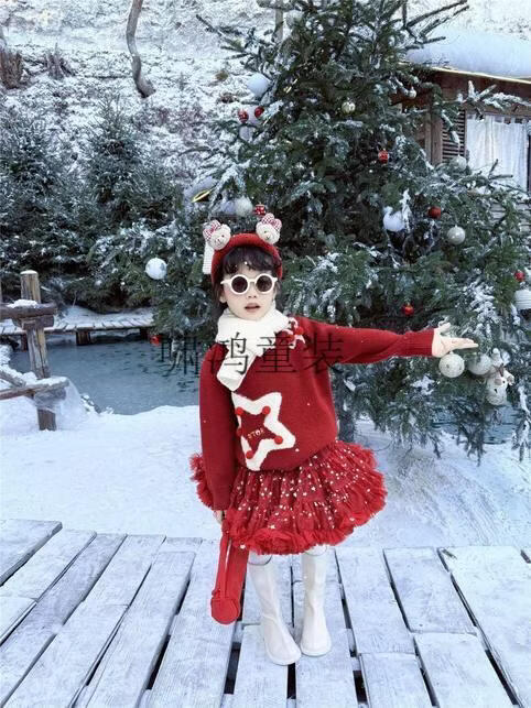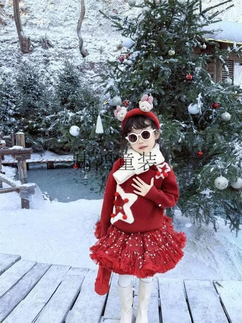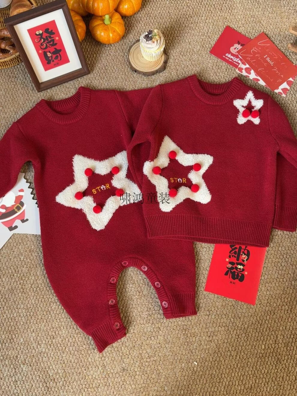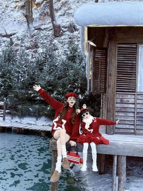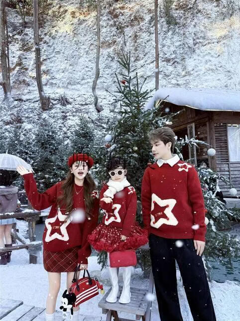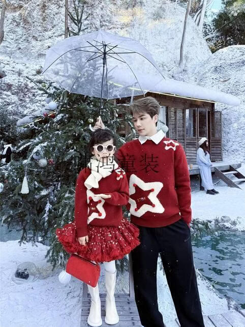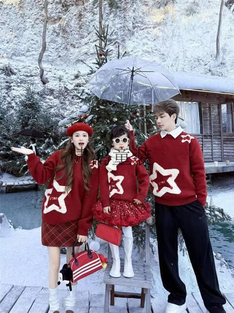 Wooden house parent-child clothing New Year 2026 new trendy family of three or four Year of the Horse red New Year clothes festive thickened sweater trendy red 80 cm