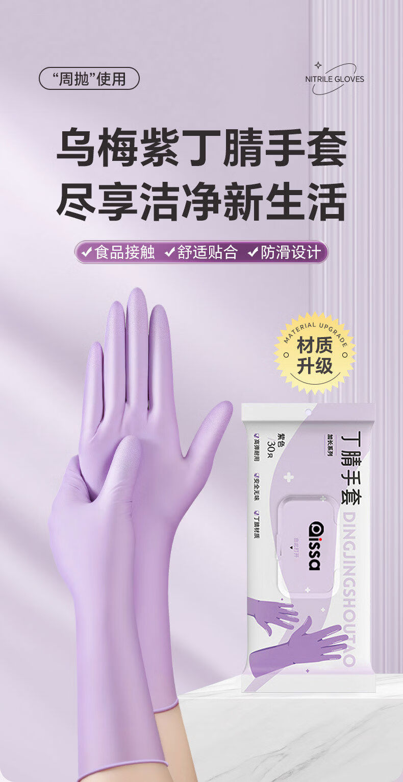 PISSA nitrile gloves food grade housework dishwashing kitchen cleaning durable extended latex disposable gloves store upgraded lengthened and thickened 4 packs 120 ebony purple