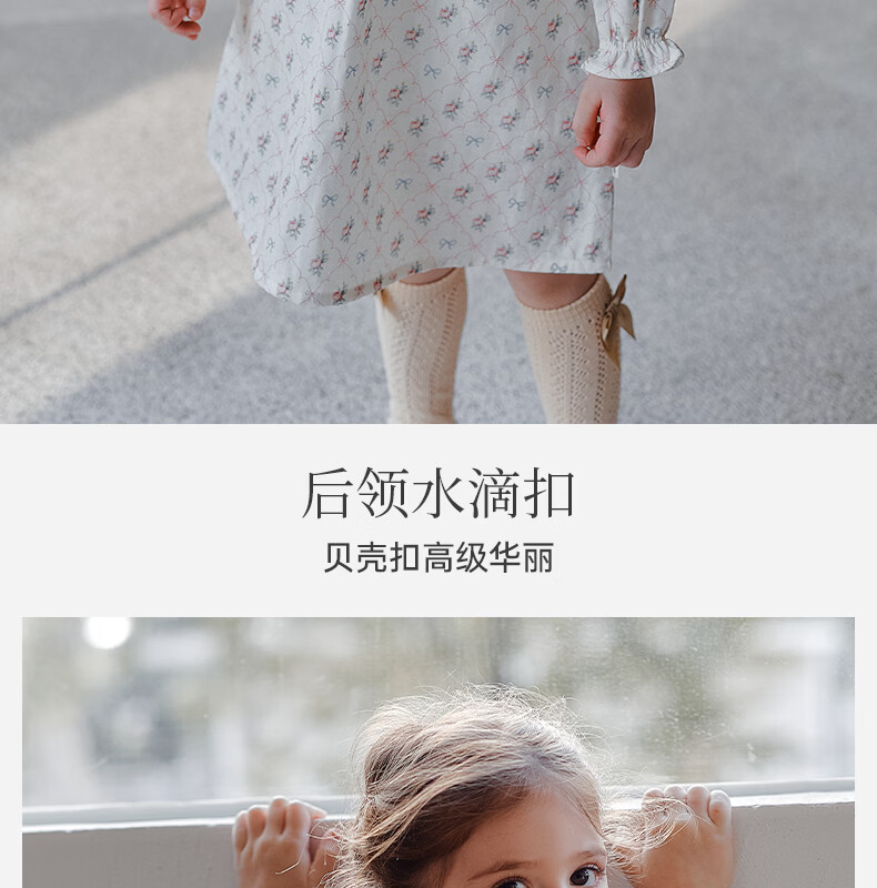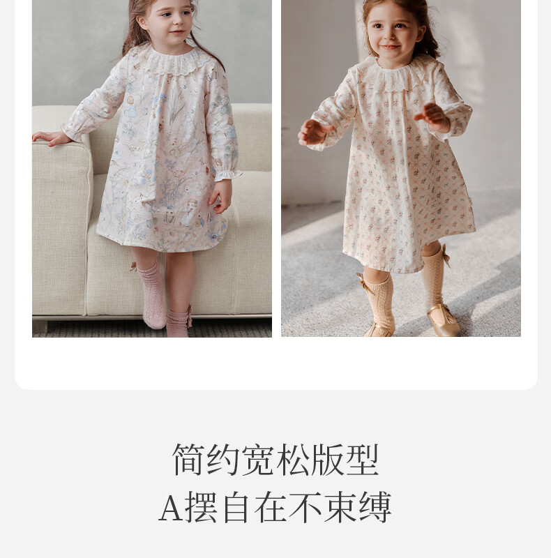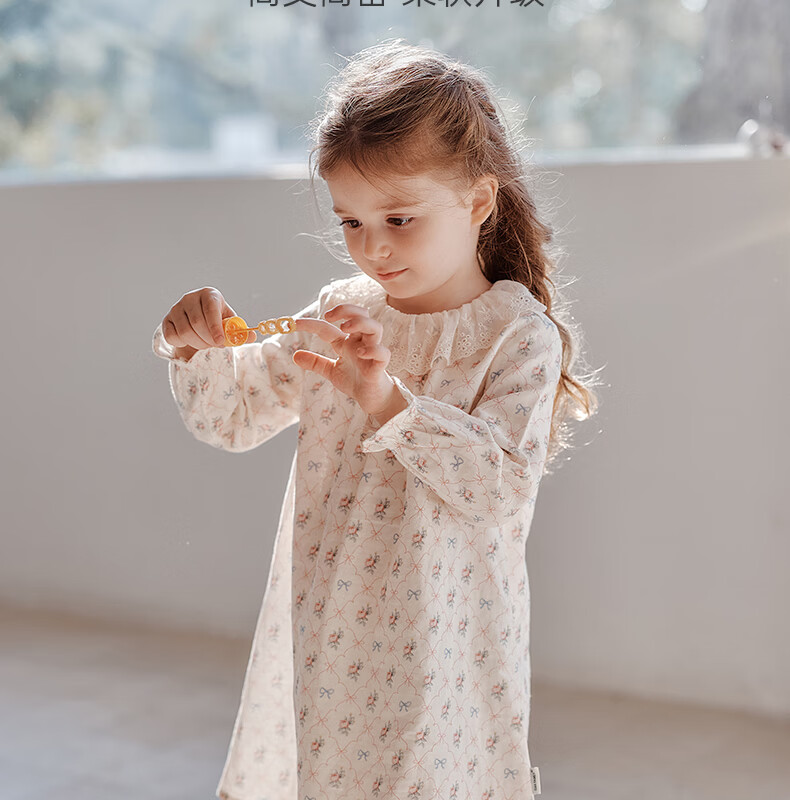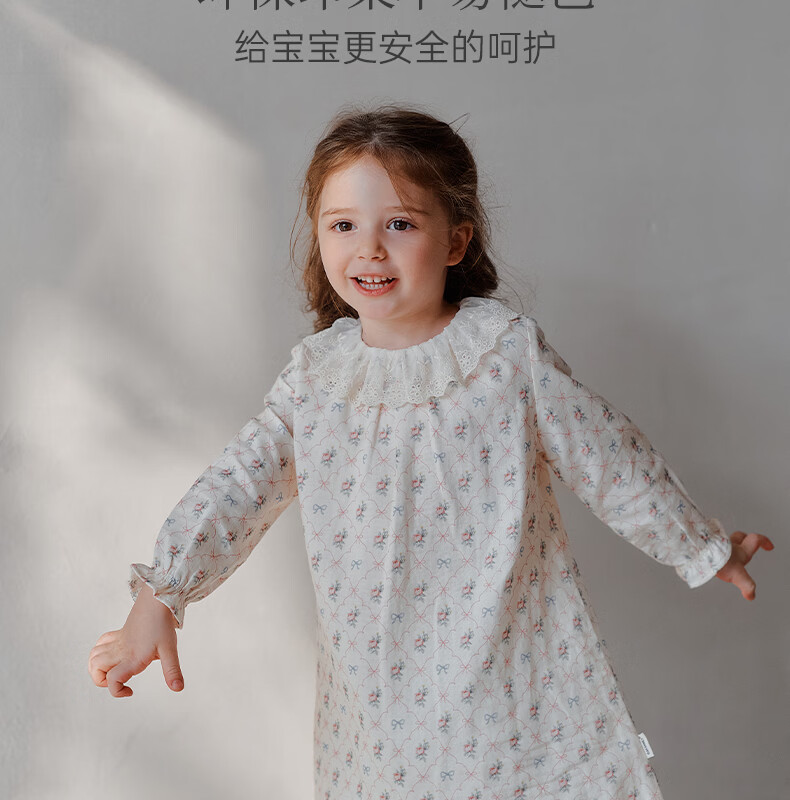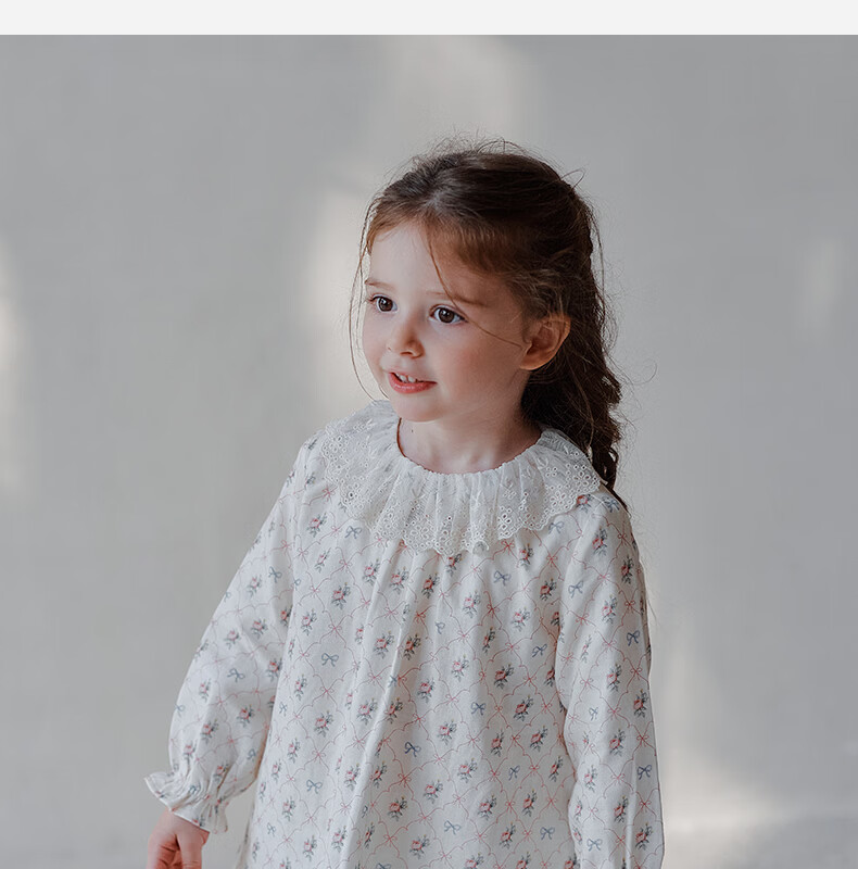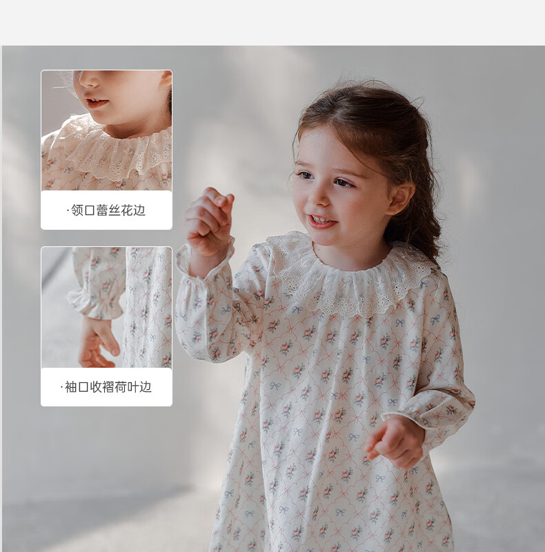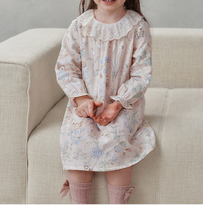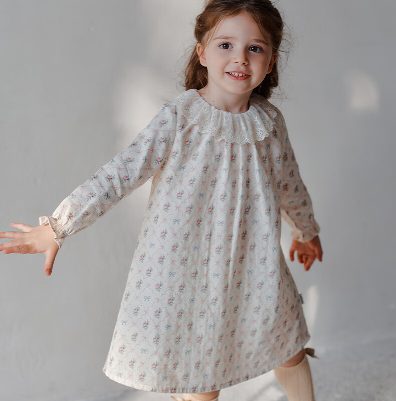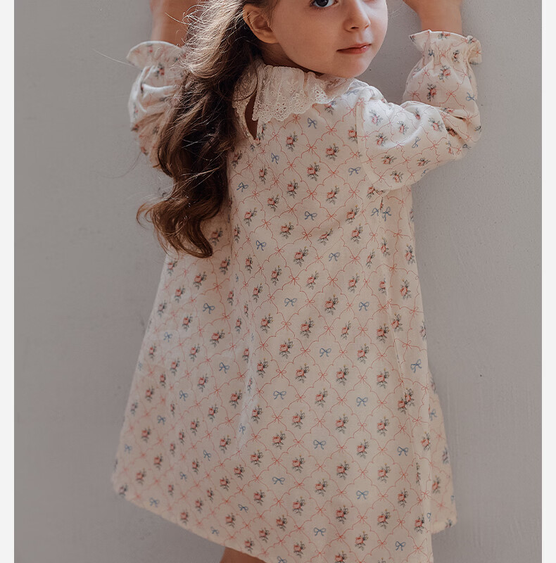 OAK FAMILY spring children's cotton dress lace ruffle collar long-sleeved baby girl nightgown Moonlight Rose 80