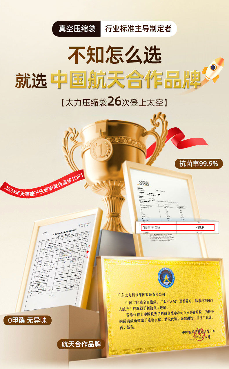 Taili vacuum storage compression bag for quilts, clothes, down jackets, quilts, special bags, no need to pump air, 365-day air leakage guarantee for aerospace cooperation, C20 down jacket + 4 beds, 8Jin Jin is equal to 0.5kg, quilt, 2 medium square + 4 medium three-dimensional