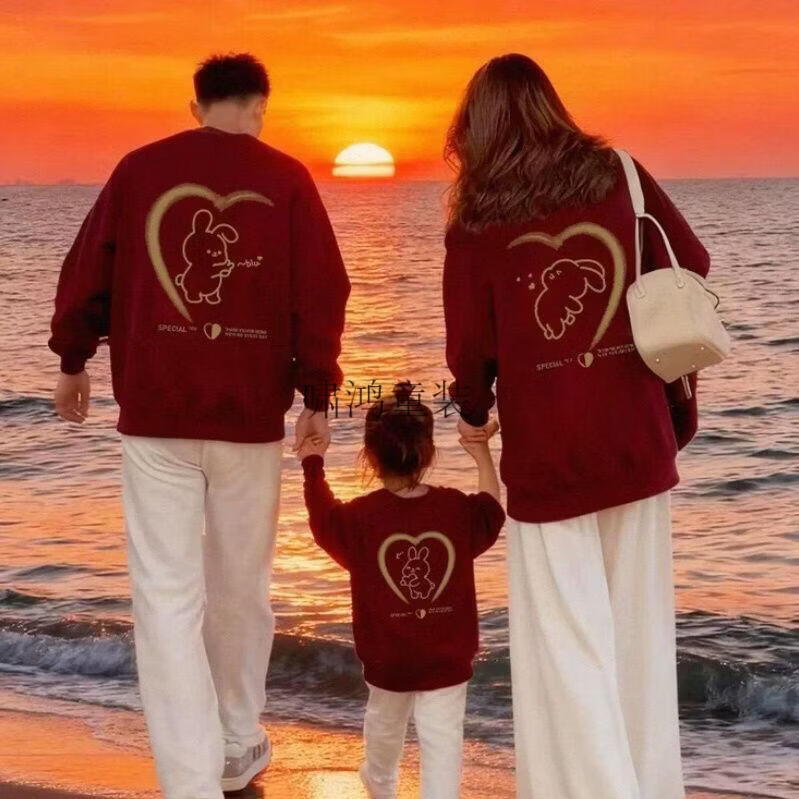 Wooden house parent-child outfit red family of three and four mother-daughter style family outfit sweatshirt winter plus velvet love pattern clothes burgundy (plus velvet) 170 Dad M size (recommended 105-125 Jin Jin equals 0.5 kg)