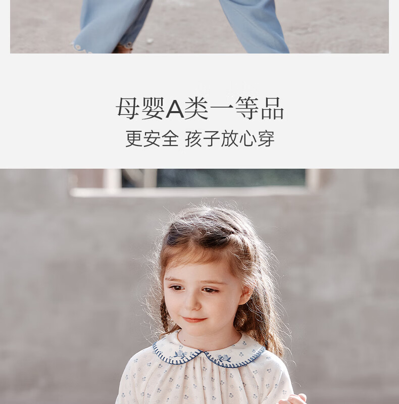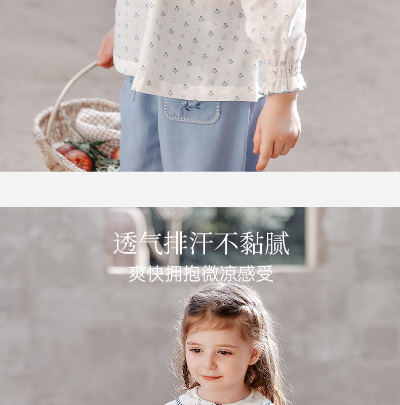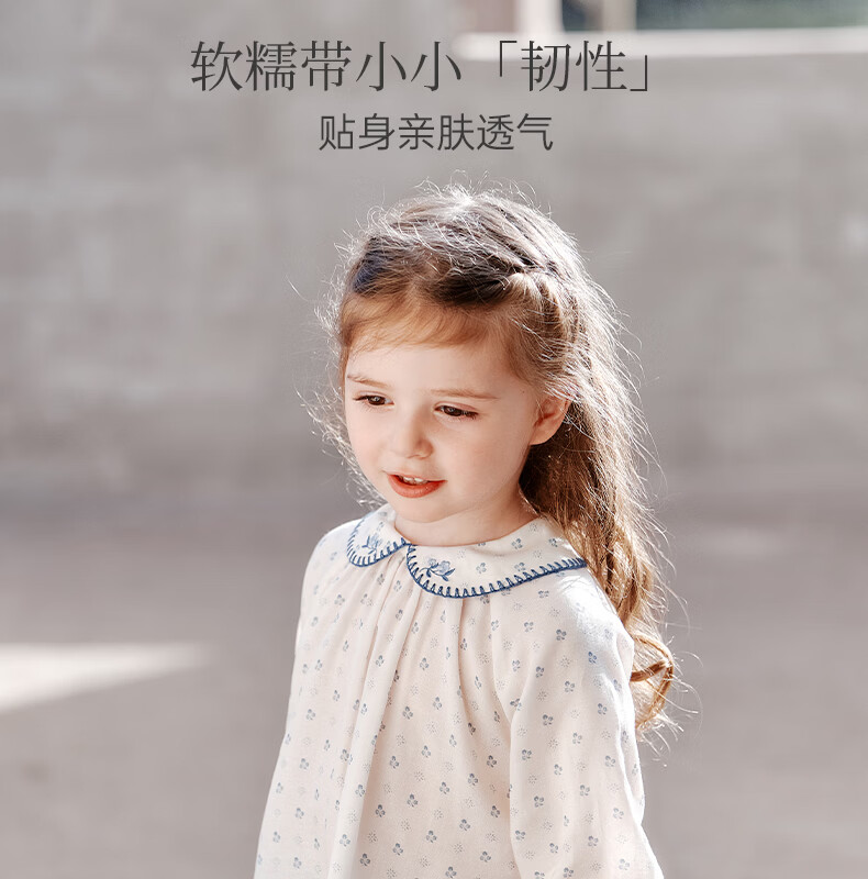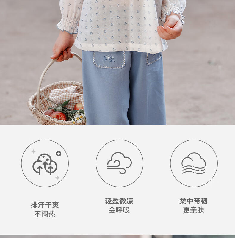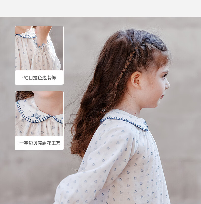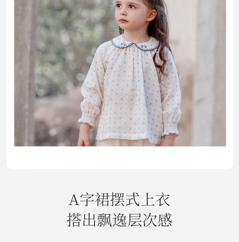 OAK FAMILY2026 spring children's Tencel linen long-sleeved tops girls baby loose T-shirt small blue flower 80