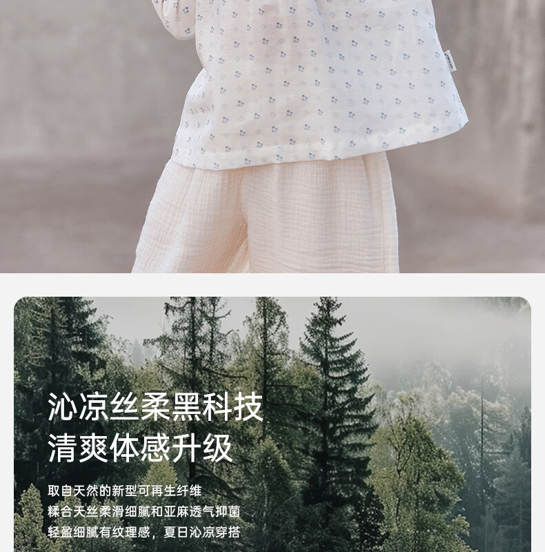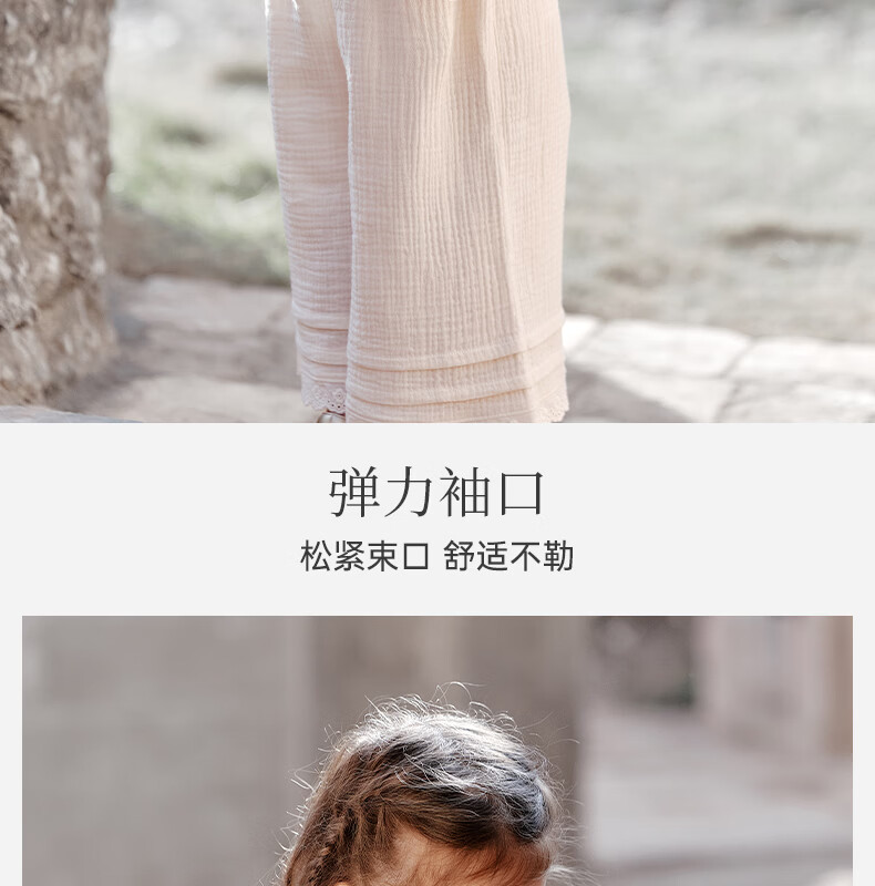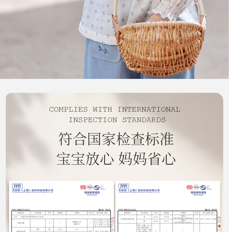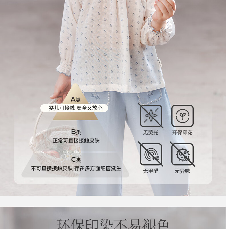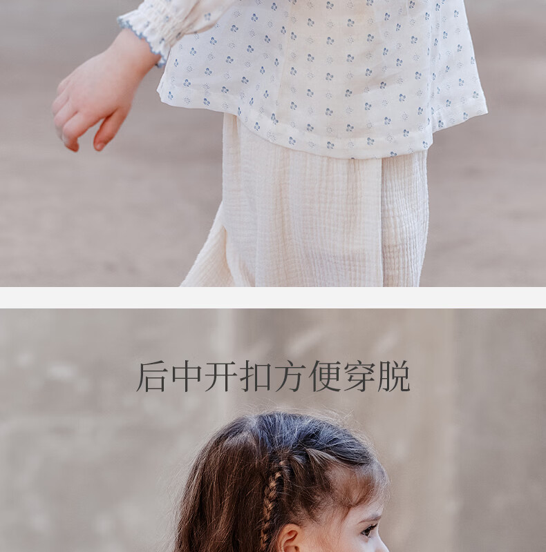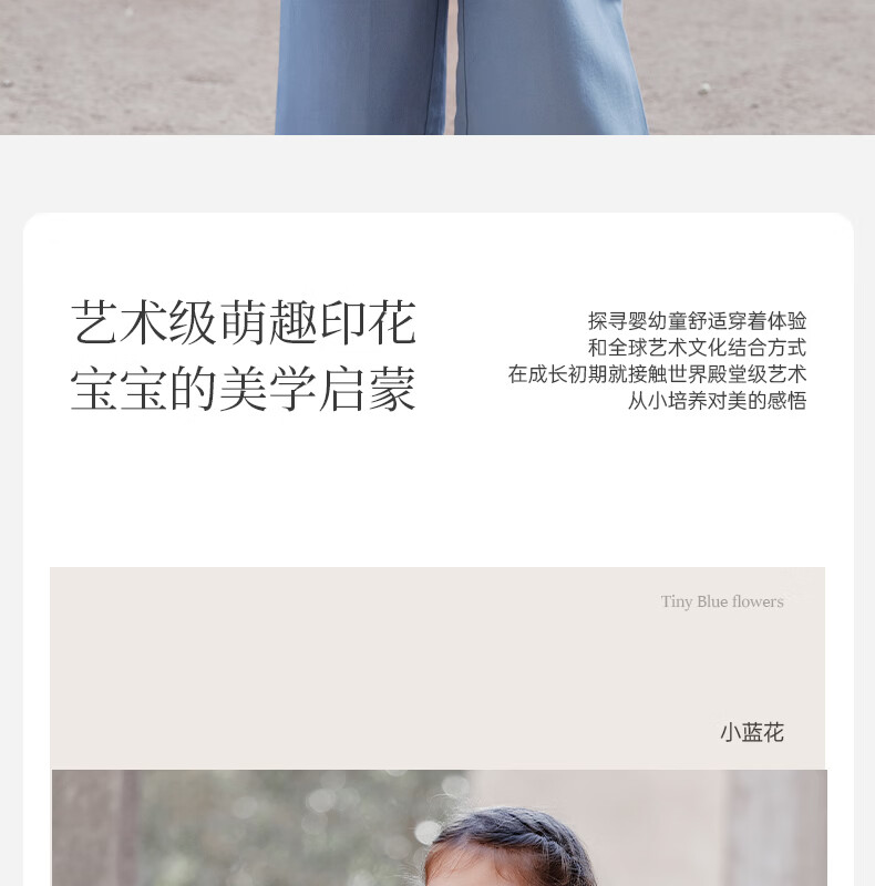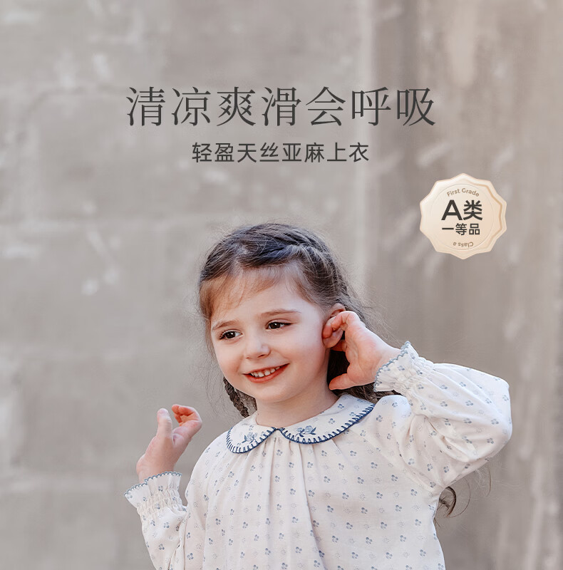 OAK FAMILY2026 spring children's Tencel linen long-sleeved tops girls baby loose T-shirt small blue flower 80