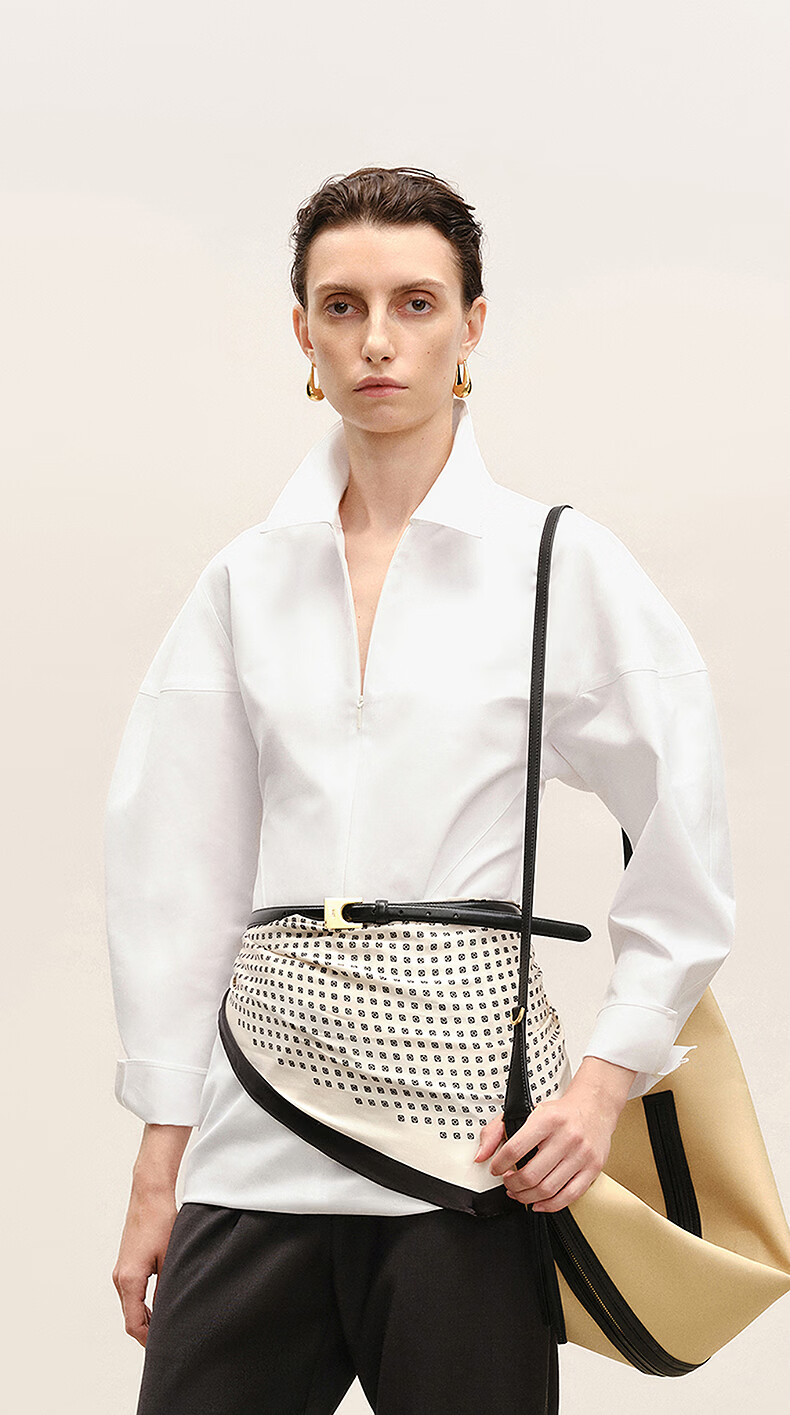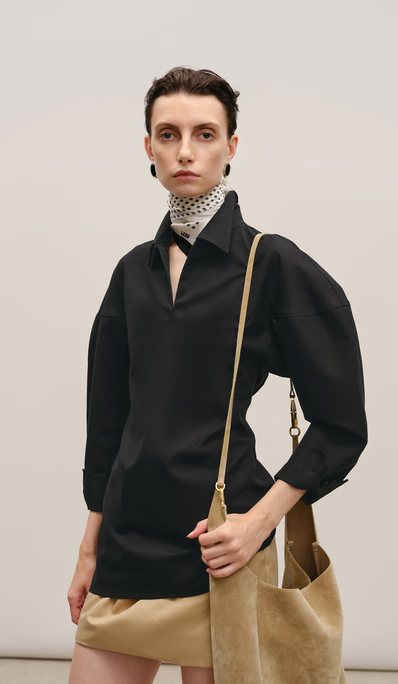 LESS shopping mall same style 2026 spring new cotton waisted commuting temperament solid color shirt 2Q2216850 105 semi-bleached S