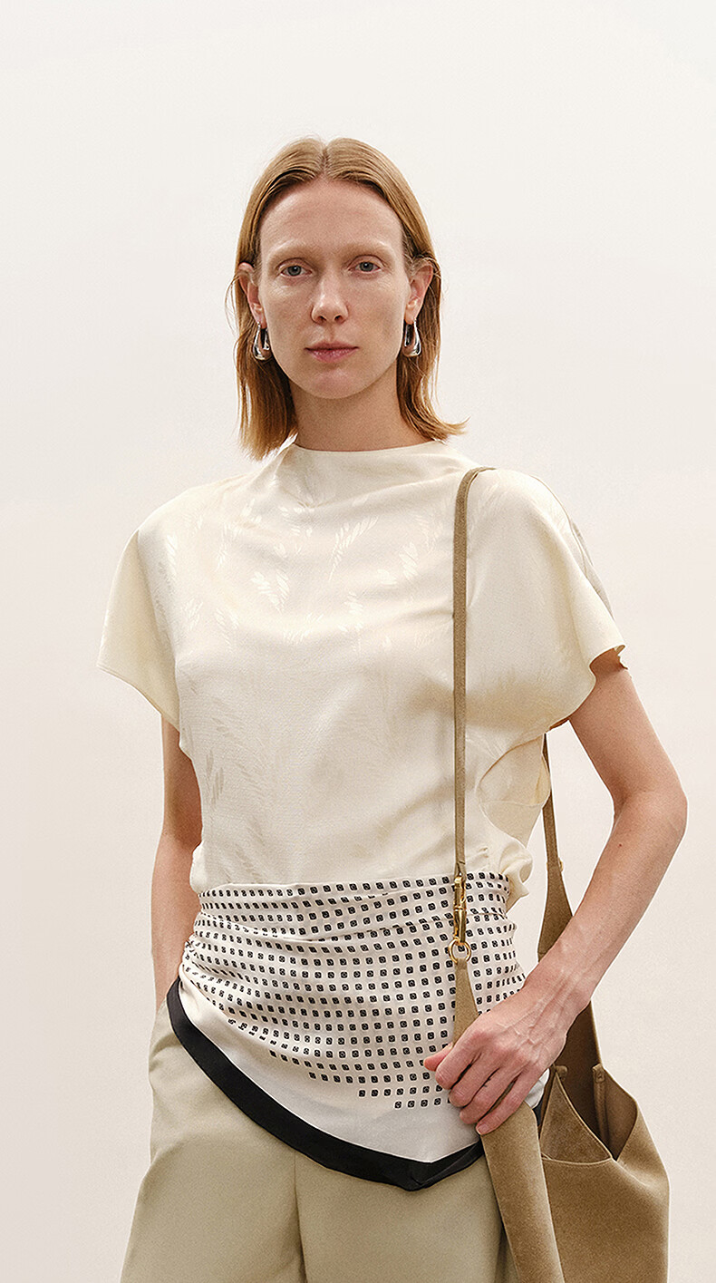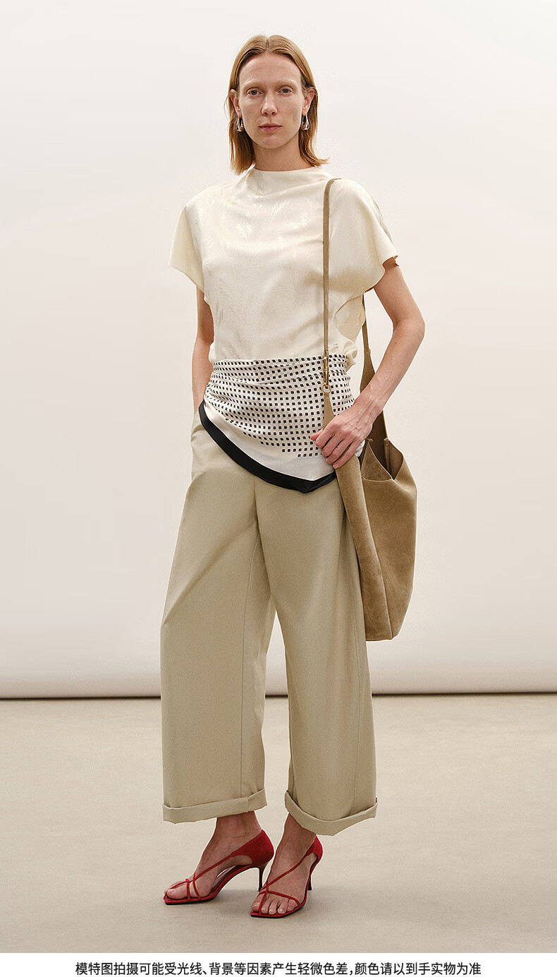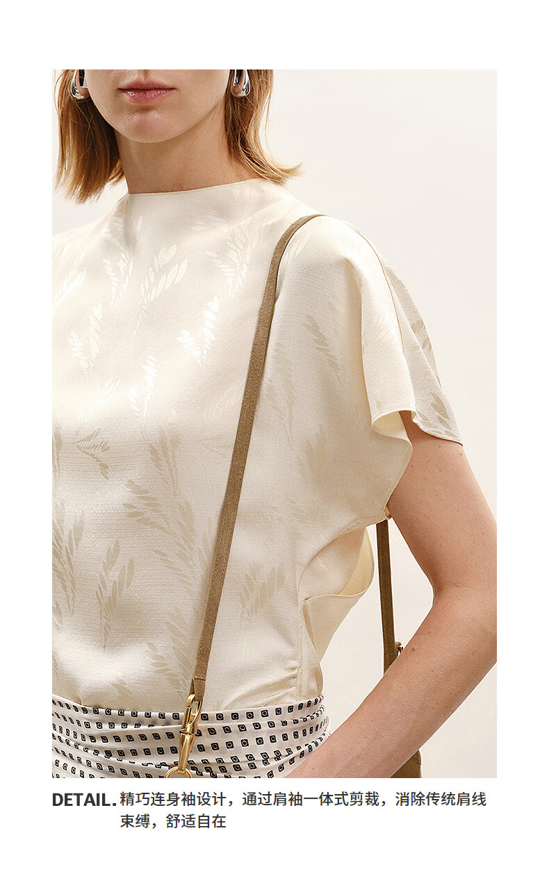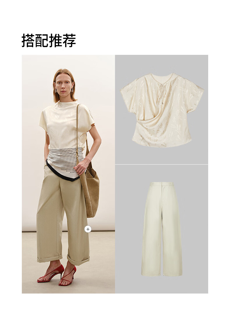 LESS shopping mall same style/CNY series 2026 Spring New Chinese silk short-sleeved shirt for women 2Q2216810 110 beige S