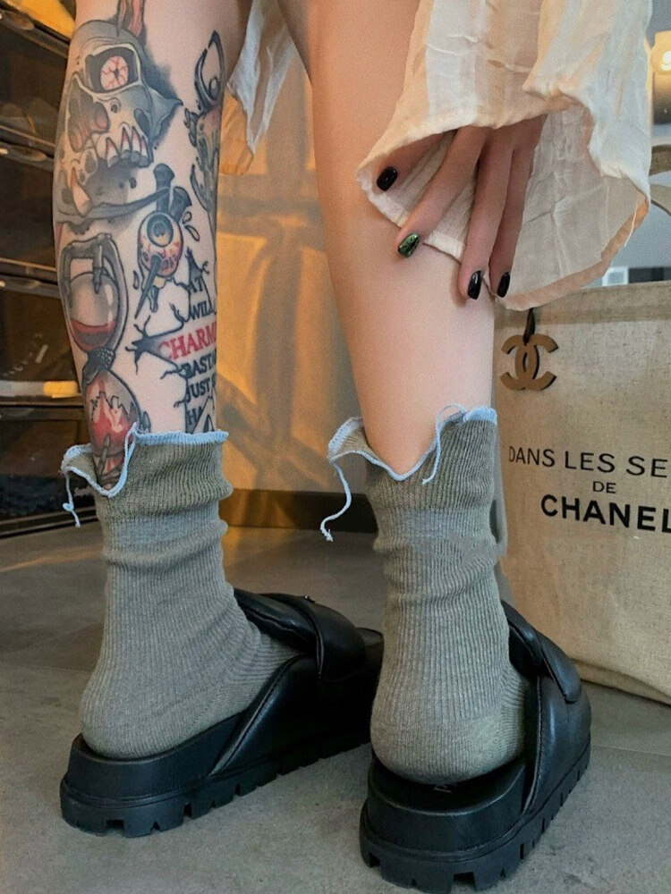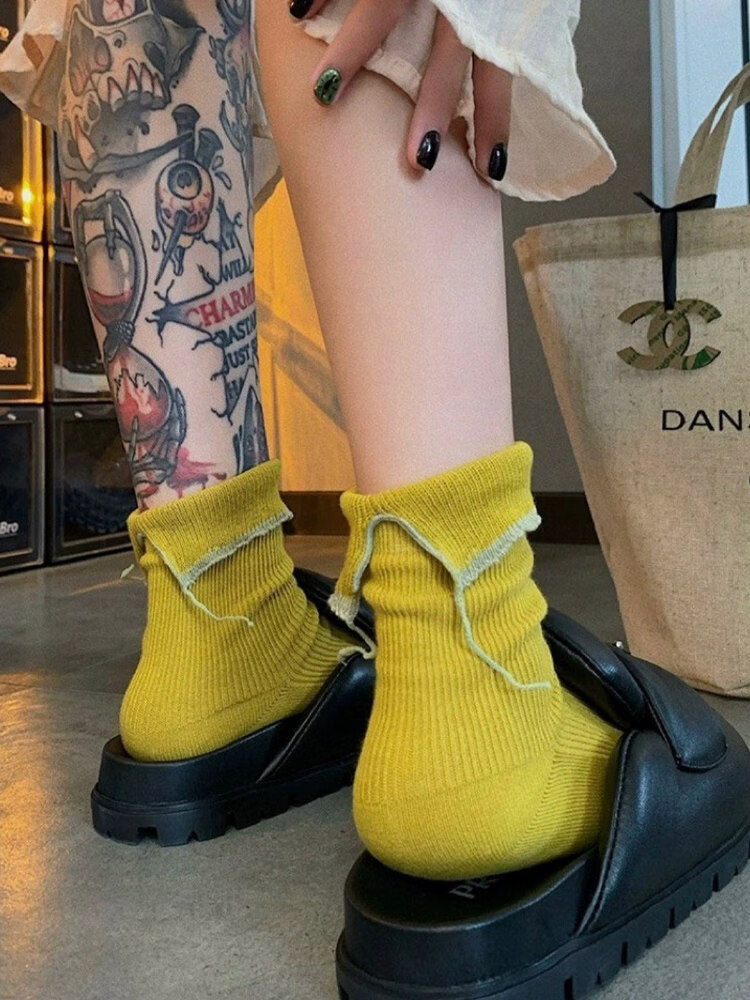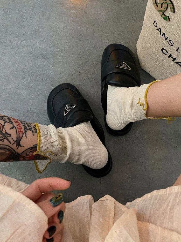 Ao Yan Lai FR2U Japanese style rear slit pile socks, lazy style, super soft and comfortable on the feet, blue