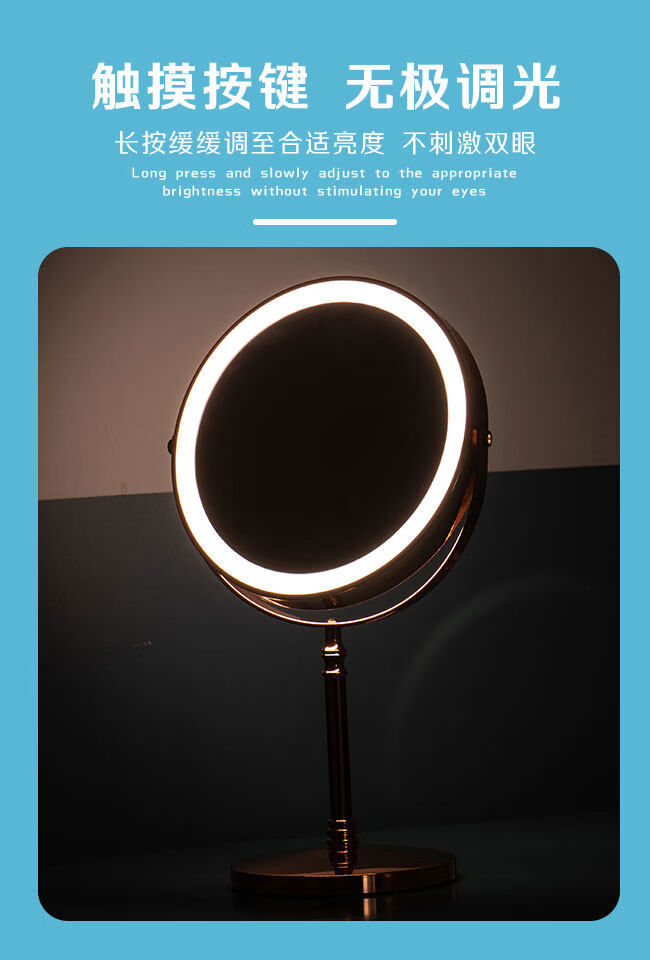 LED double-sided mirror 10 times magnification makeup mirror lifting tabletop with light ten times black head dressing metal mirror silver 8 inches rechargeable ten times magnification