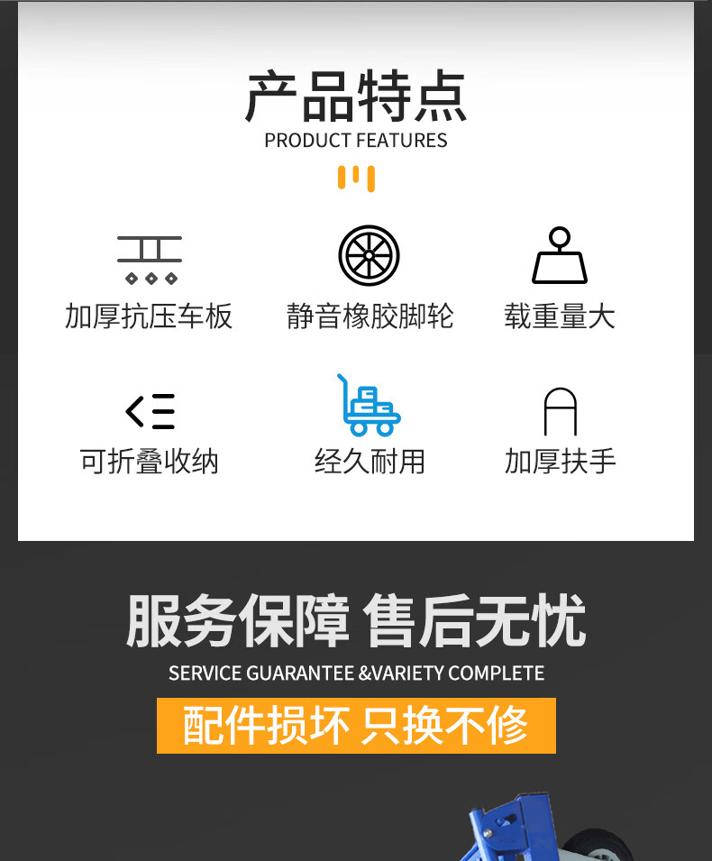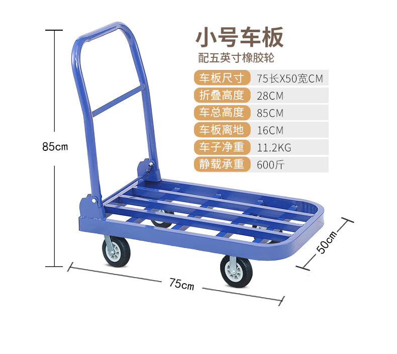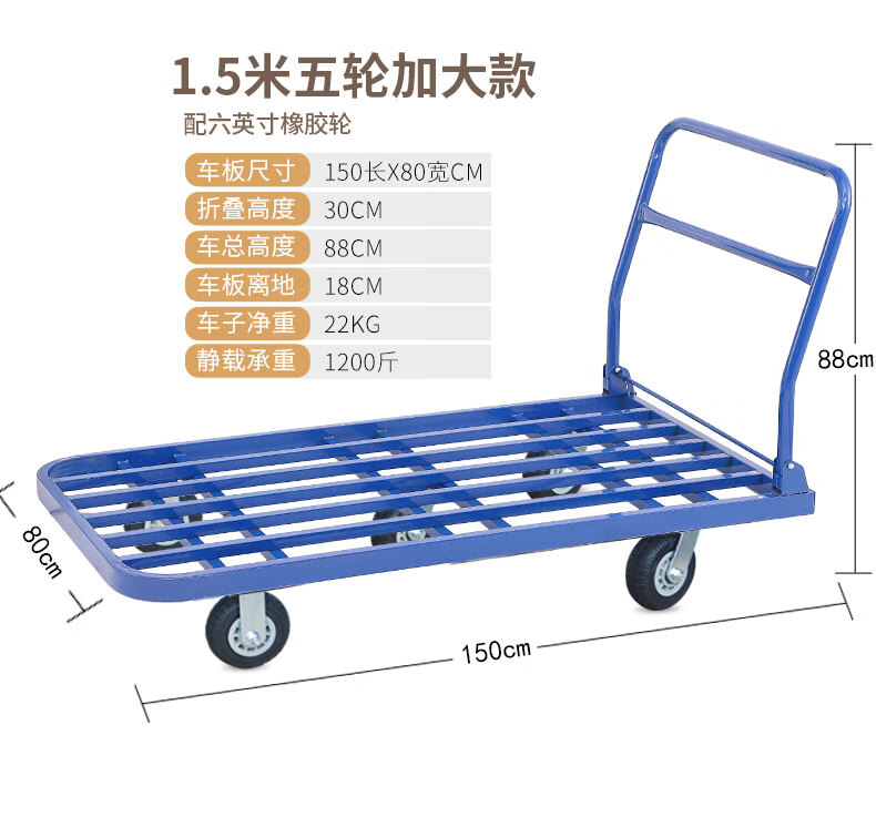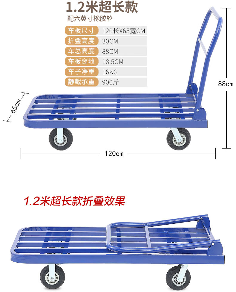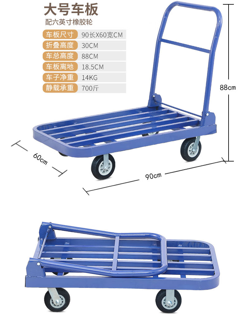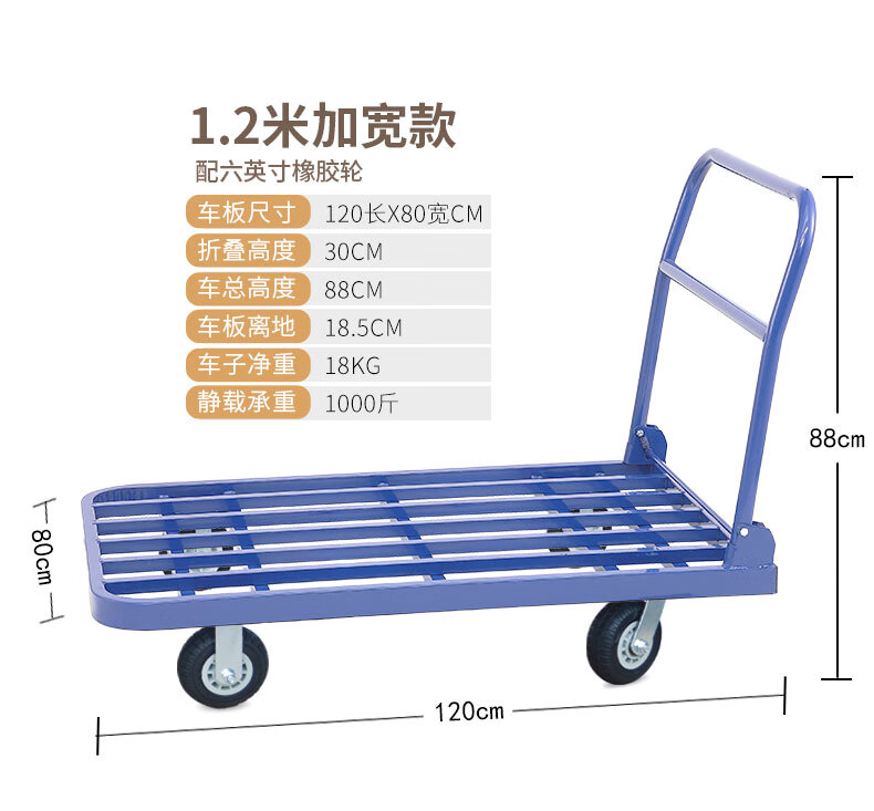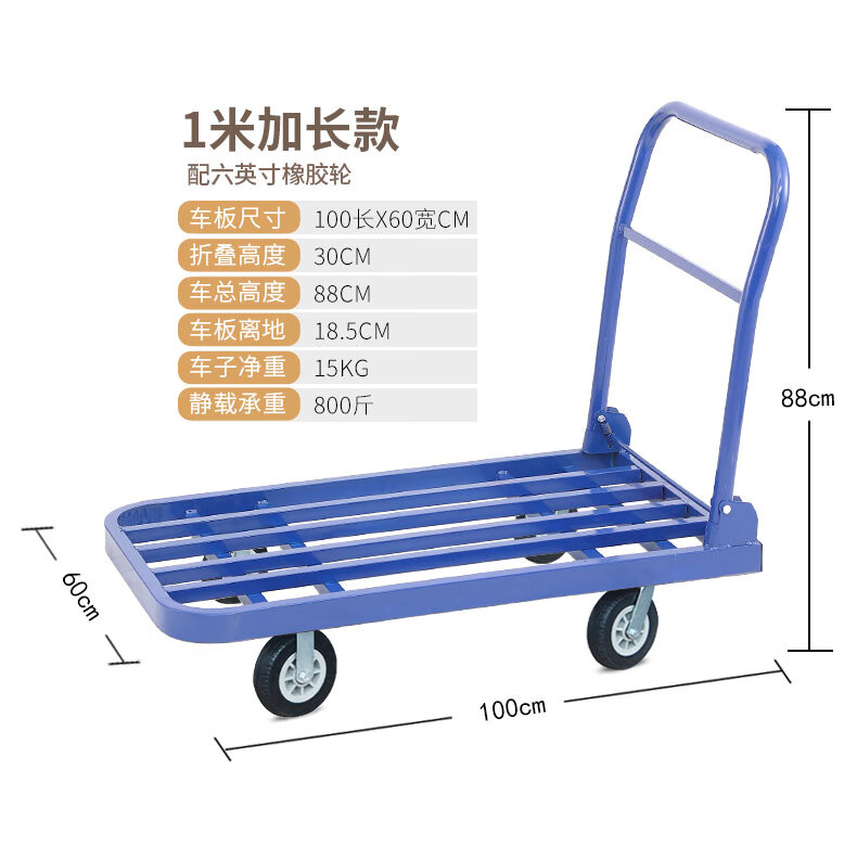 KOWSI trolley transporter, folding trolley for cargo, silent flatbed truck, construction site four-wheel household hand pull upgrade, 100*60 with 6-inch wear-resistant nylon wheels 1000Jin Jin equals 0.5kg, wear-resistant 9