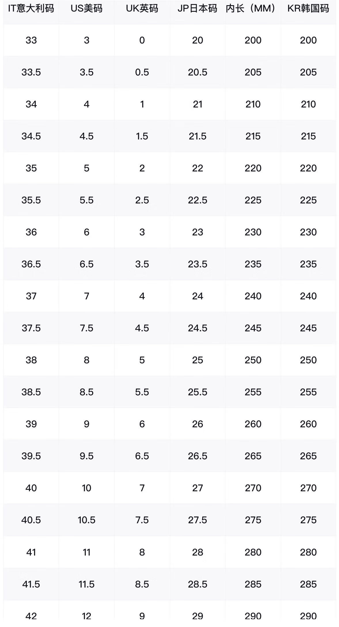 China (cm) 36 - 37 38 - 39 40 - 42 43 - 44 45 - 47