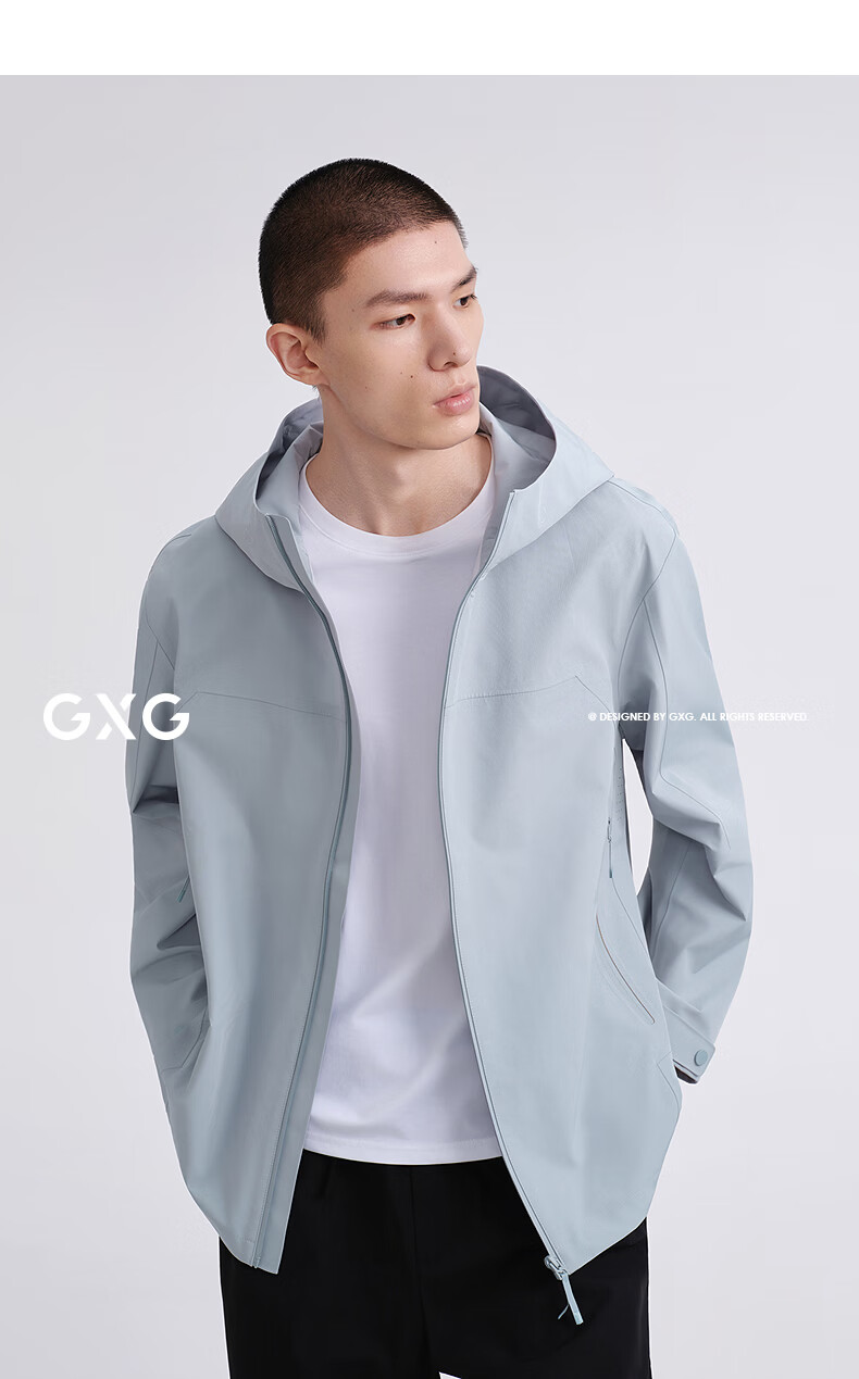 GXG Men's Wear The same three-proof functional hooded jacket in the mall 2026 spring new product G26X211033 light blue S