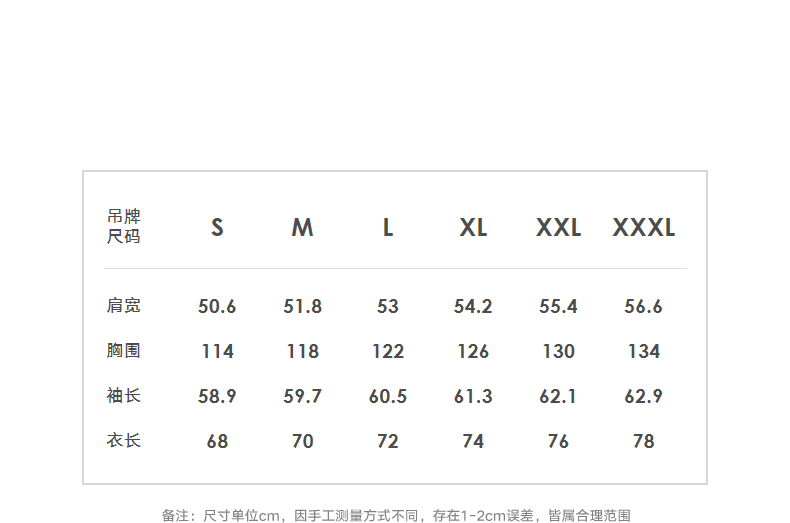 Size (cm) 42 44 46 48 50