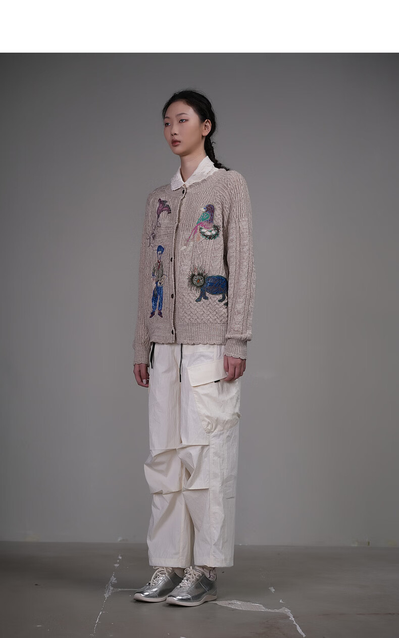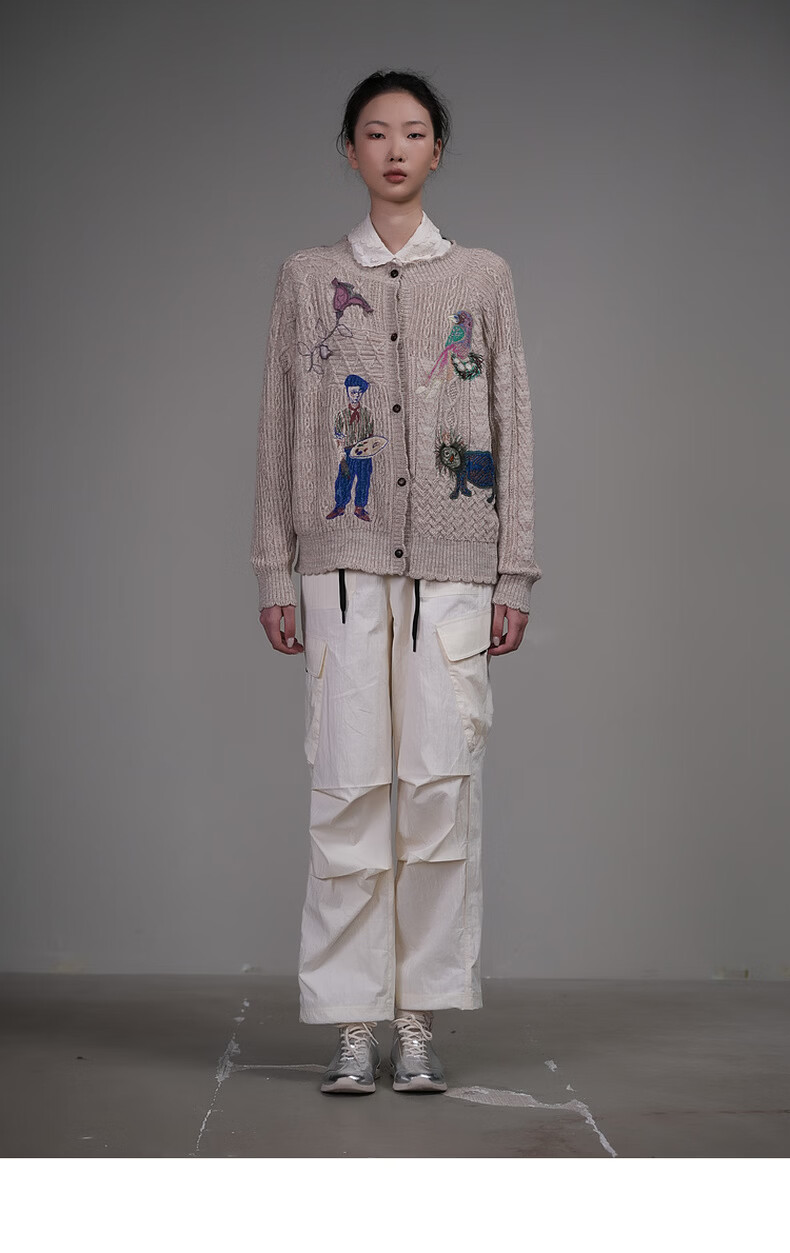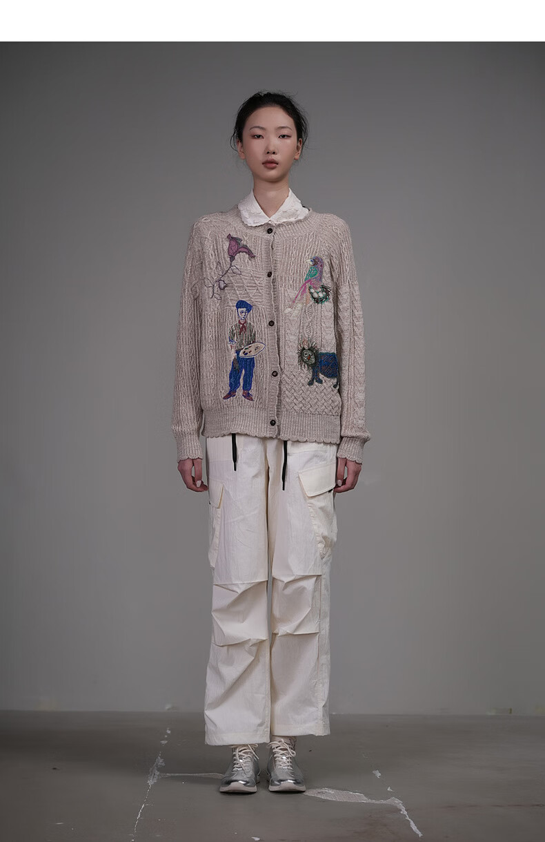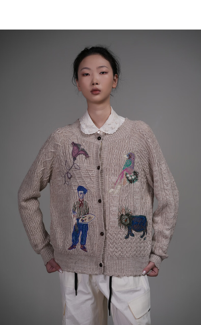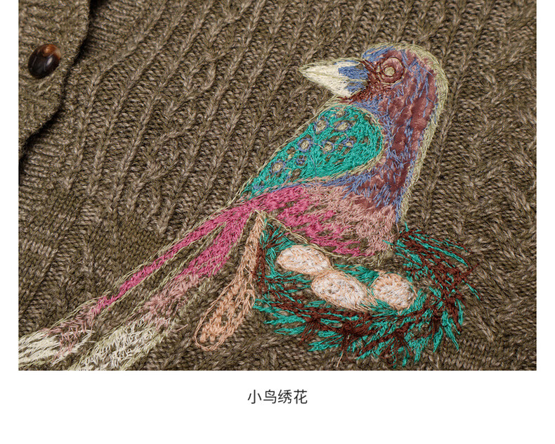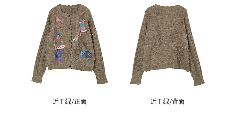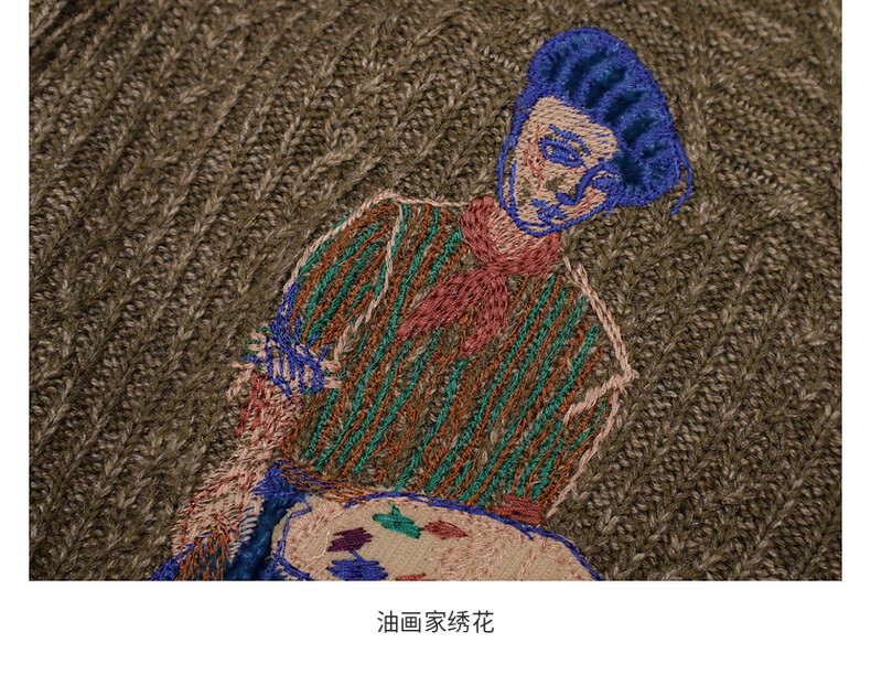 Dayiyan literary retro 2026 spring new casual style woolen boy painter jacquard embroidered sweater for women Konoe Green S
