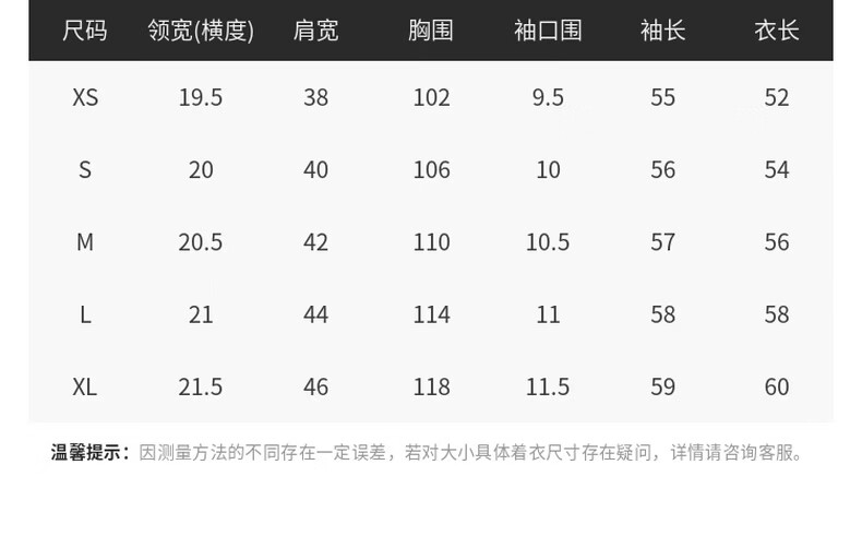 Size (cm) 42 44 46 48 50