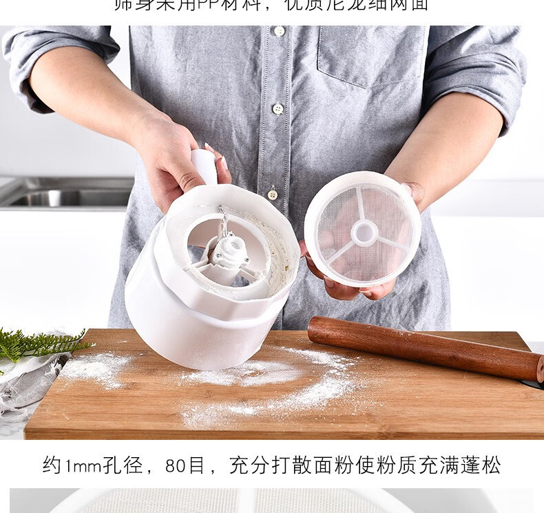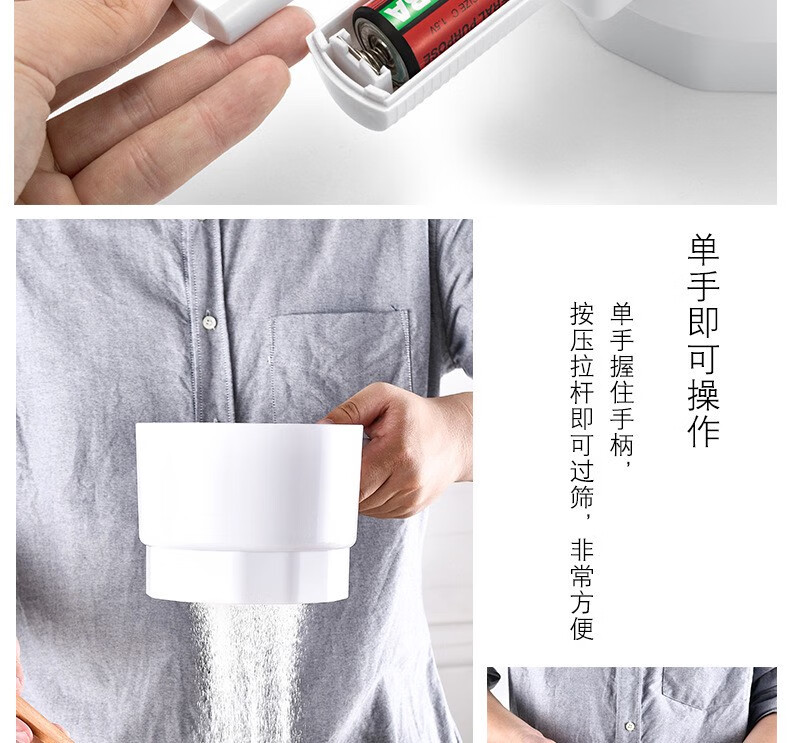 Euung electric handheld flour sieve, automatic baking, electric flour sieve, convenient and fast filtration, stainless steel inner core, color electric 60 mesh, uses AA battery, not included