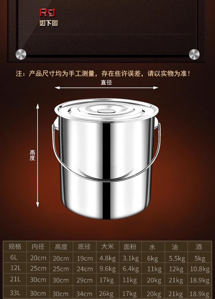 Food grade bucket 304 stainless steel bucket portable kindergarten portable bucket food grade oil bucket soup bucket with lid canteen water storage bucket customization thickened diameter 25 height 40 food grade stainless steel capacity 17 liters
