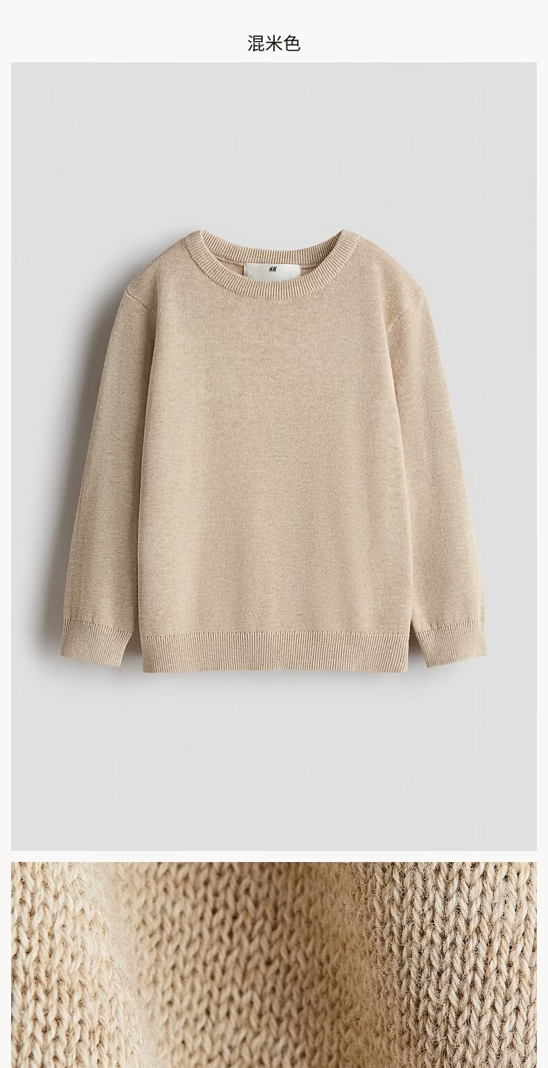 H&M2026 Spring New Children's Clothing Children's Boys Cotton Pullover 1161567 Mixed Beige 140 140/68 (8-10Y)