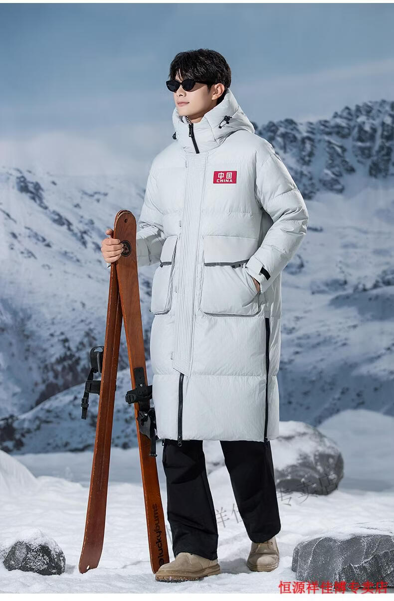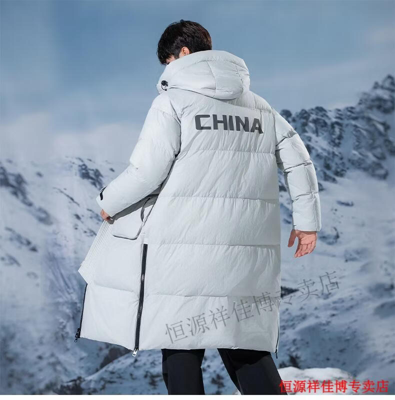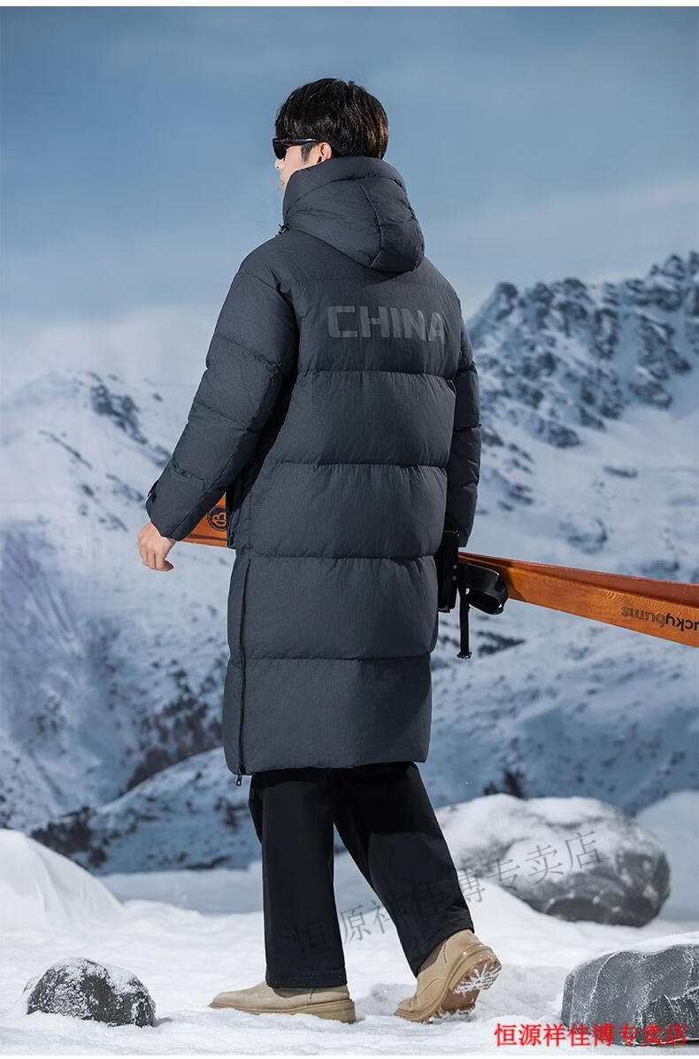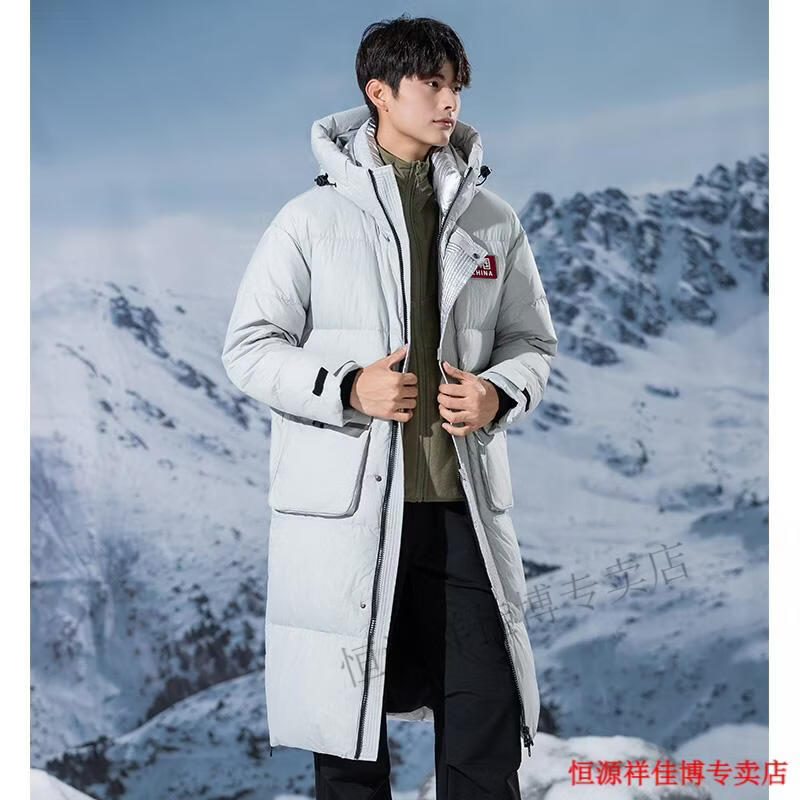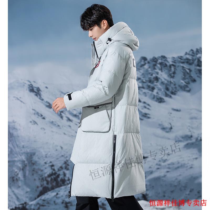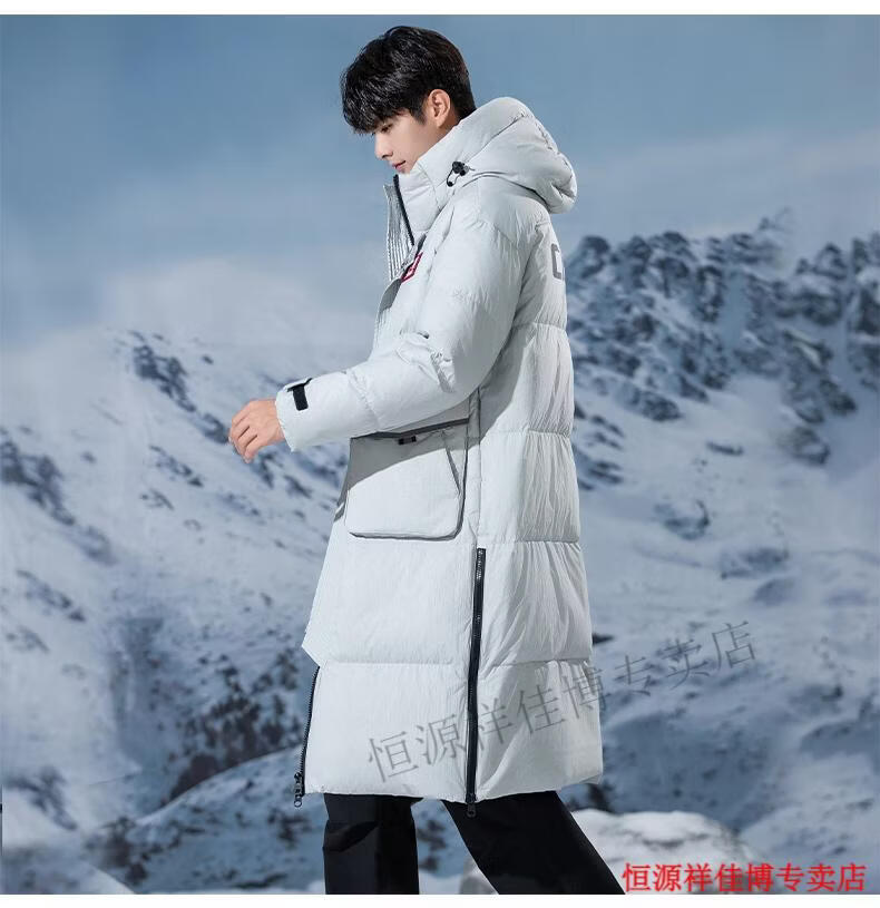 Hengyuanxiang high-end long knee-length down jacket for men 2025 winter new duck down jacket Northeast warm hooded jacket thick white M