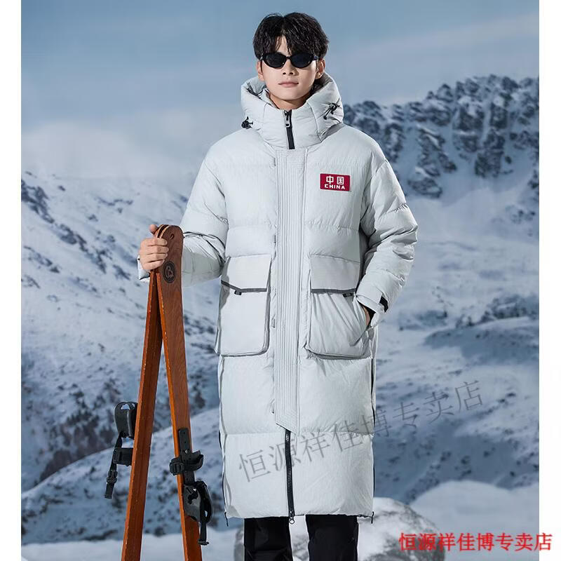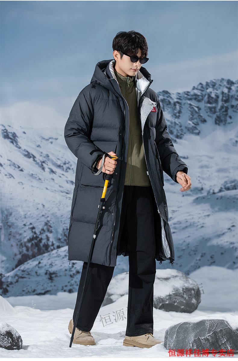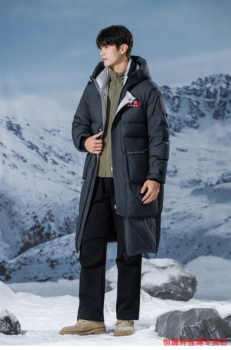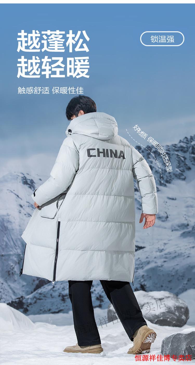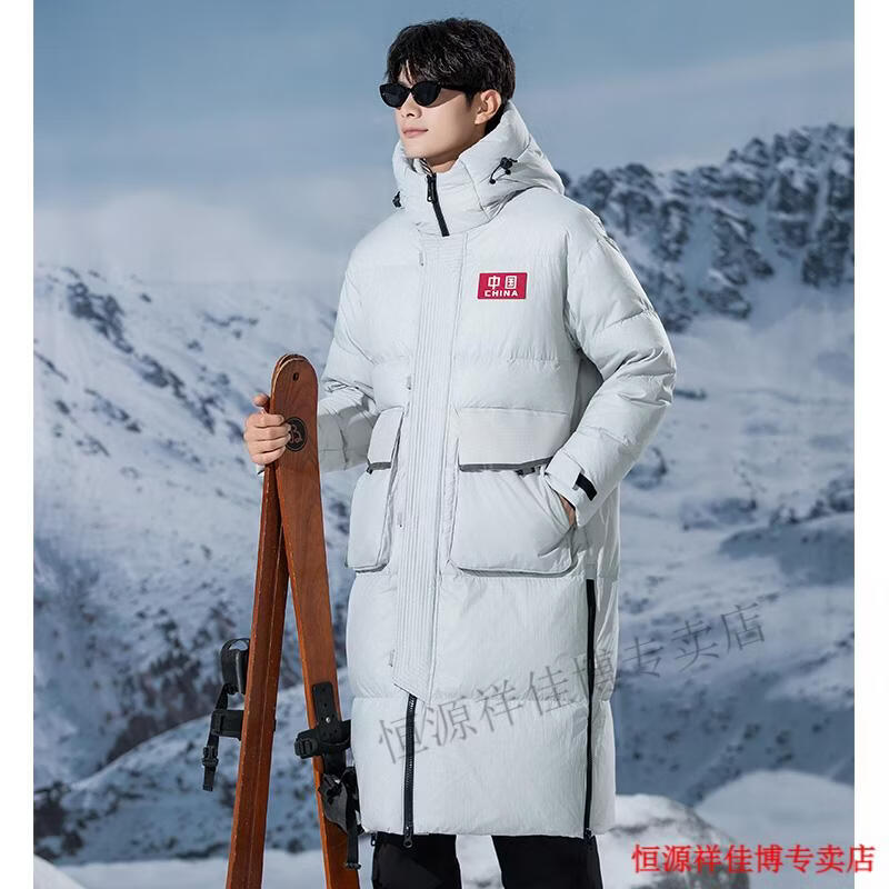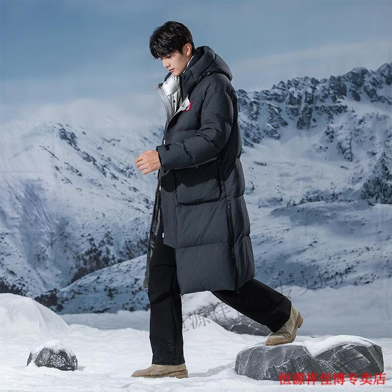 Hengyuanxiang high-end long knee-length down jacket for men 2025 winter new duck down jacket Northeast warm hooded jacket thick white M