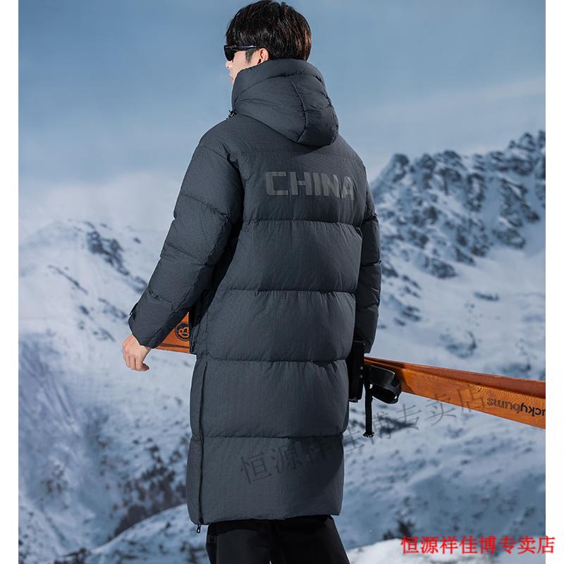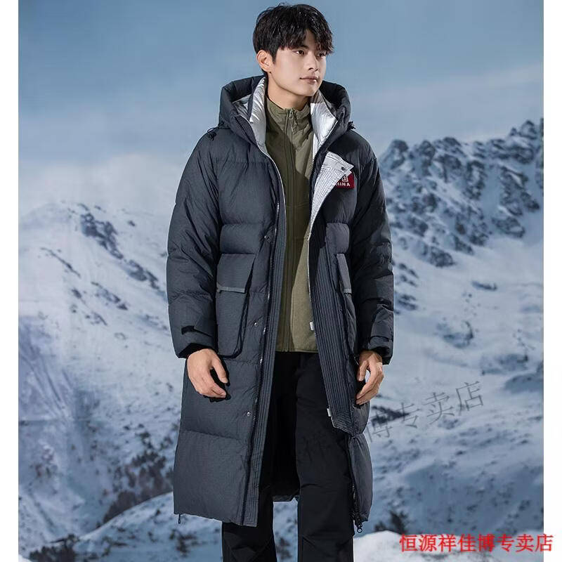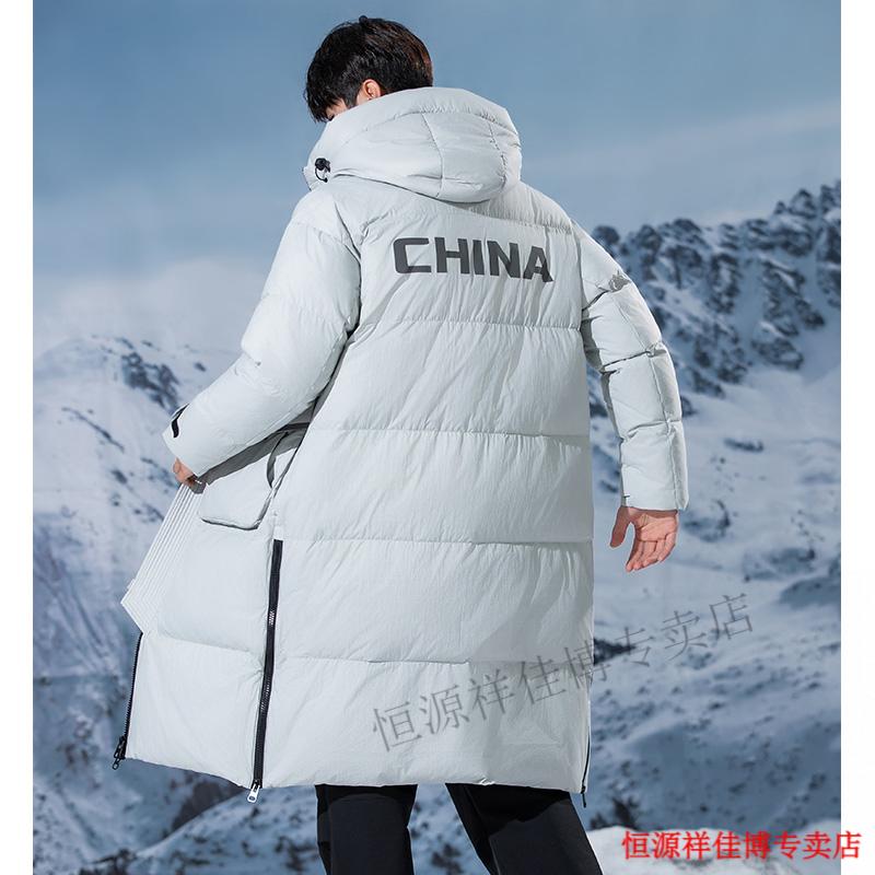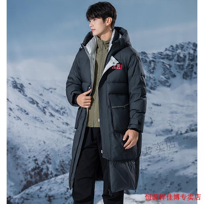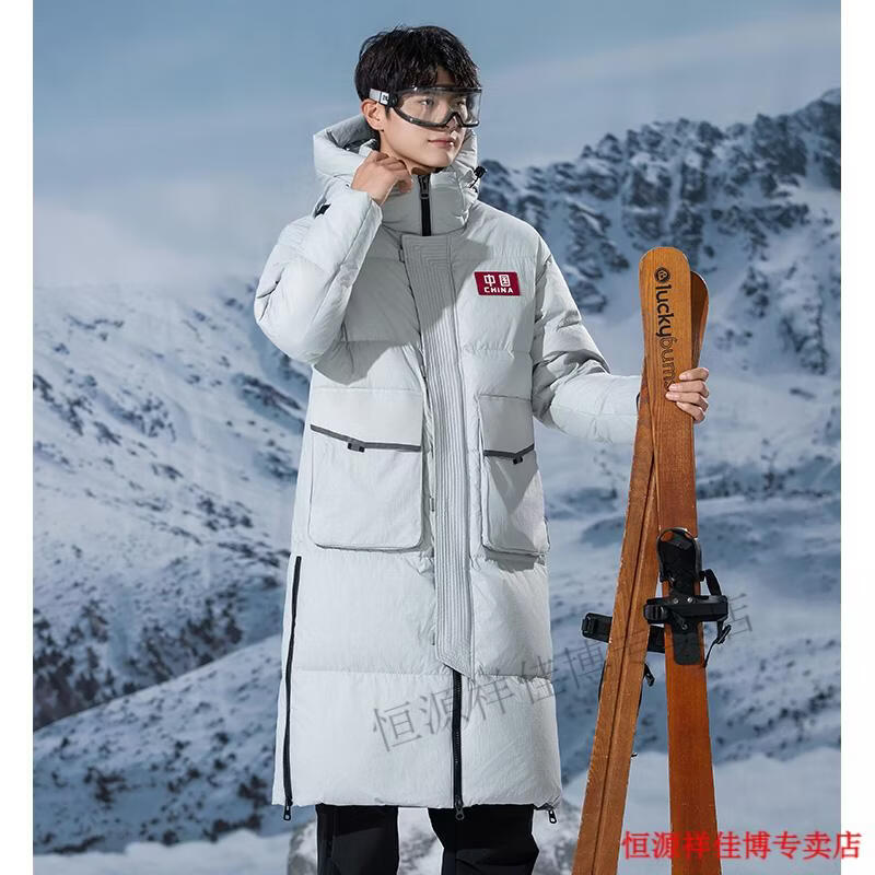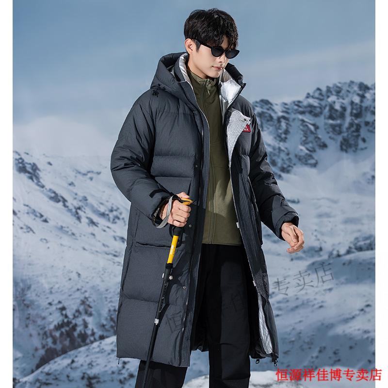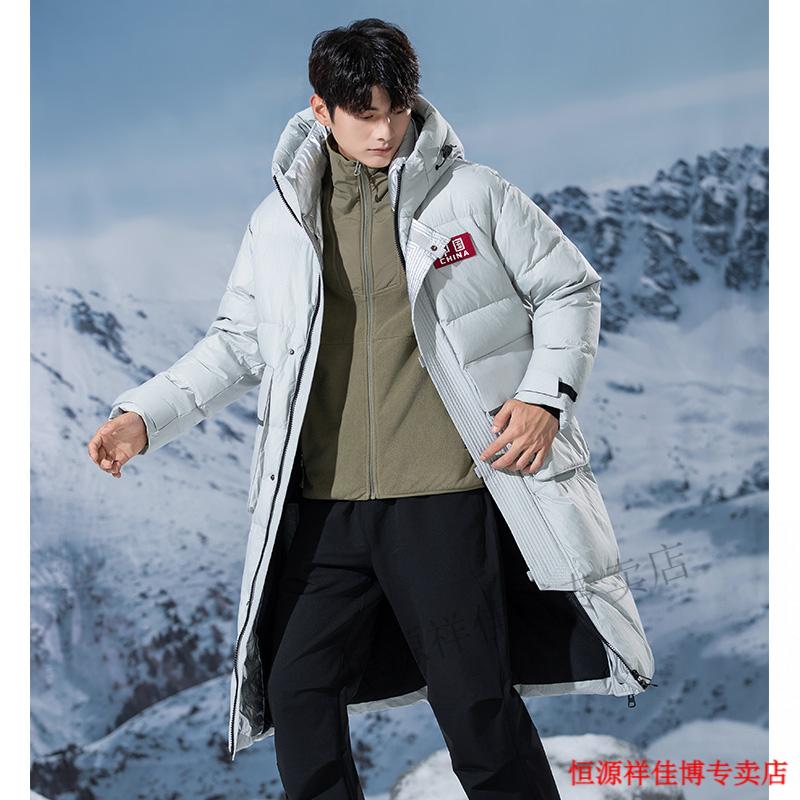 Hengyuanxiang high-end long knee-length down jacket for men 2025 winter new duck down jacket Northeast warm hooded jacket thick white M