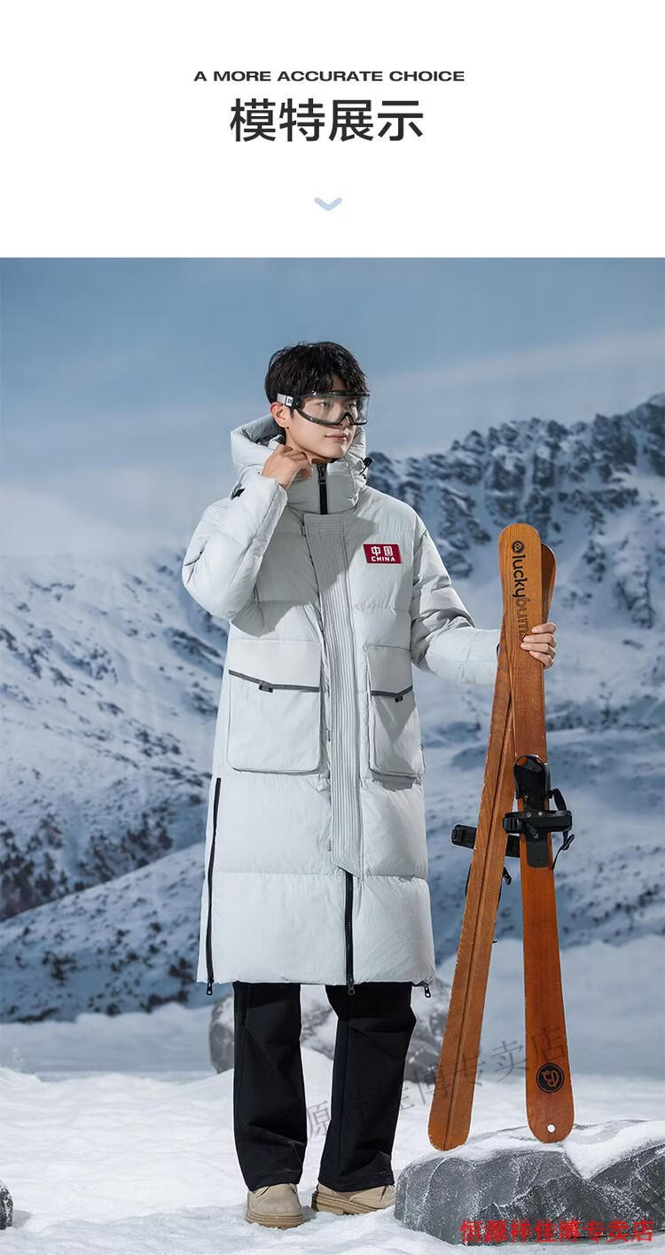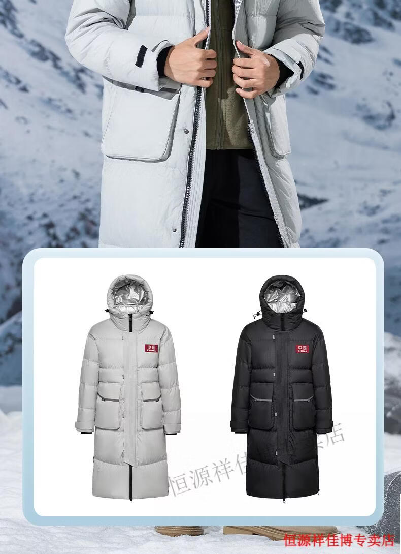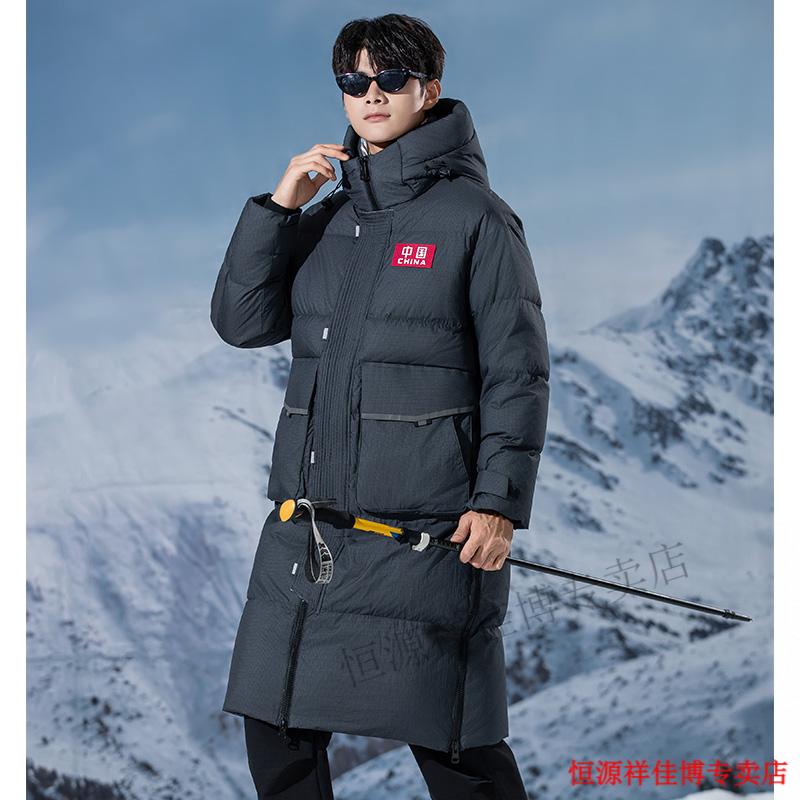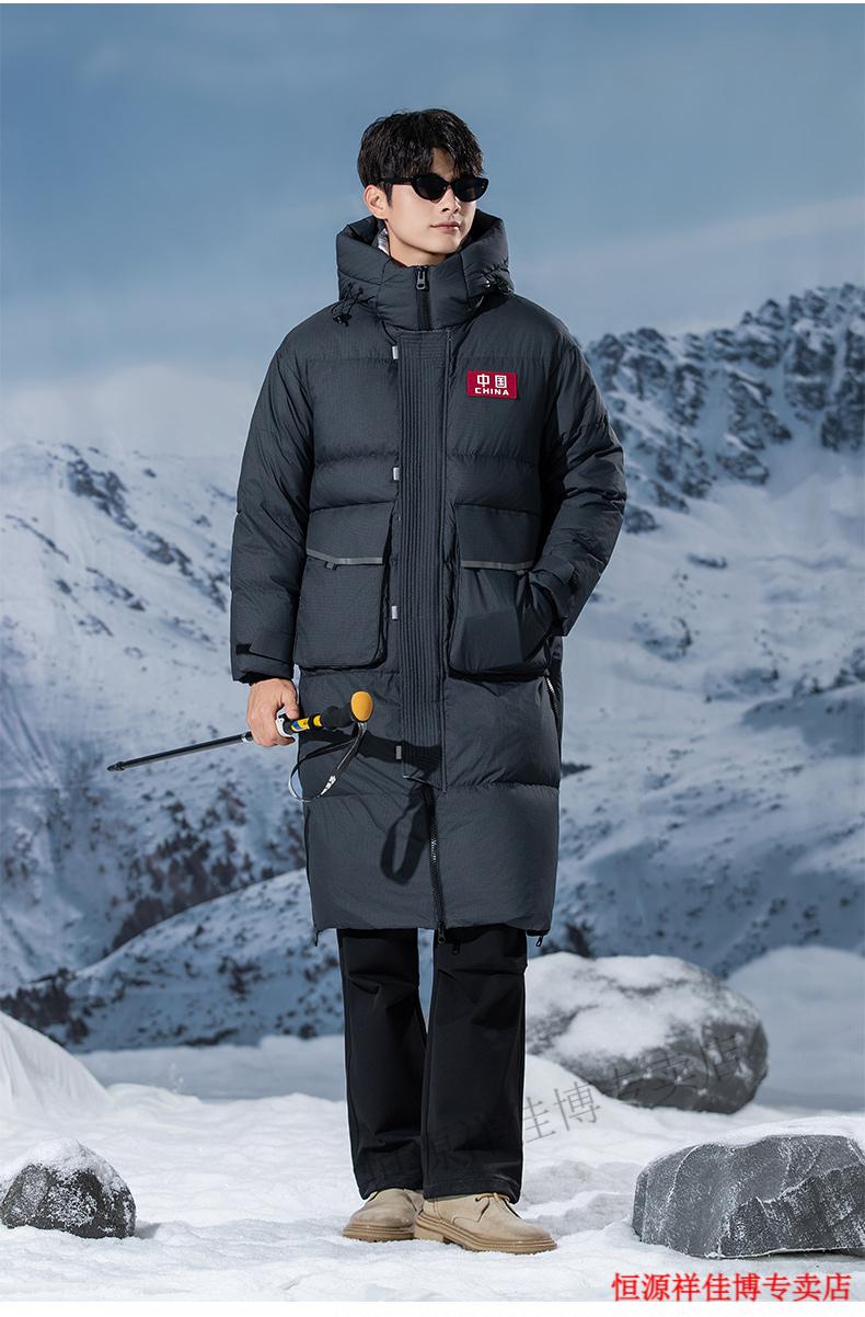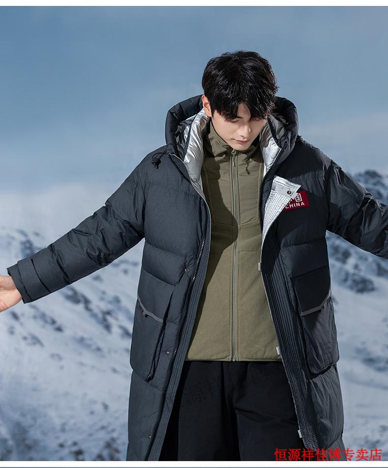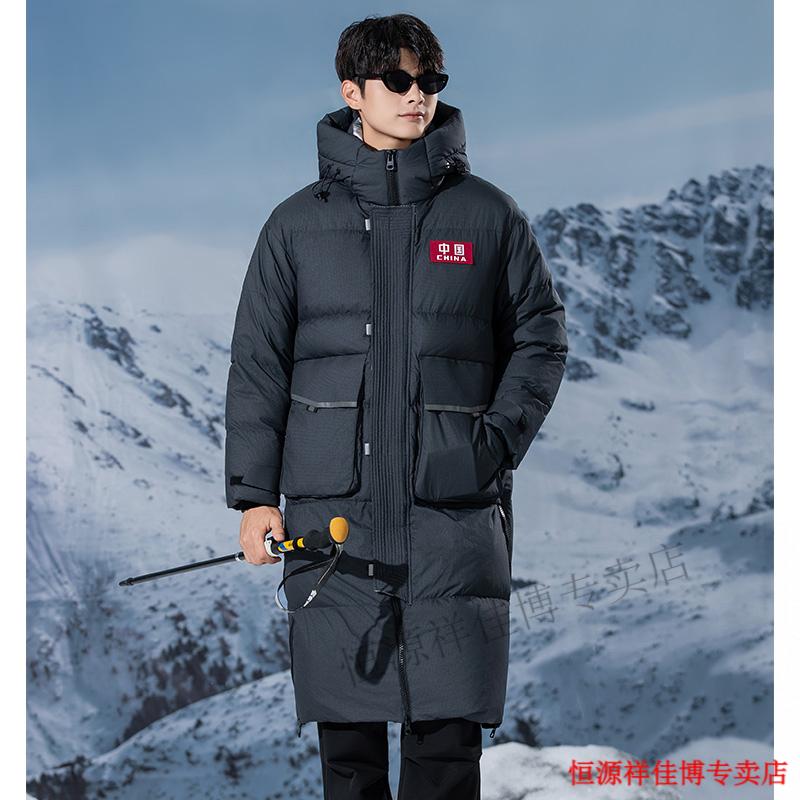 Hengyuanxiang high-end long knee-length down jacket for men 2025 winter new duck down jacket Northeast warm hooded jacket thick white M