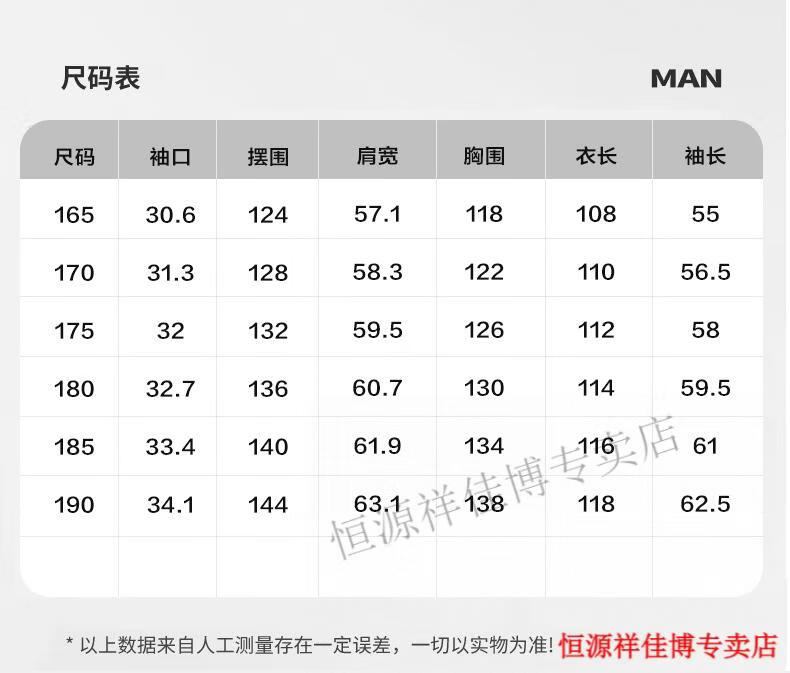 China (cm) 165 / 88-90 170 / 96-98 175 / 108-110 180 / 118-122 185 / 126-130