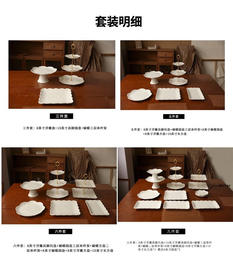 Jiayi Kitchen Decorative Dessert Table Display Rack Ornaments European Cold Dinner Tea Break Table Dessert Tray Afternoon Tea Dessert Rack Six-piece Set