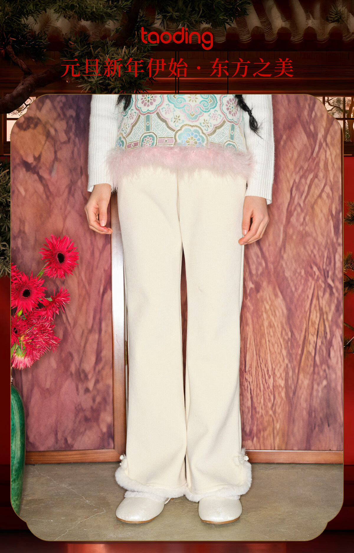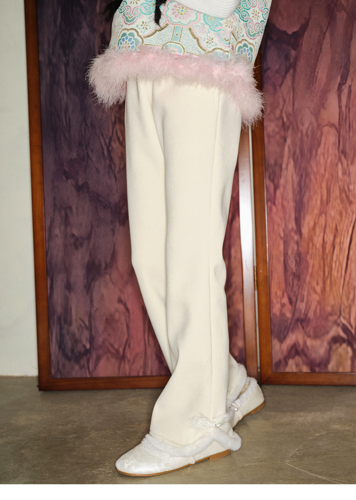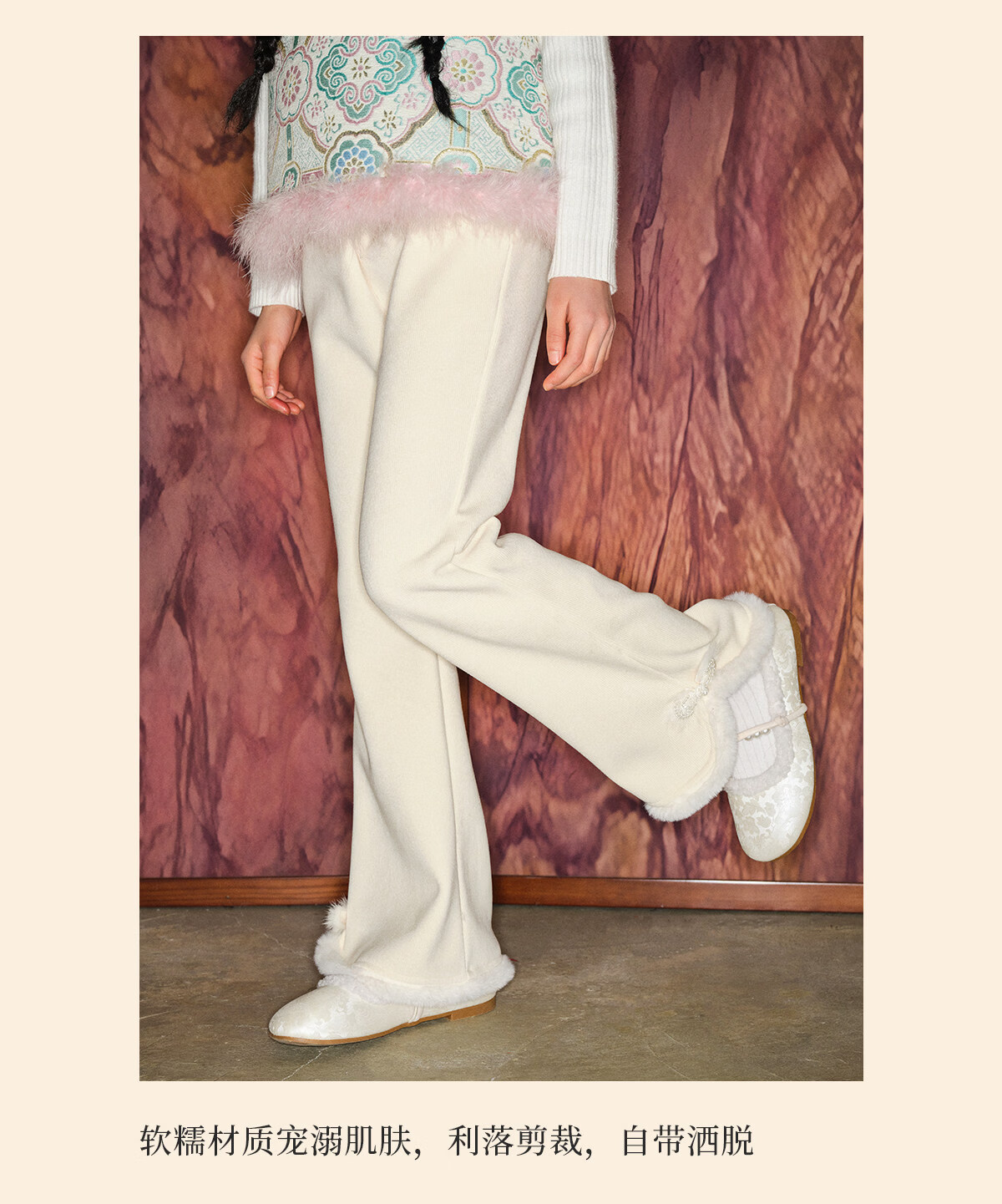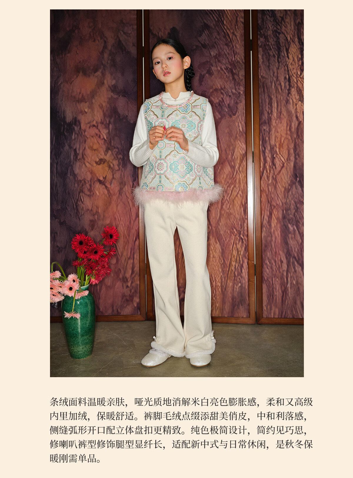 Taoding girls' boot-cut pants for autumn and winter new style children's plush trousers for big children and girls casual off-white plush wide-leg pants white 120 45-50Jin Jin equals 0.5 kg