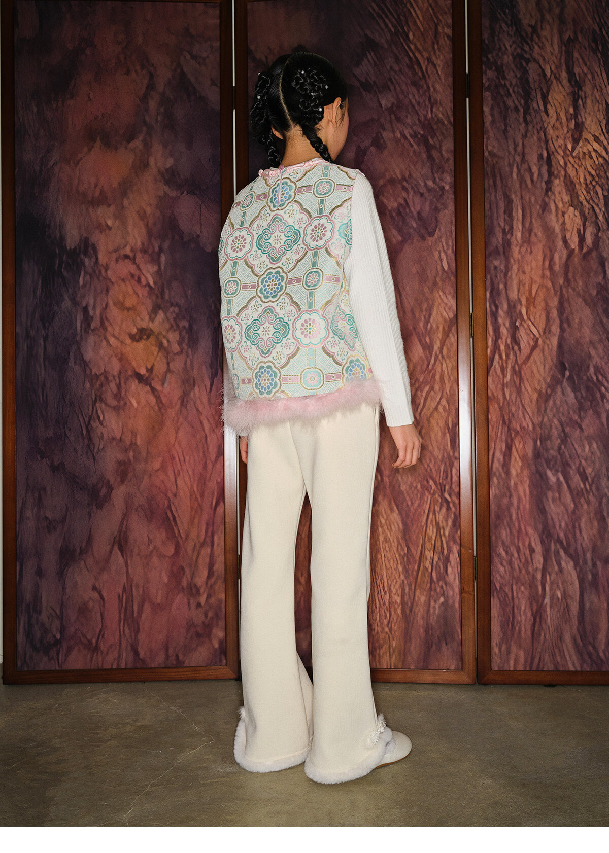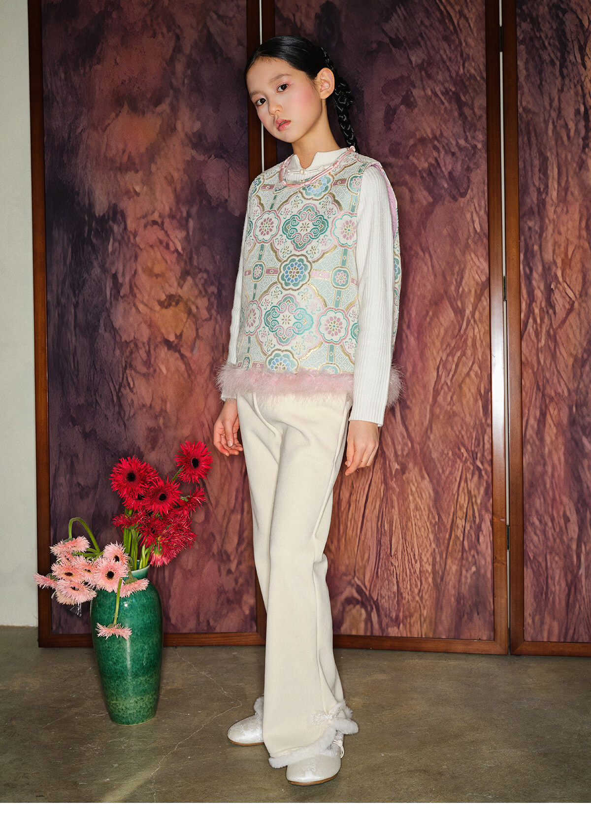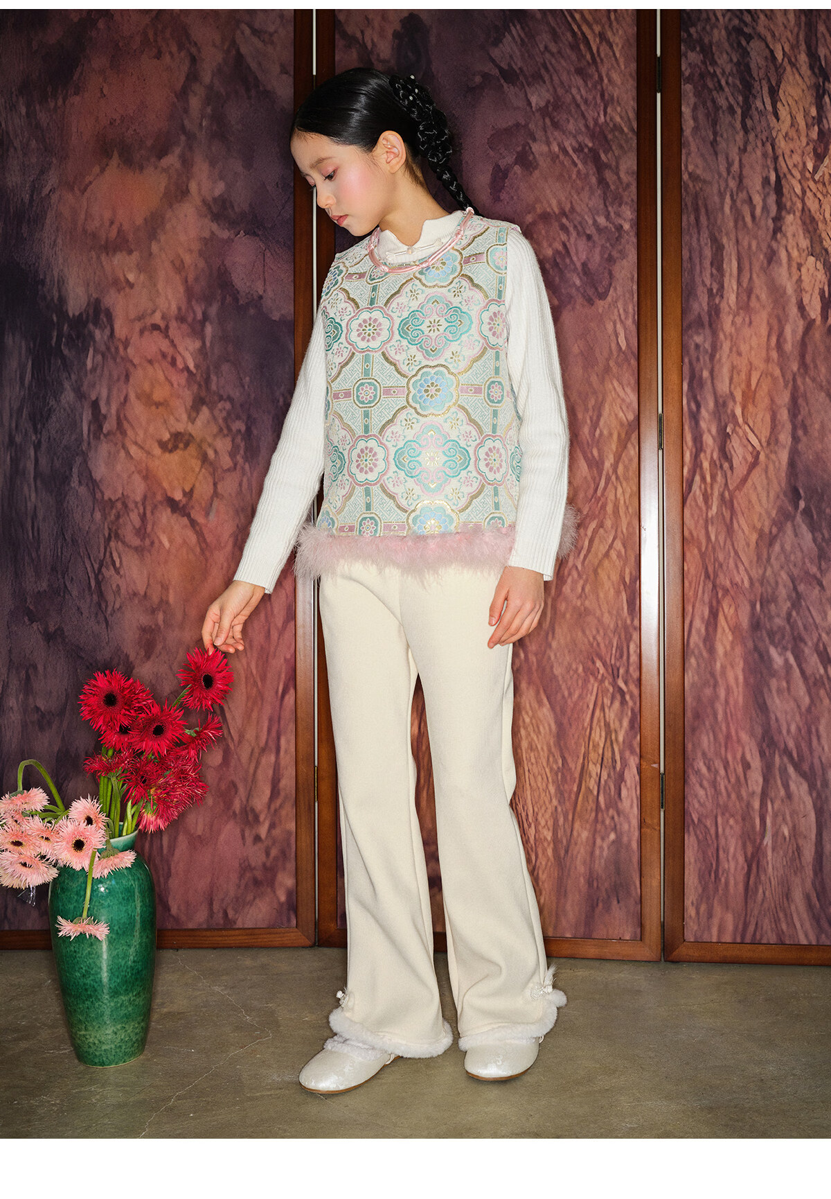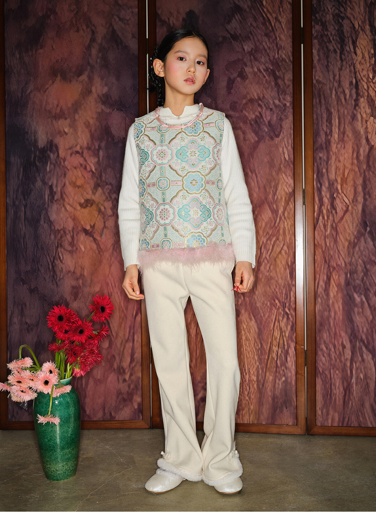 Taoding girls' boot-cut pants for autumn and winter new style children's plush trousers for big children and girls casual off-white plush wide-leg pants white 120 45-50Jin Jin equals 0.5 kg