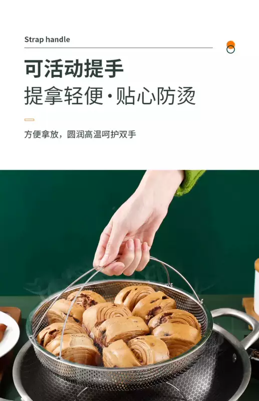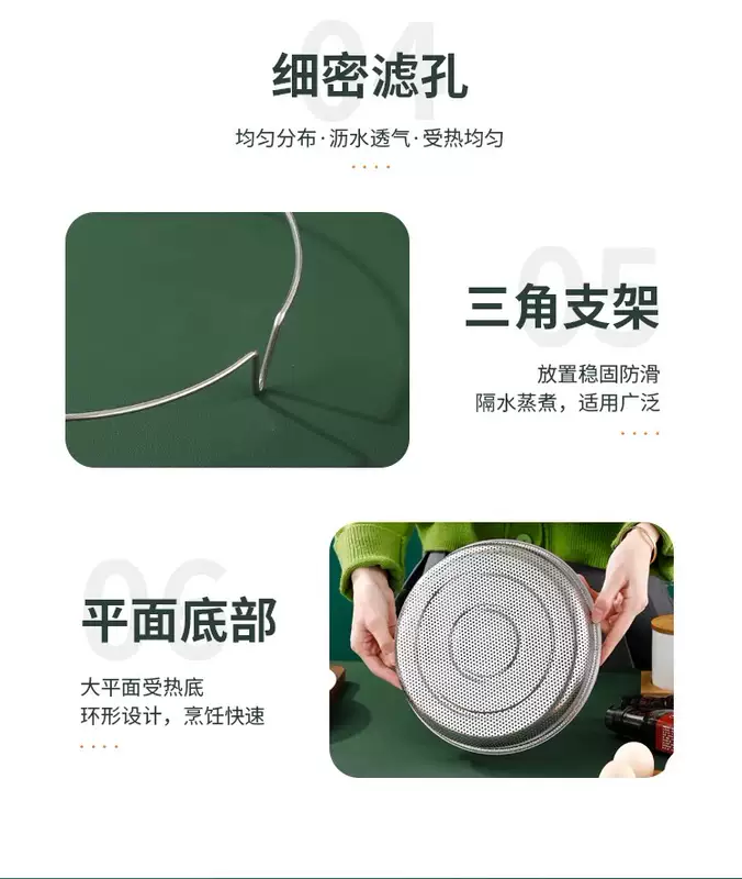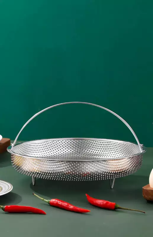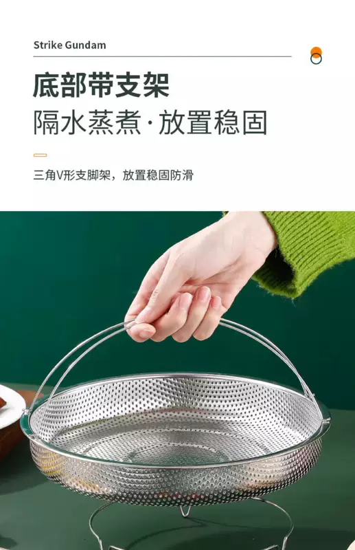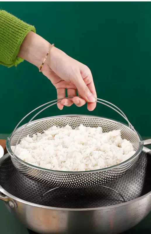 Yusenyi Rice Steaming Rack Cooking Steaming Stainless Steel Steamer Drain Basket Multi-functional Sieve Pot Handle Grid Kitchen Triangular Large (304 Steamer) 22cm Dense Hole Steaming Rack with Anti-scalding Handle 304cm