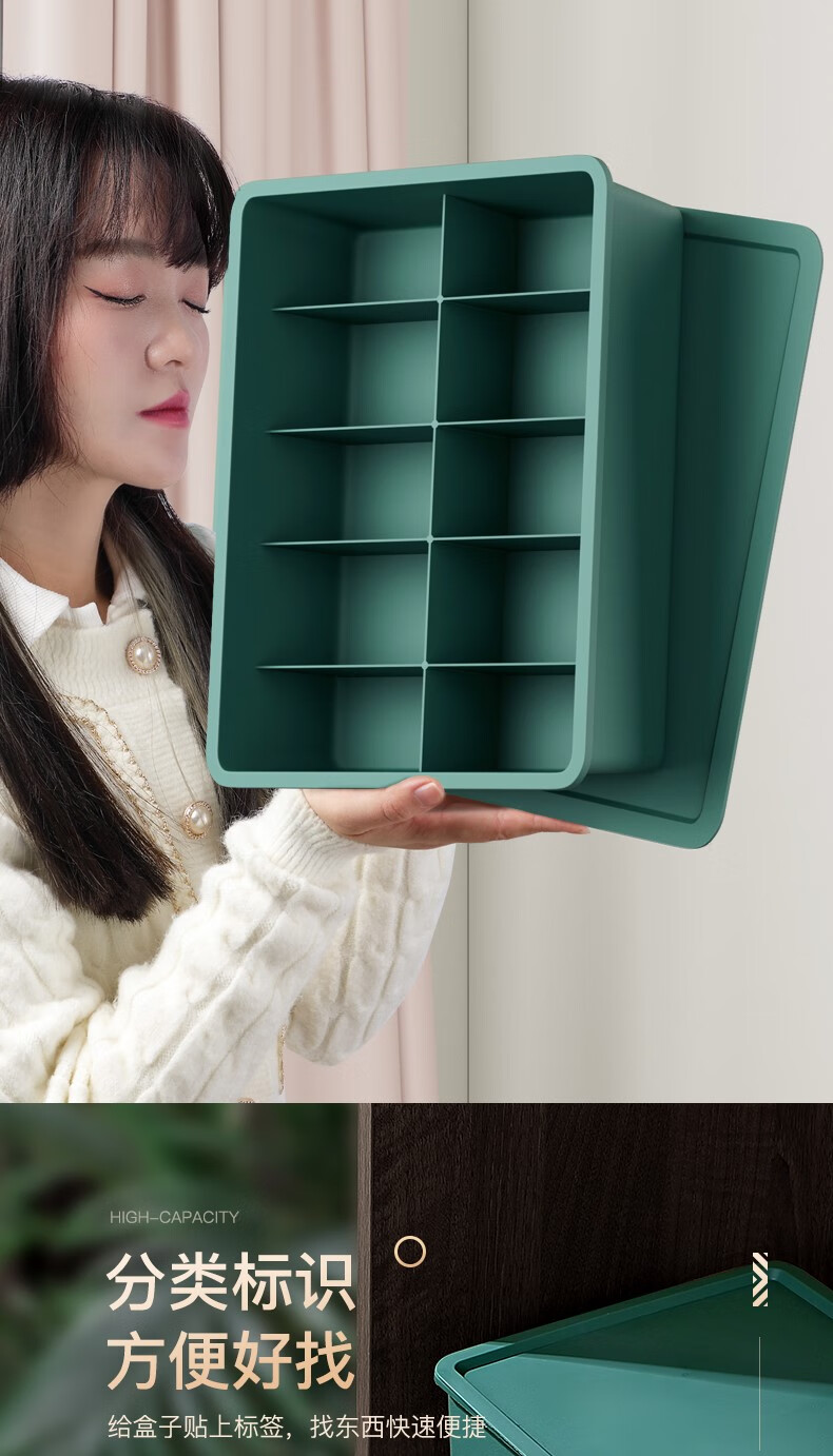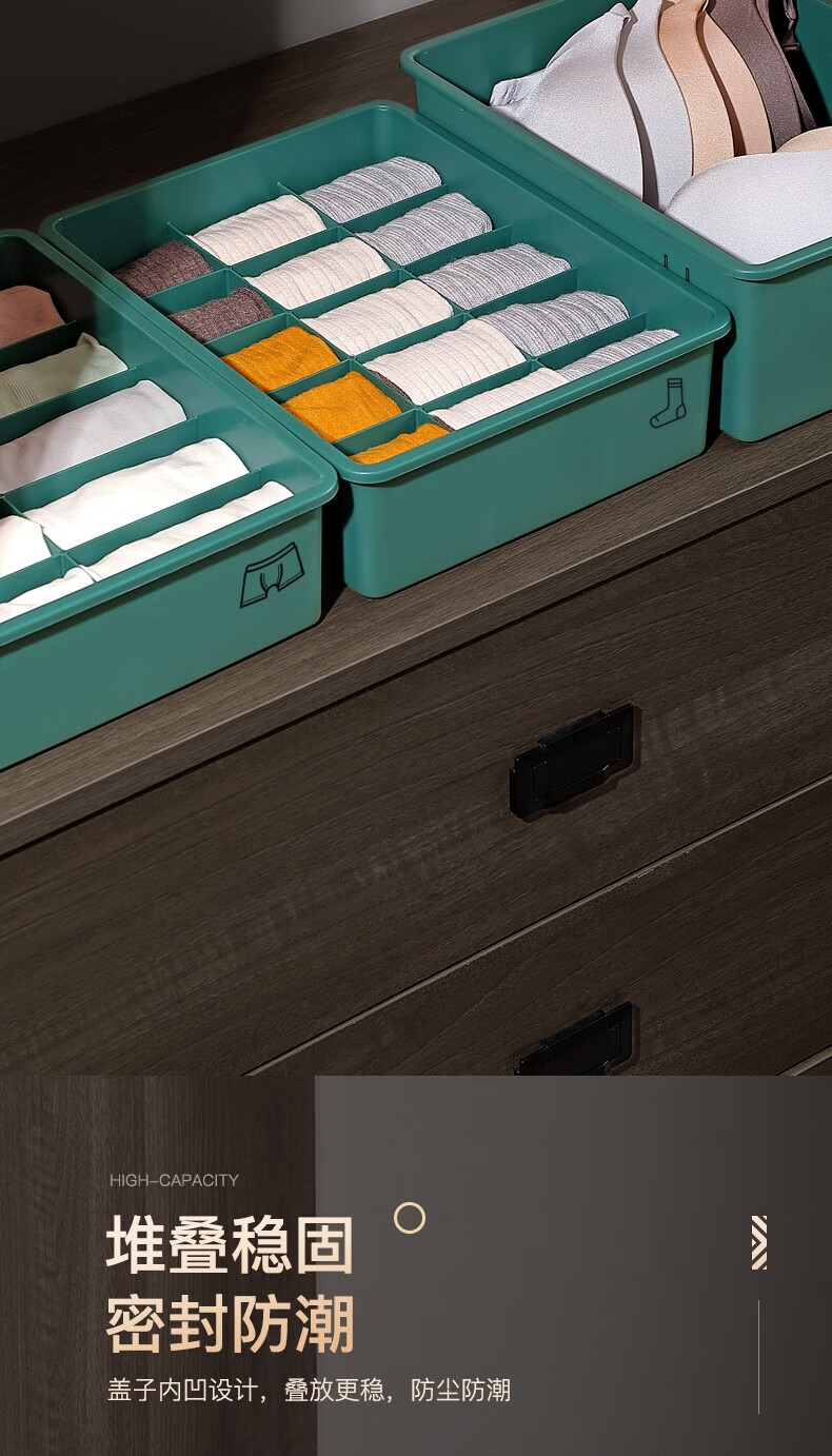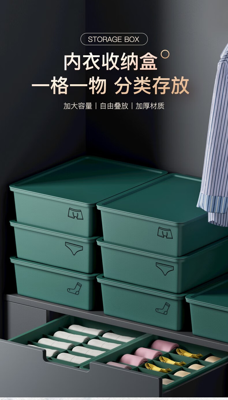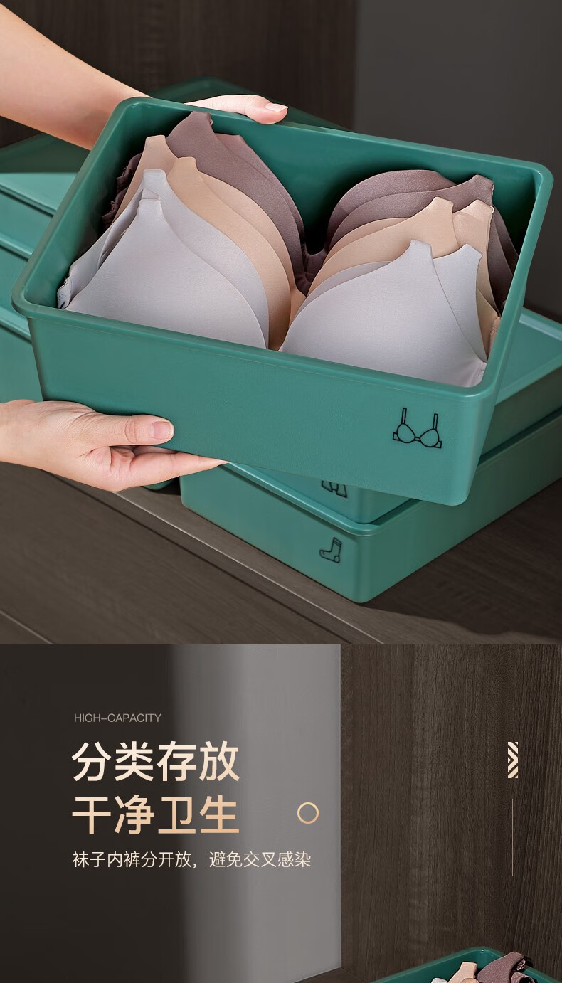 Fantasy underwear storage box drawer-type household underwear and socks storage artifact bra organizer wardrobe compartment three-in-one light luxury green no grid + cover + sticker