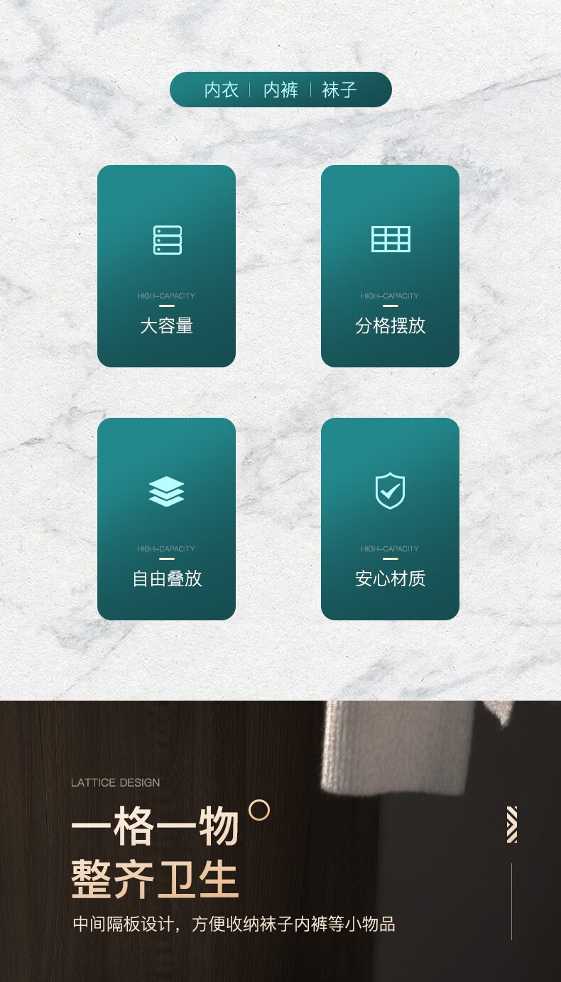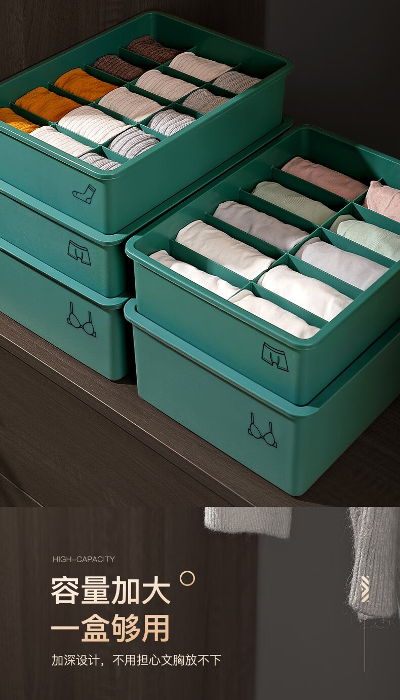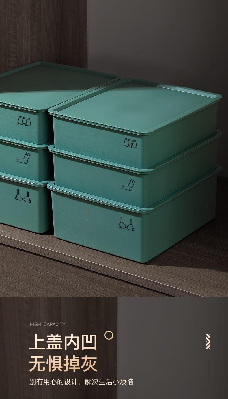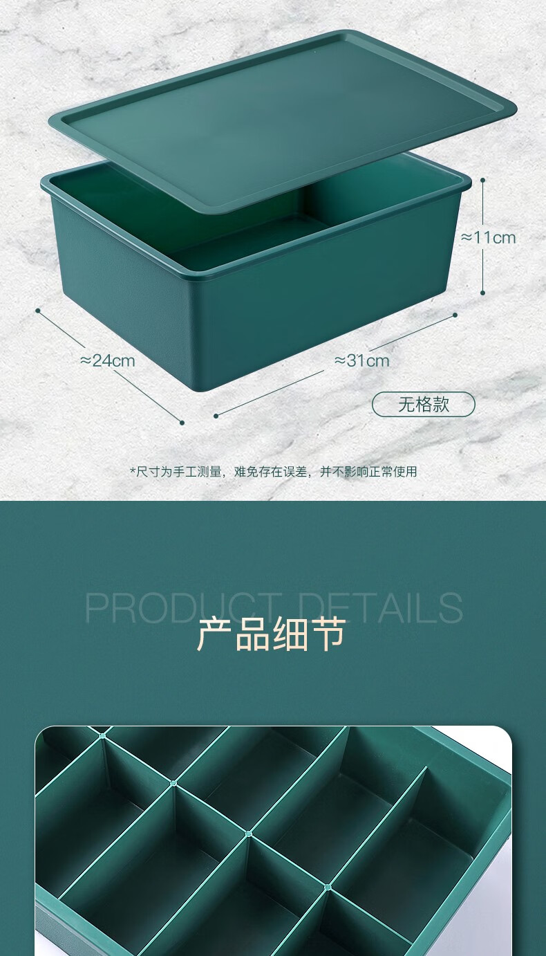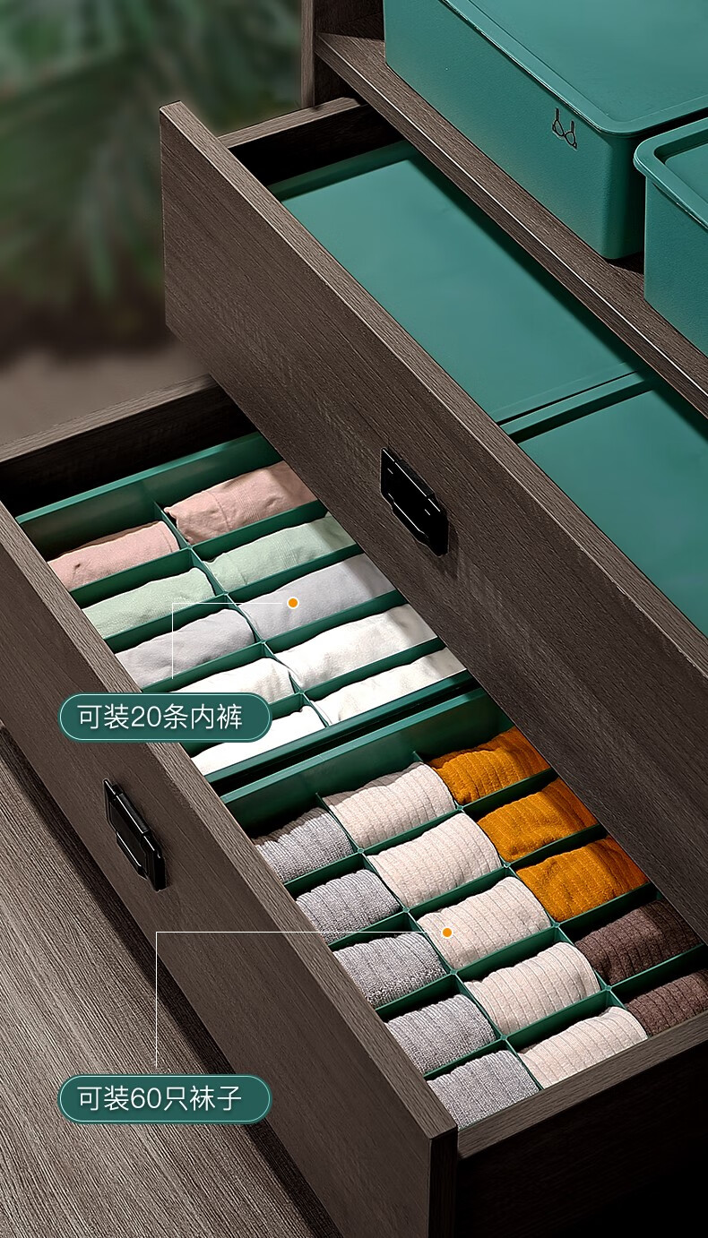 Fantasy underwear storage box drawer-type household underwear and socks storage artifact bra organizer wardrobe compartment three-in-one light luxury green no grid + cover + sticker