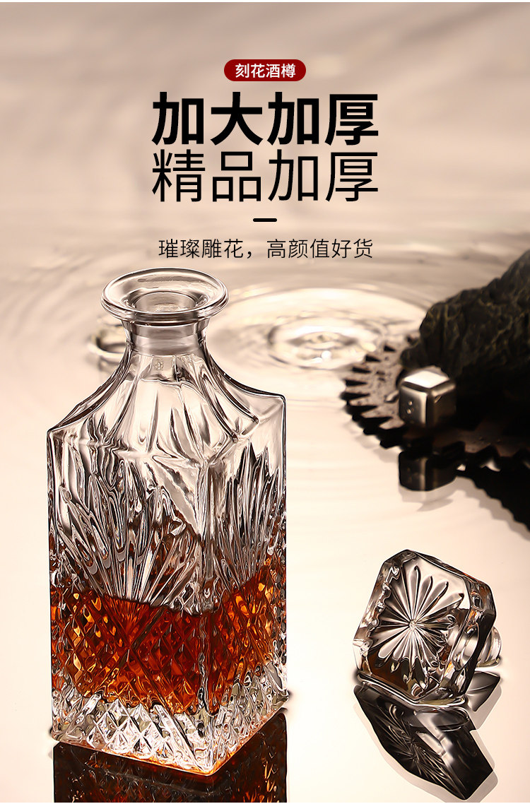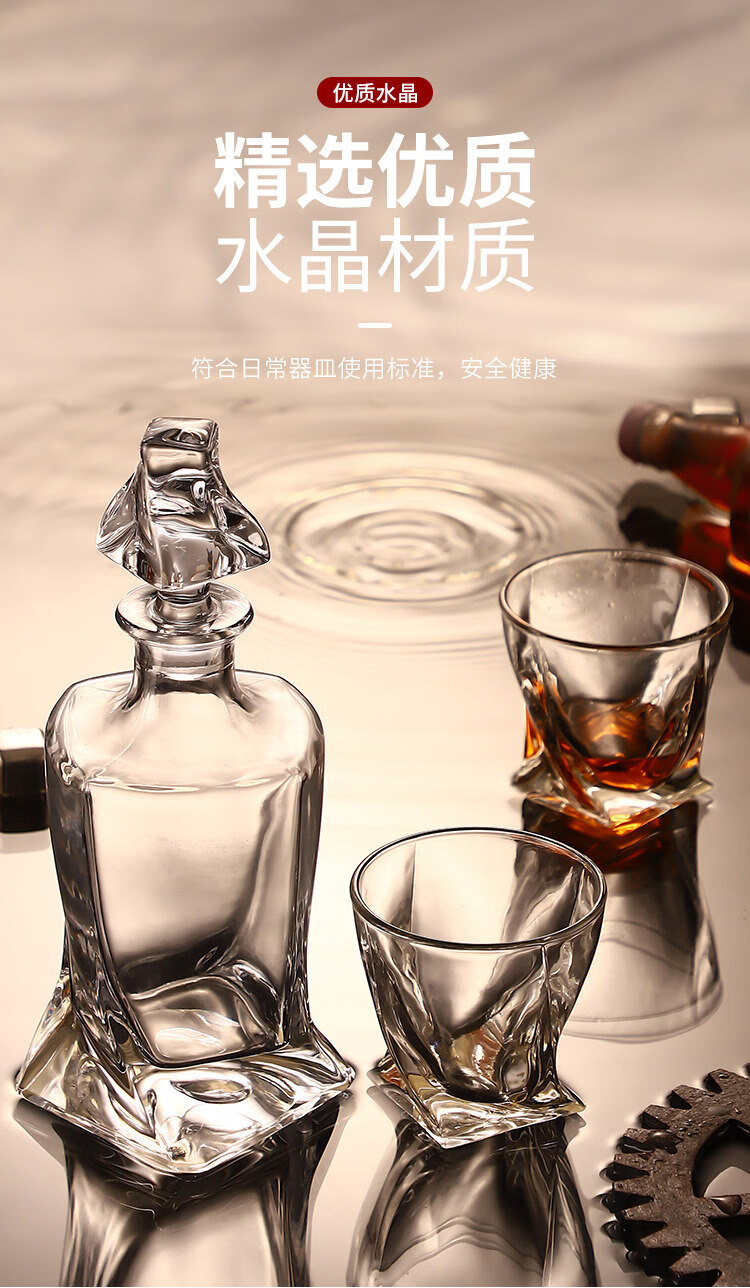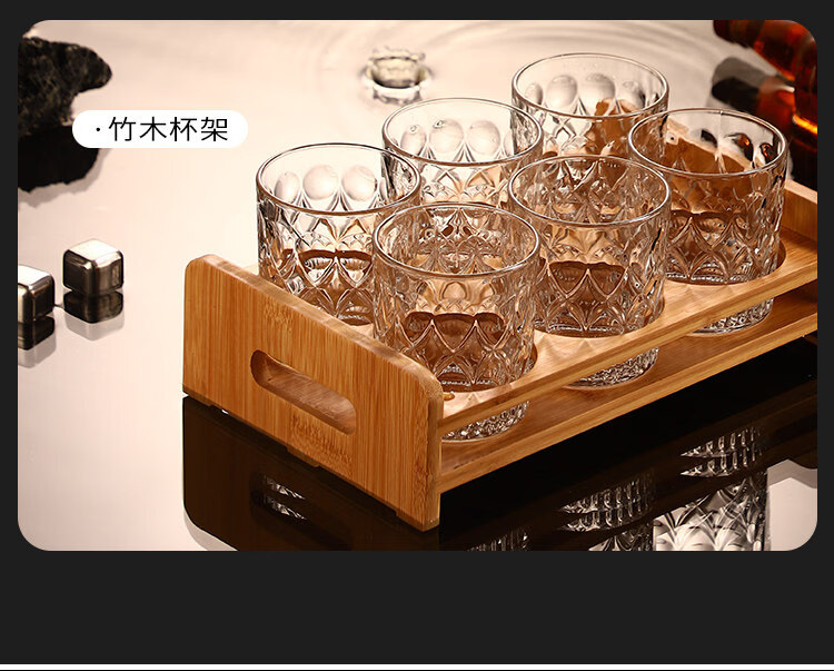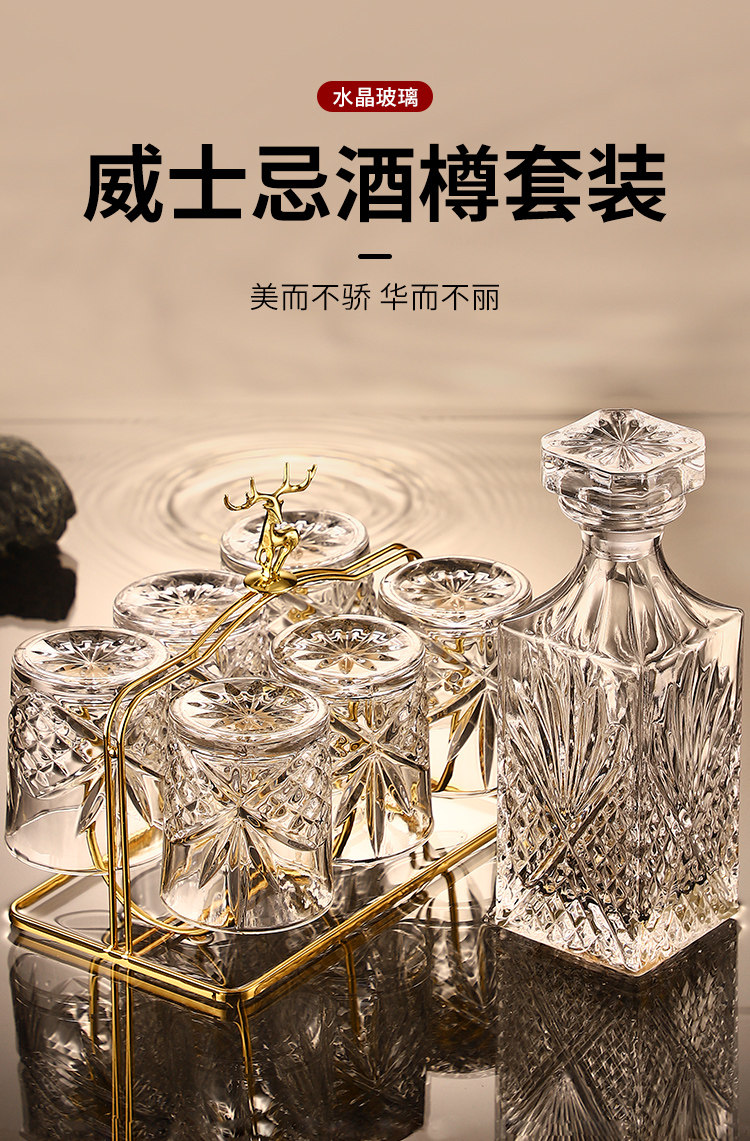 He Jiagong Lapunes foreign wine glass whiskey glass set Nordic style household crystal glass with cup holder wine bottle set transparent square brick cup_6