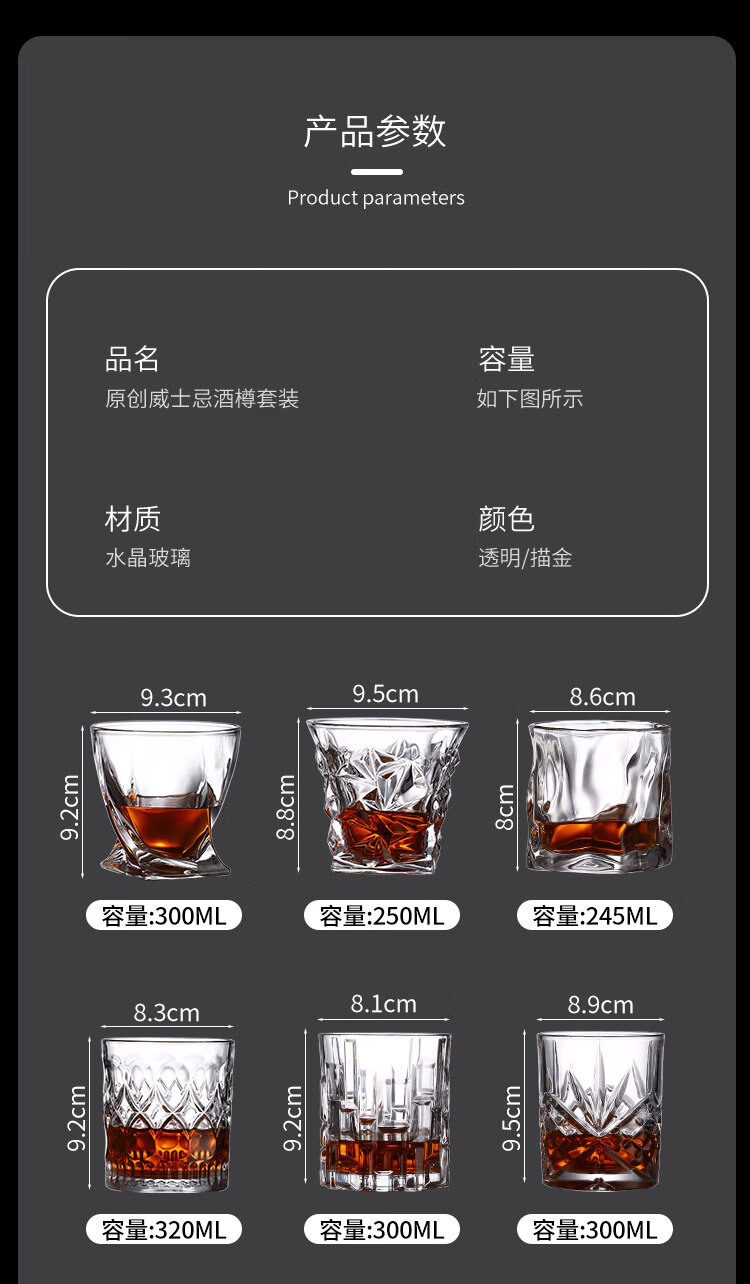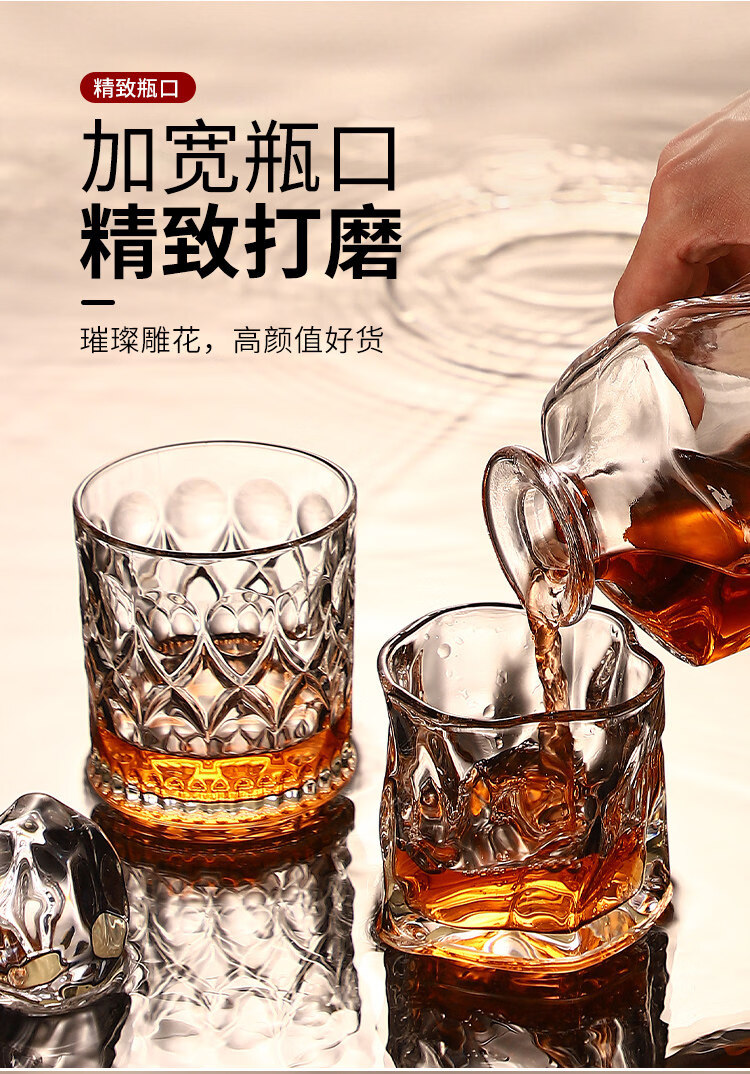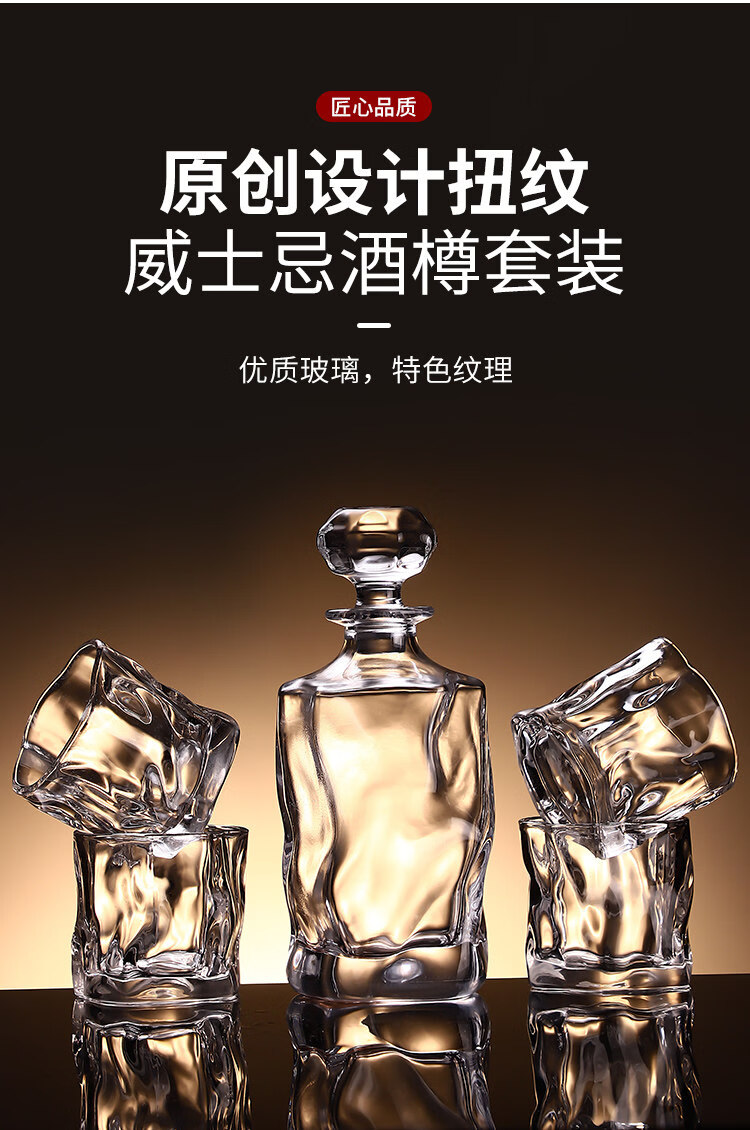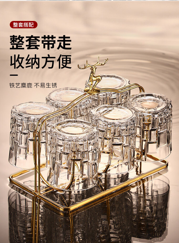 He Jiagong Lapunes foreign wine glass whiskey glass set Nordic style household crystal glass with cup holder wine bottle set transparent square brick cup_6