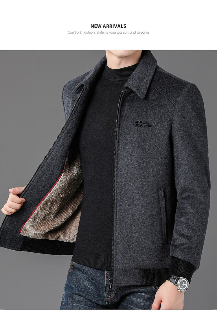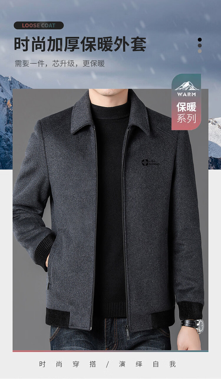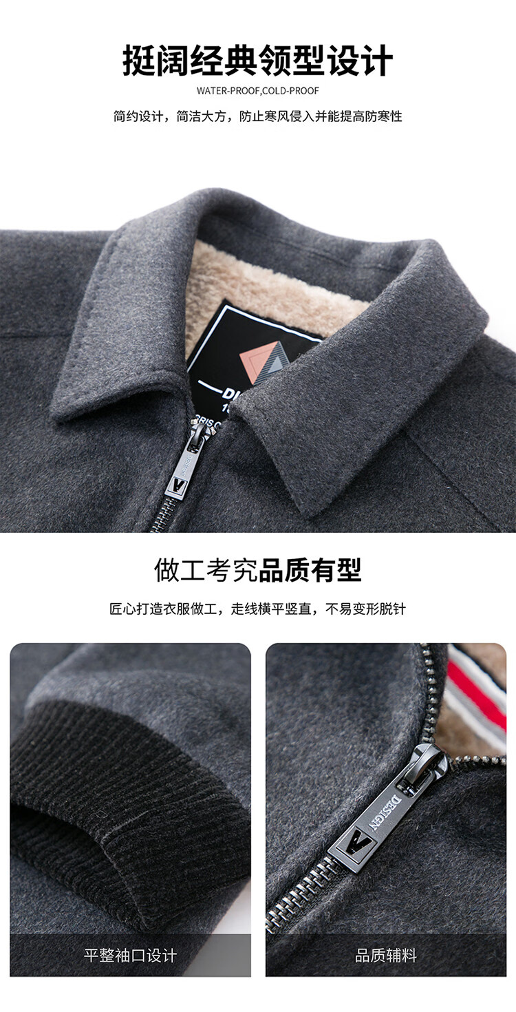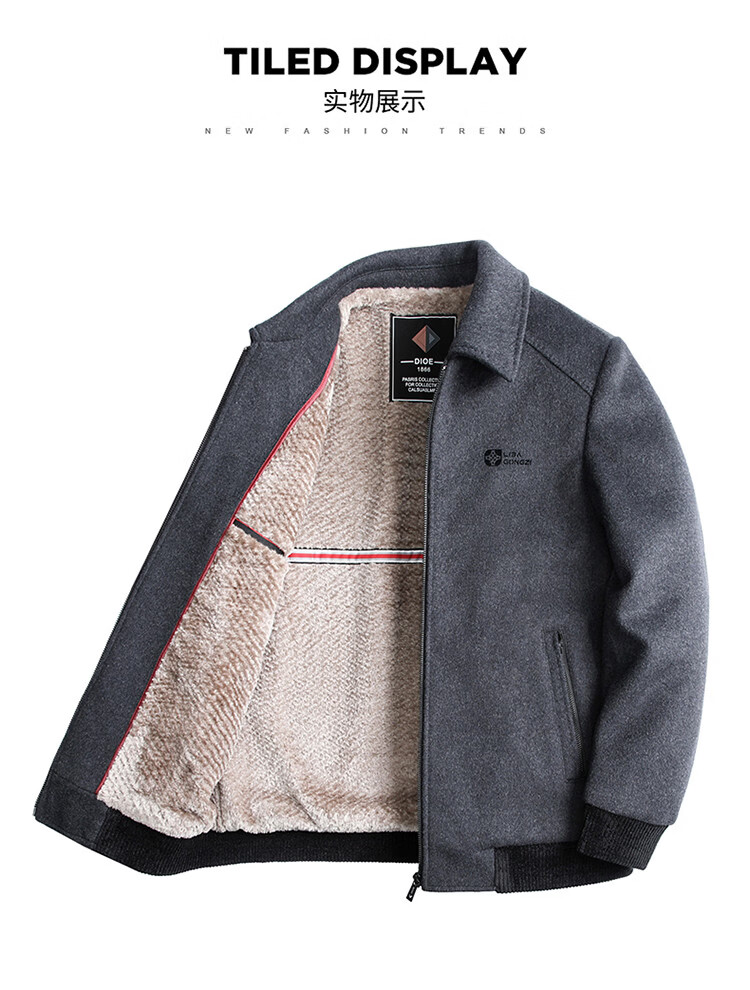LILANZ Men's Thickened Lapel Sheep Wool Woolen Jacket 2025 New Casual Warm Jacket Middle-aged and Elderly Plush Men's Clothing Gray M
