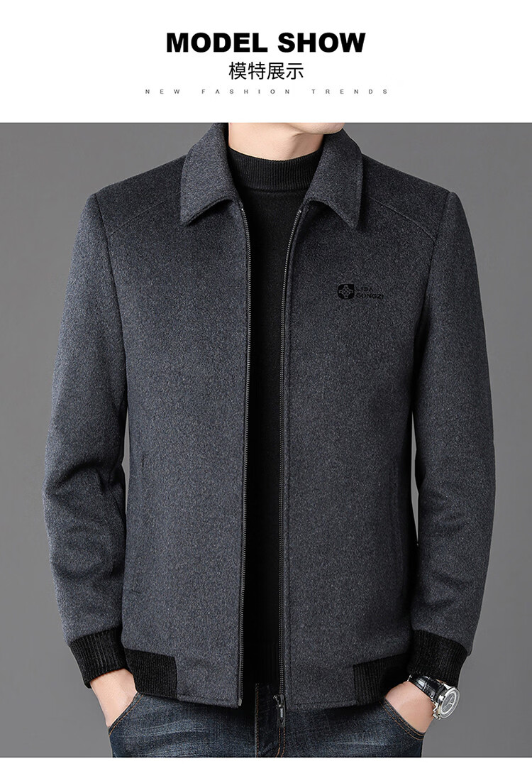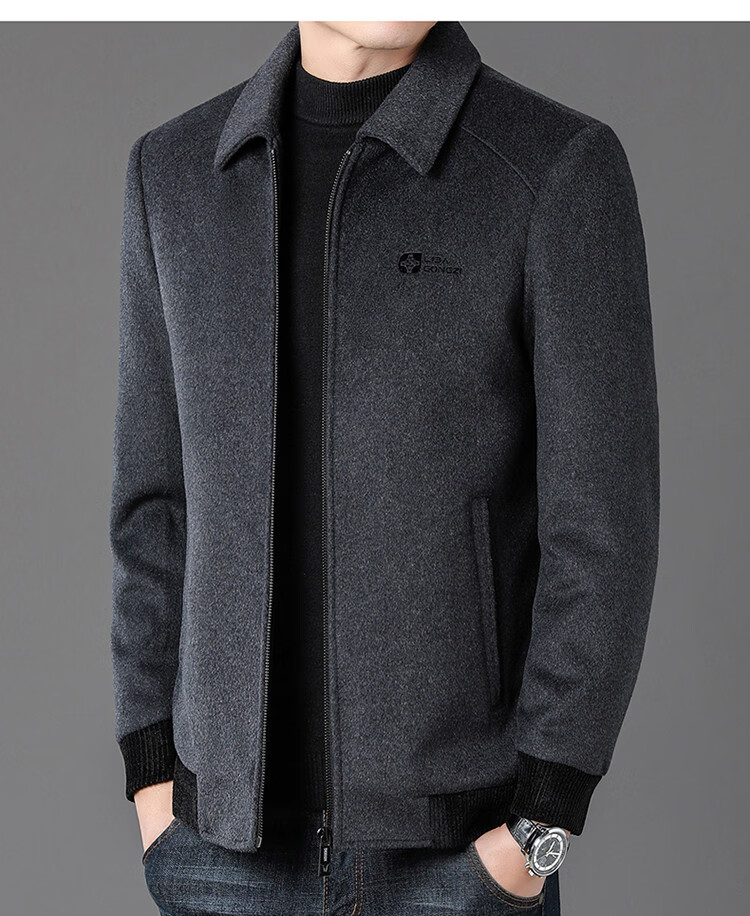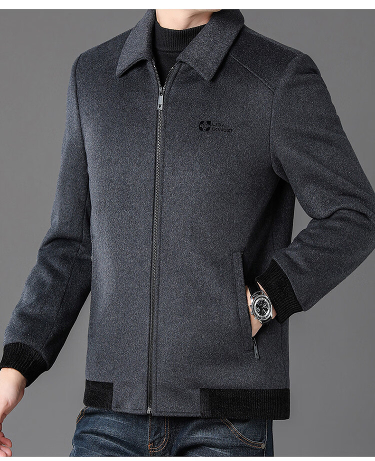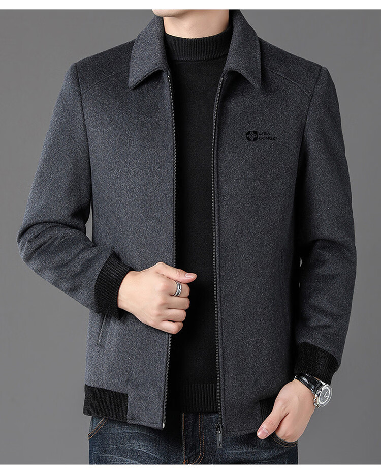 LILANZ Men's Thickened Lapel Sheep Wool Woolen Jacket 2025 New Casual Warm Jacket Middle-aged and Elderly Plush Men's Clothing Gray M
