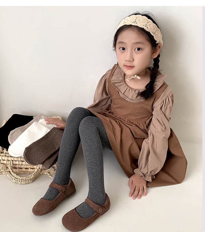 Spring and autumn velvet thickened children's pantyhose thin velvet girls' leggings leggings dance socks one-piece pantyhose B 5508 nine-point oatmeal about 170g 1 piece 6-8 years old (L) recommended height 115-125cm