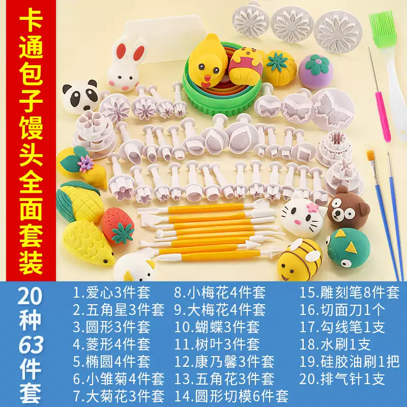 Yusenyi 33-piece steamed bun embossing mold cartoon bun pattern steamed bun mold household baking fondant cake tool set 33-piece set-kneading dough mat 40x50cm 33-piece set-kneading dough mat 40x50cm 33g