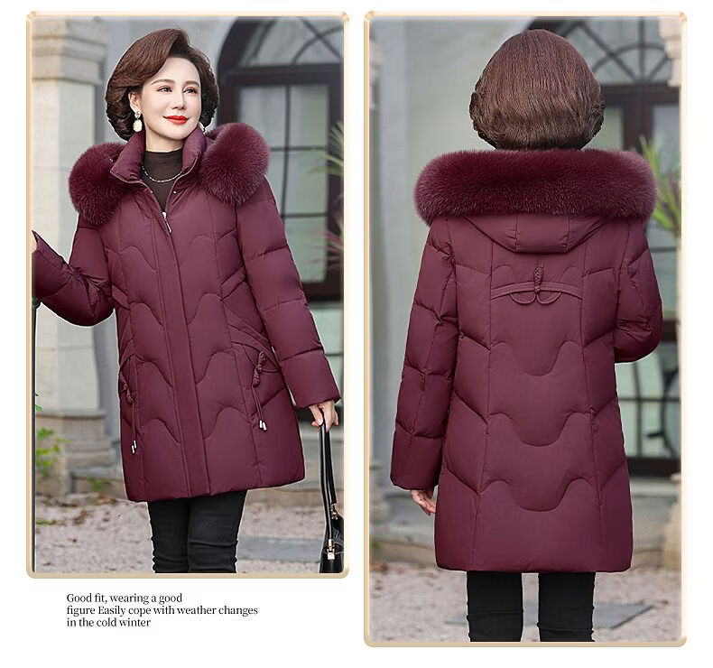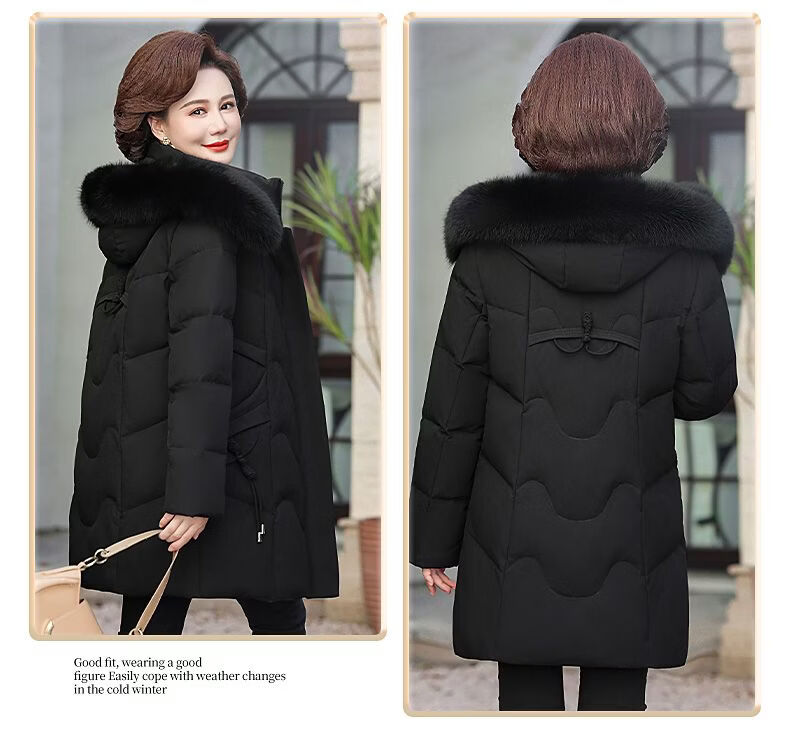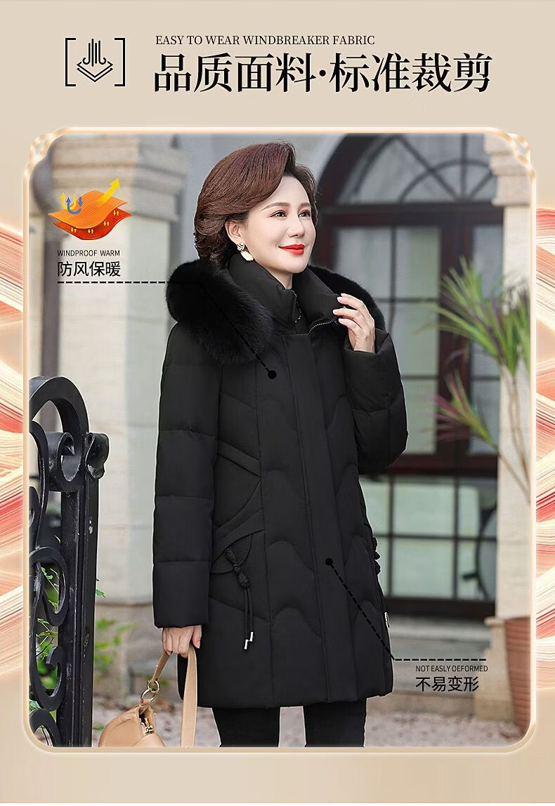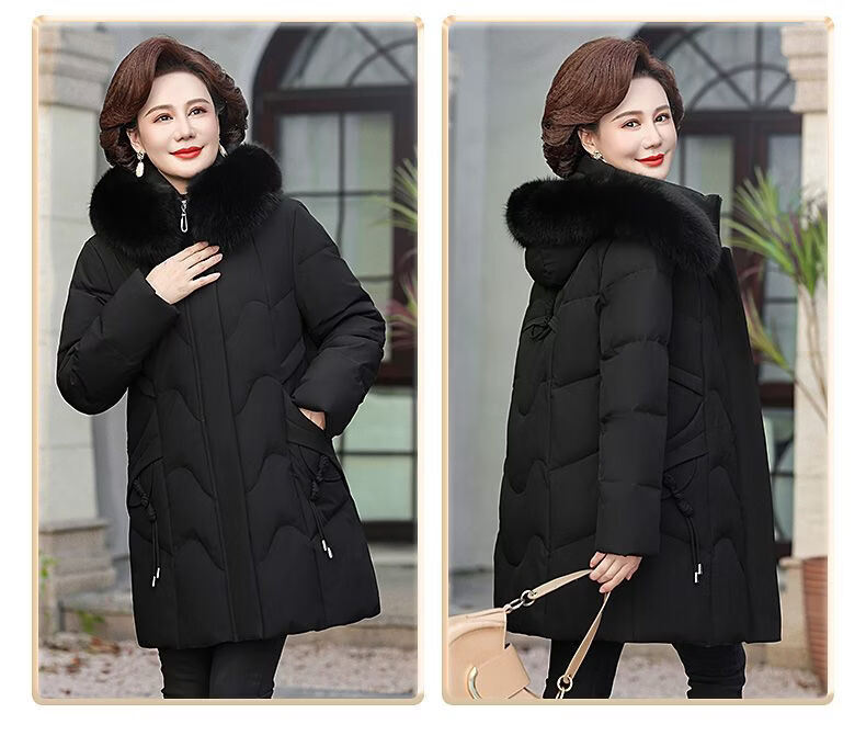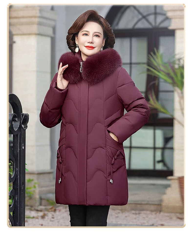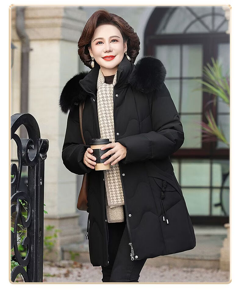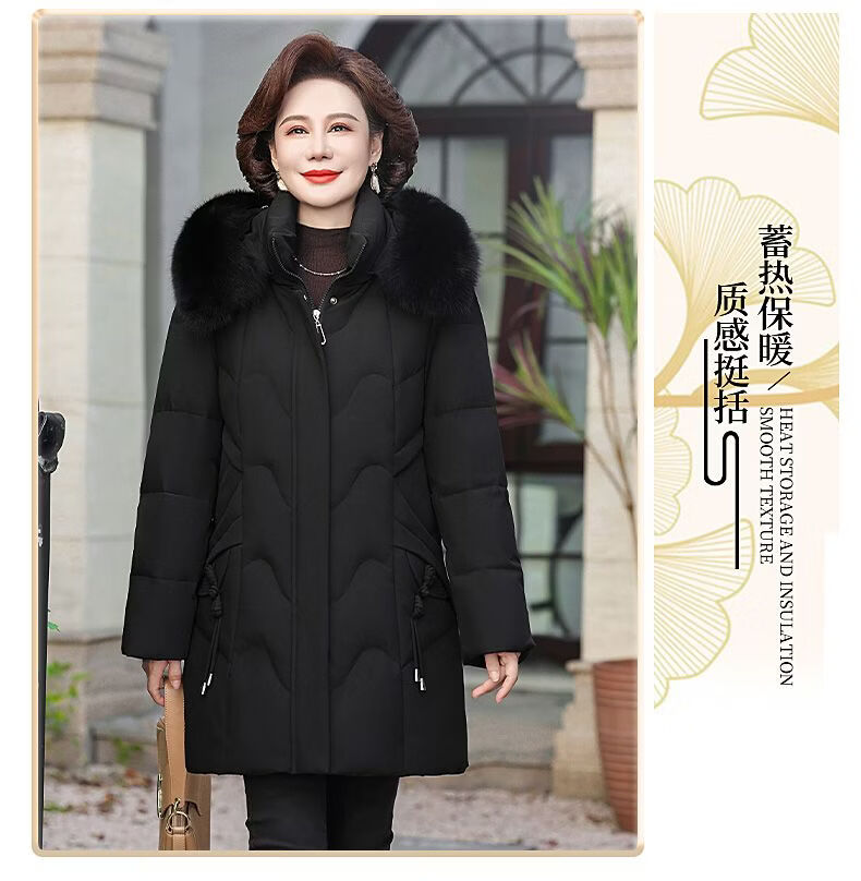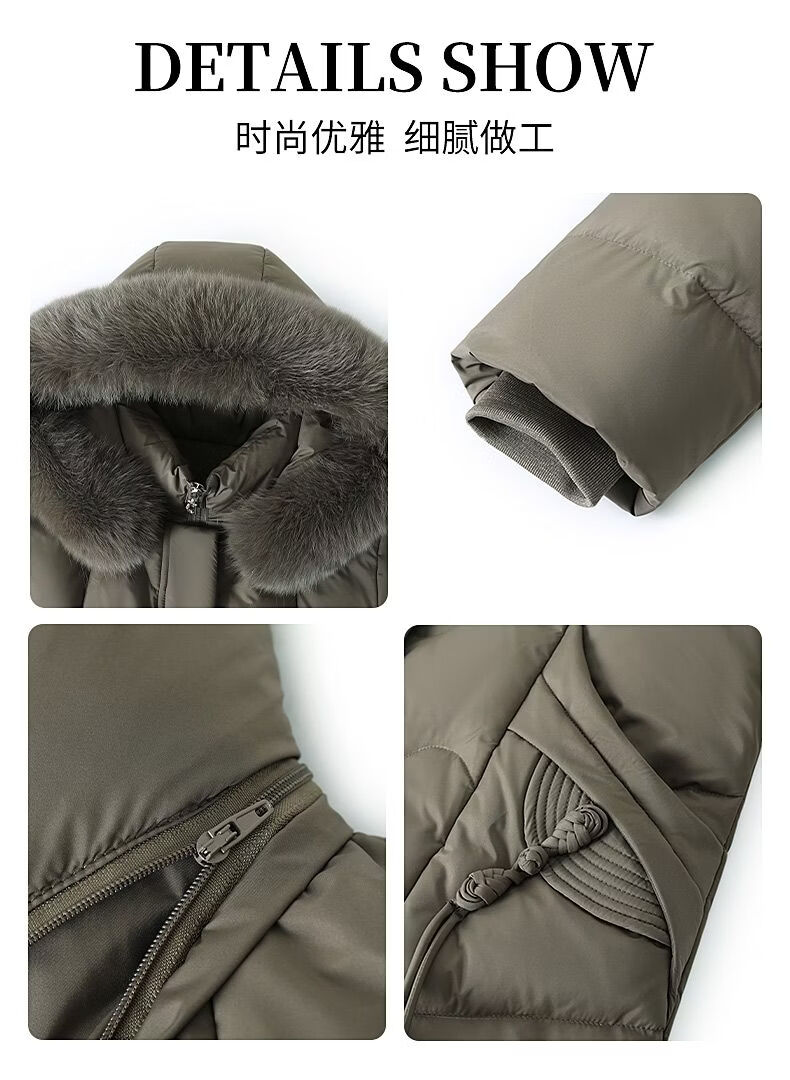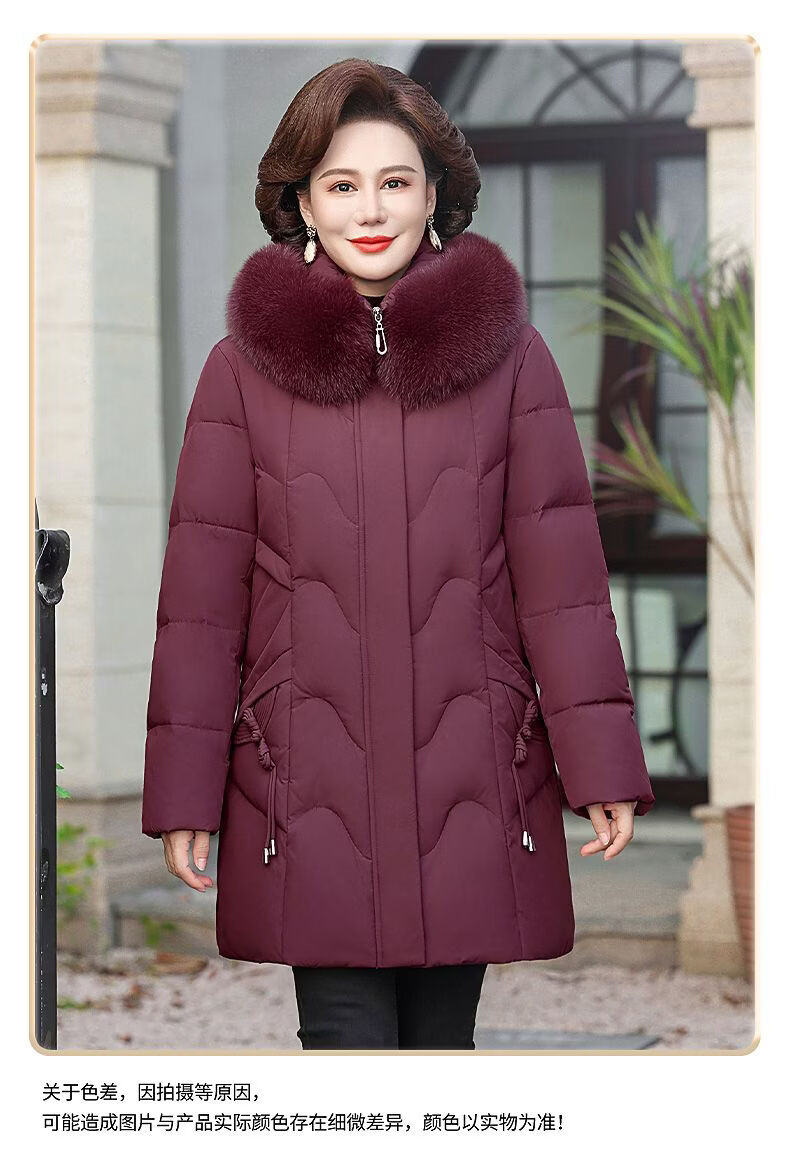 ROMON Mother's Down Jacket Winter Thickened White Duck Down Women's Mid-Length 2026 New Middle-aged and Elderly Fur Collar Mid-Length Jacket Green Card Hot Selling Index Five Stars Removable Hat XL Recommended 90-110 Jin Jin equals 0.5 kg