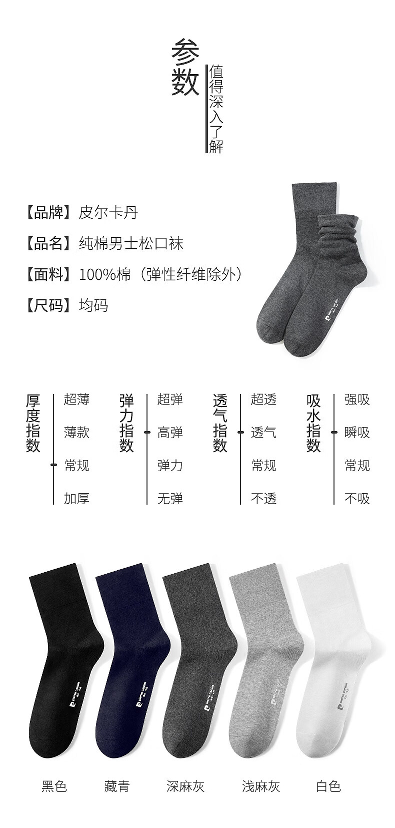 Pierre Cardin Pierre Cardin Loose Mouth Socks Men's Stockings for the Elderly Loose Mouth Cotton Socks Pure Cotton Medium Socks Wide Sock Mouth Loose Mouth Pure Cotton - 3 Black 2 Dark Gray One Size (39-43)