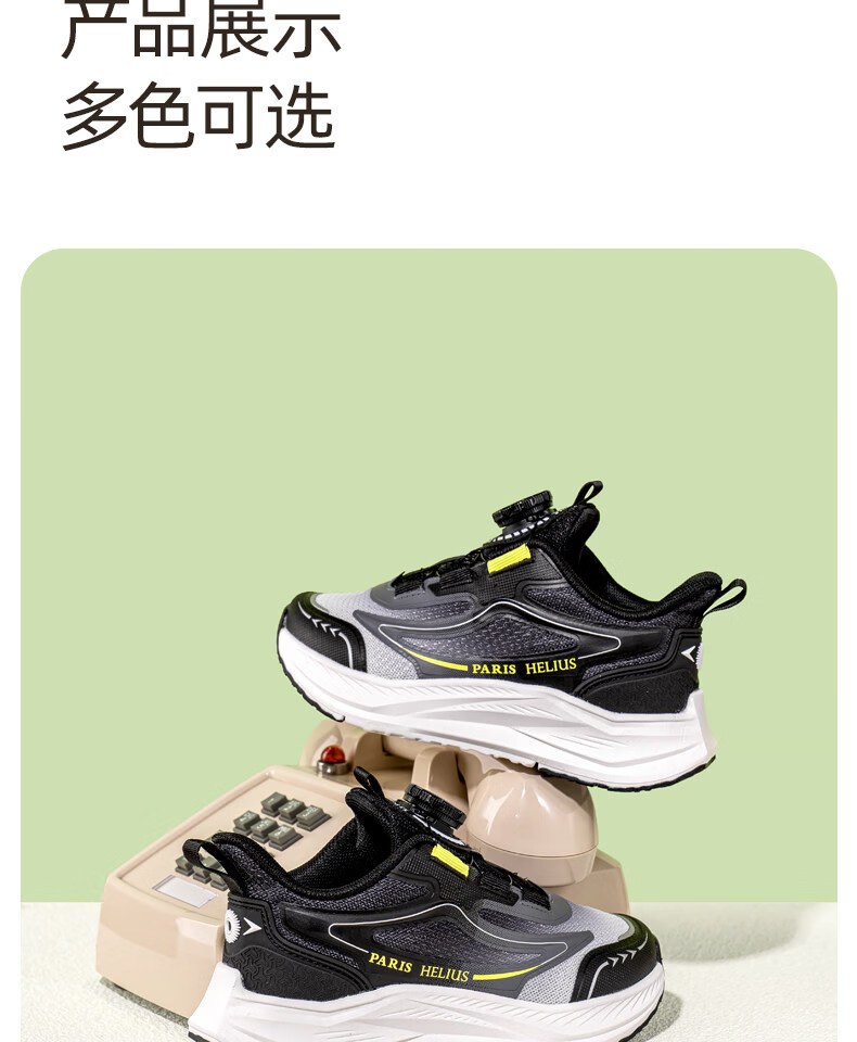 Helios children's shoes spring new style soft-soled functional shoes for boys and girls, sports shoes for children, lightweight mesh shoes, black 32, inner length 20.7cm, foot length approximately 19.2-19.7cm