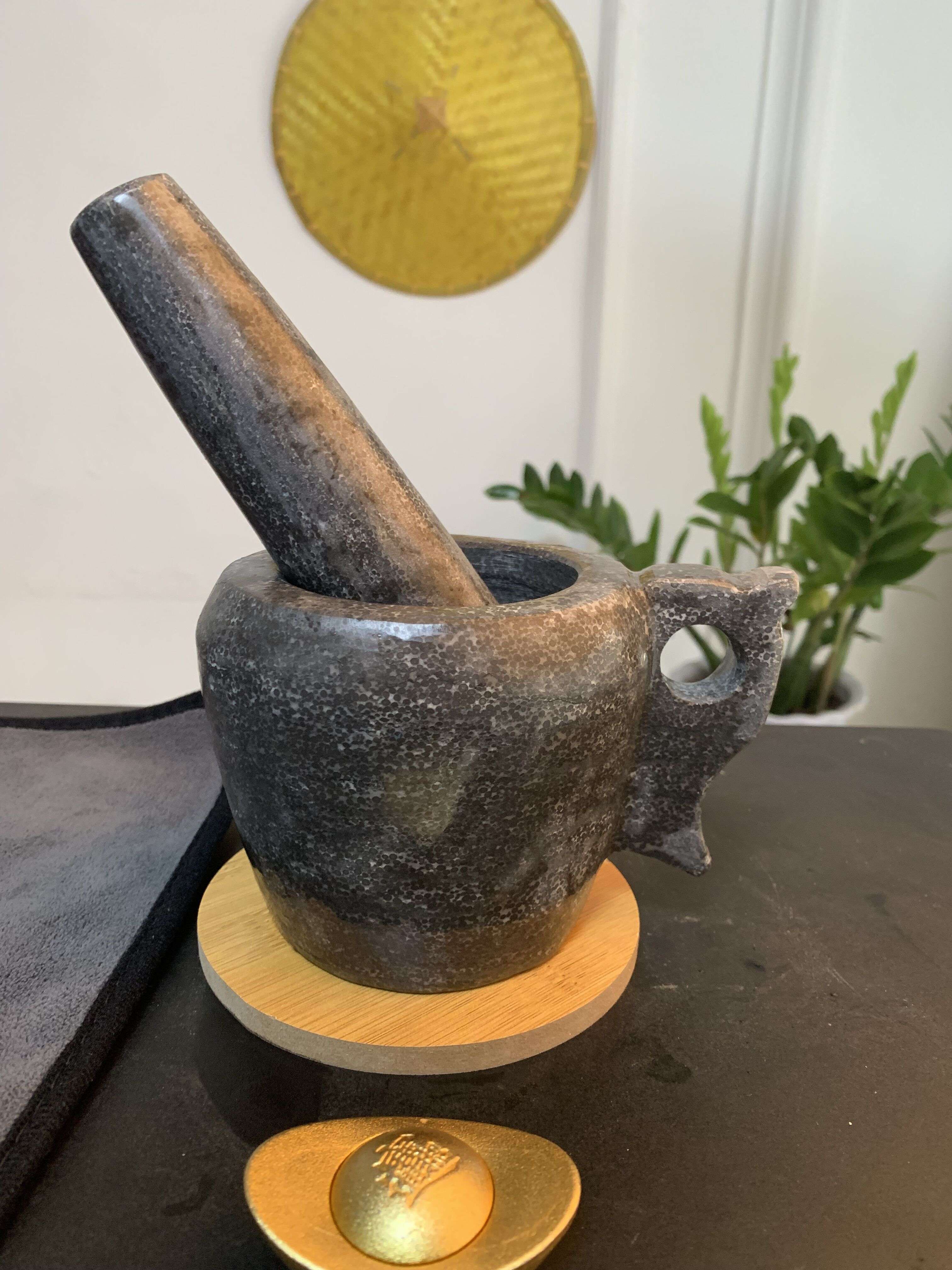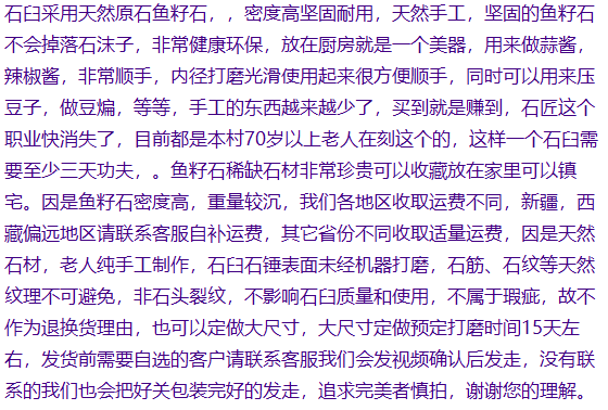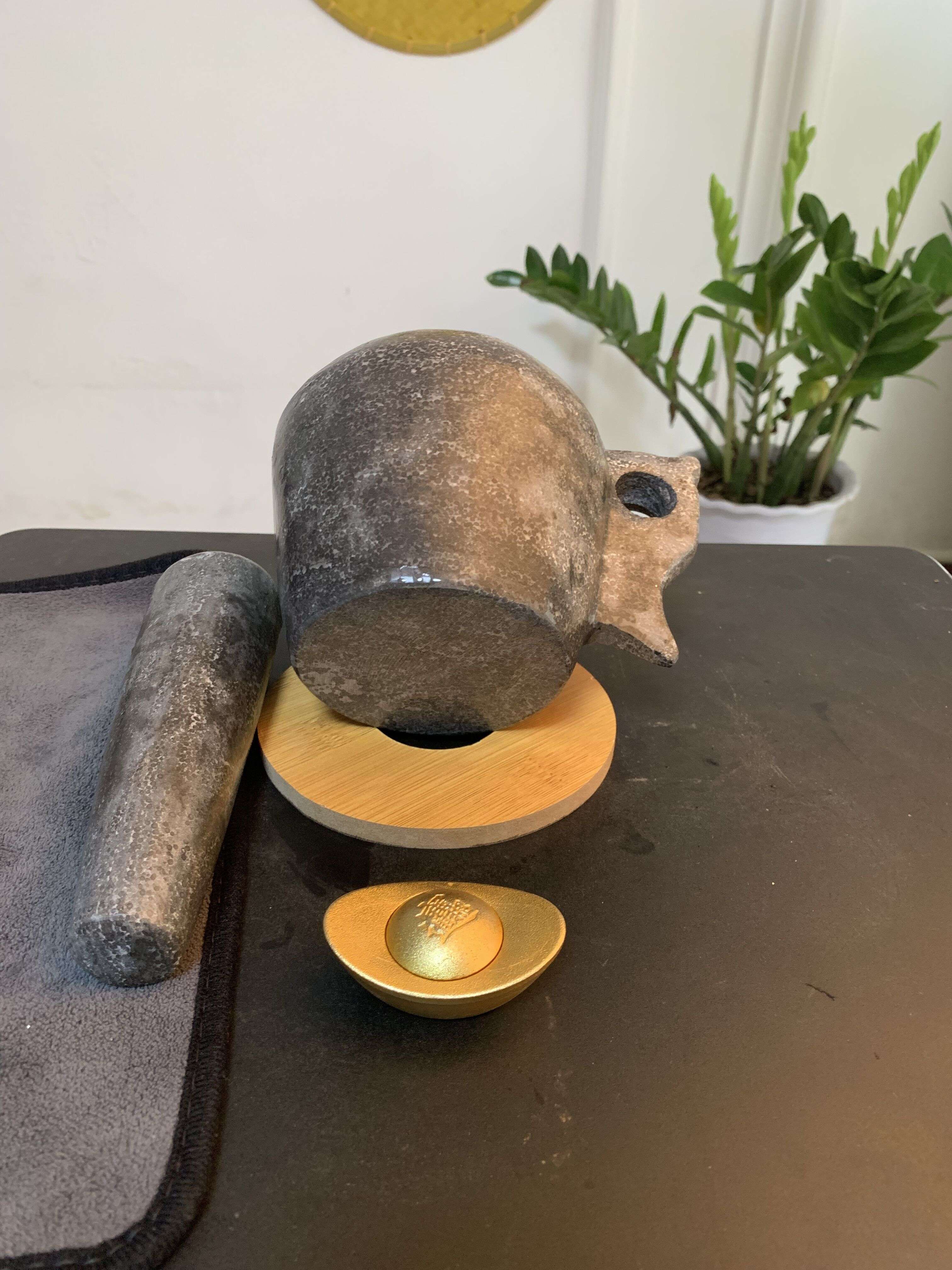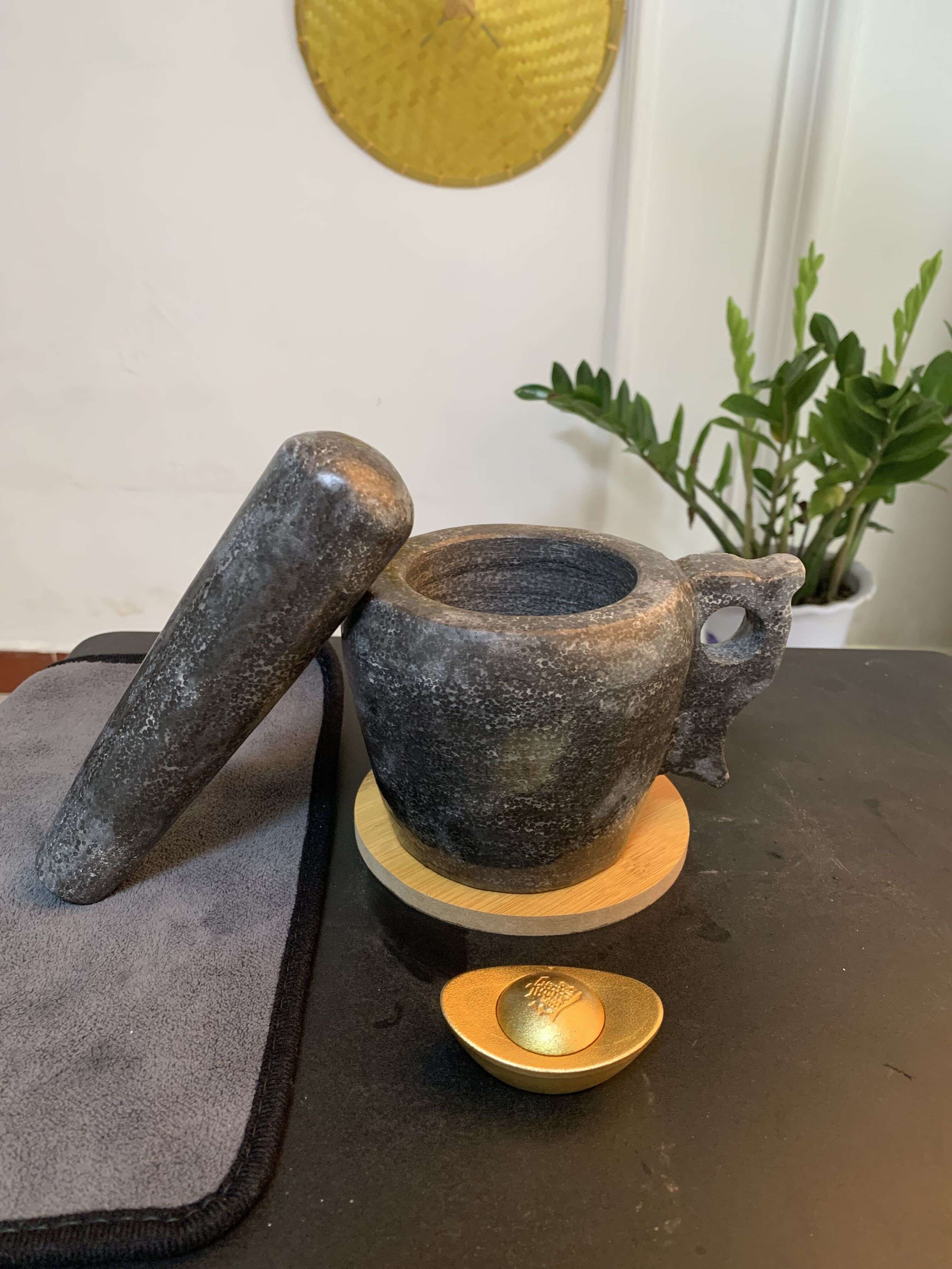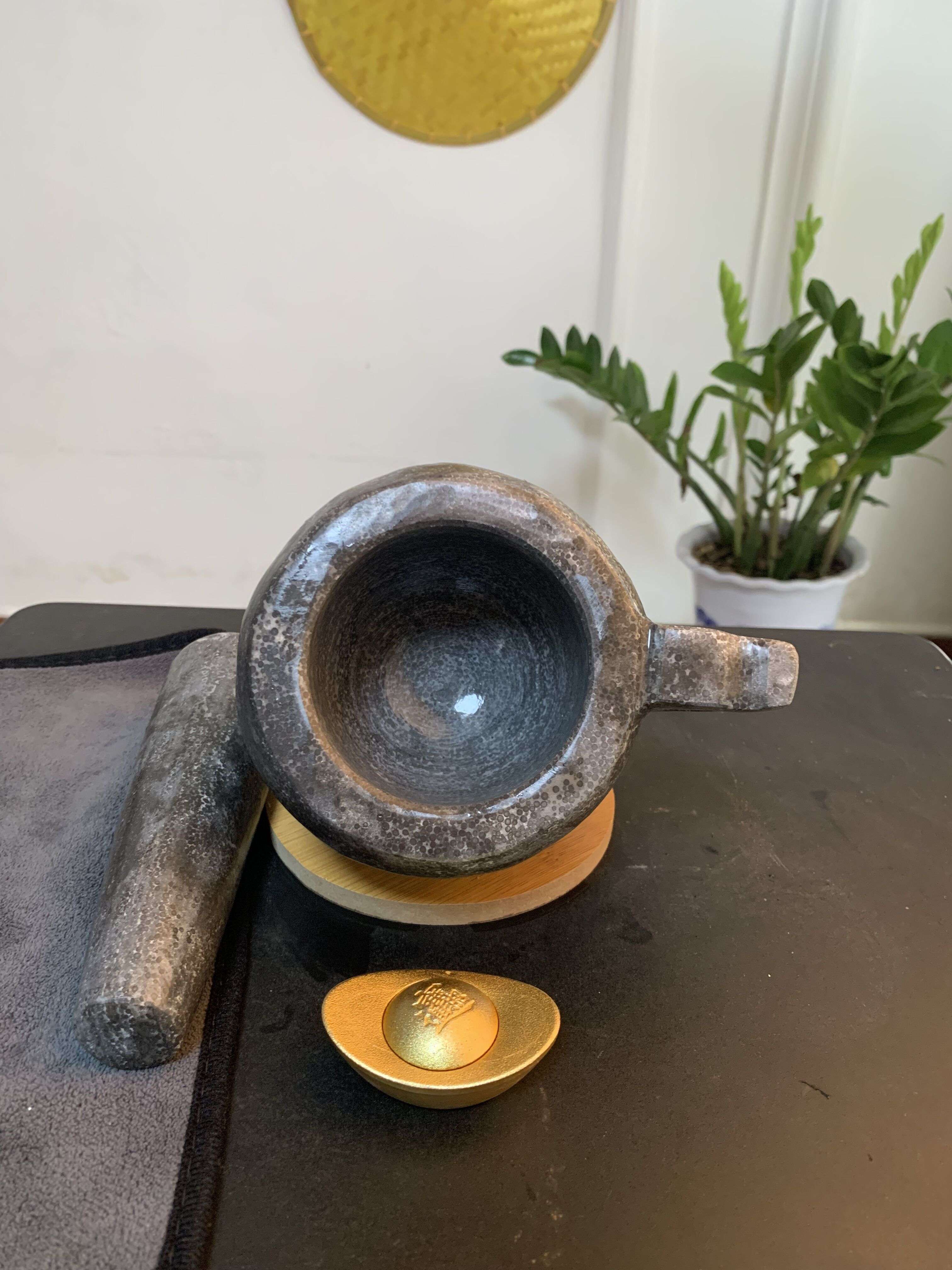 Shandong Lao Li pure handmade caviar stone garlic mortar stone mortar household tamper jar grinder collection town house garlic mortar 7.5 cm