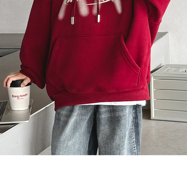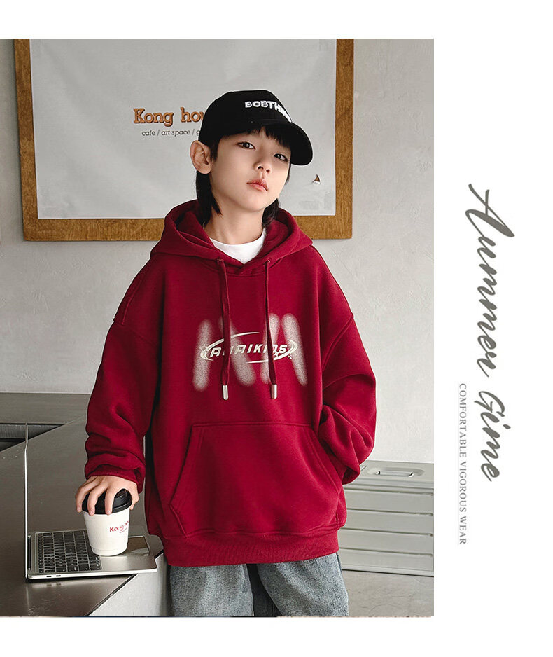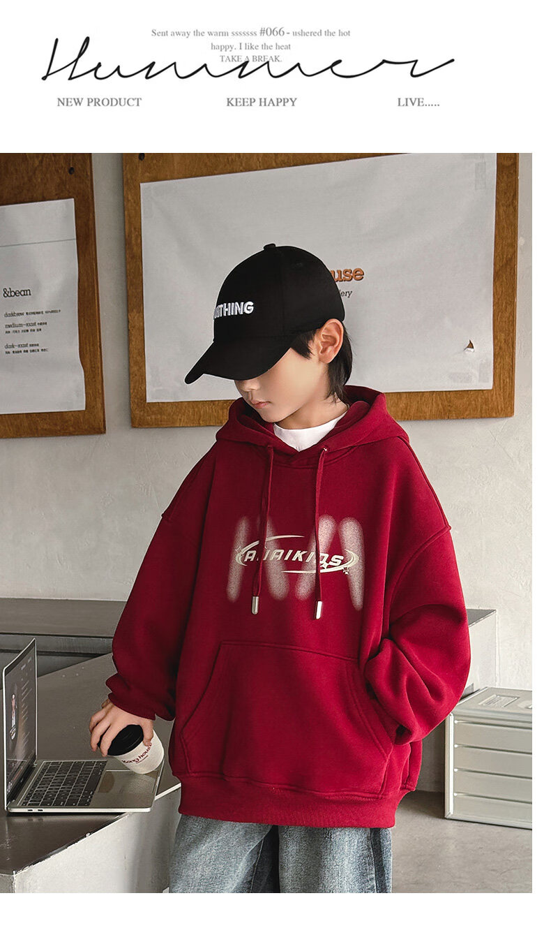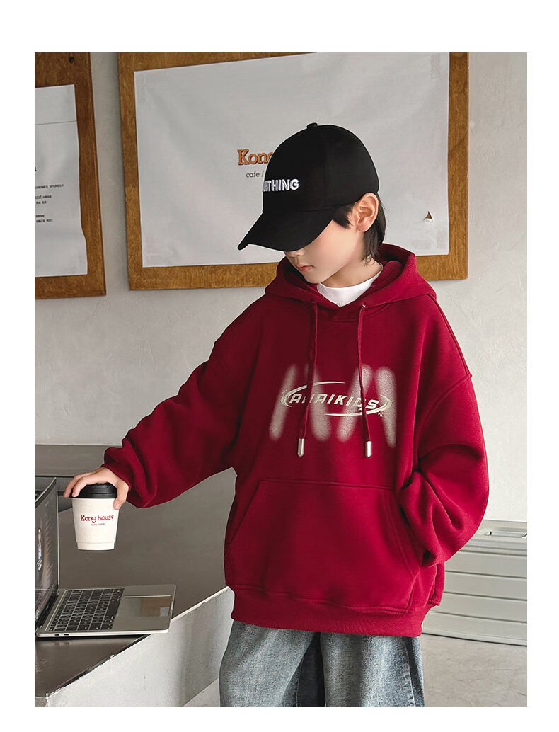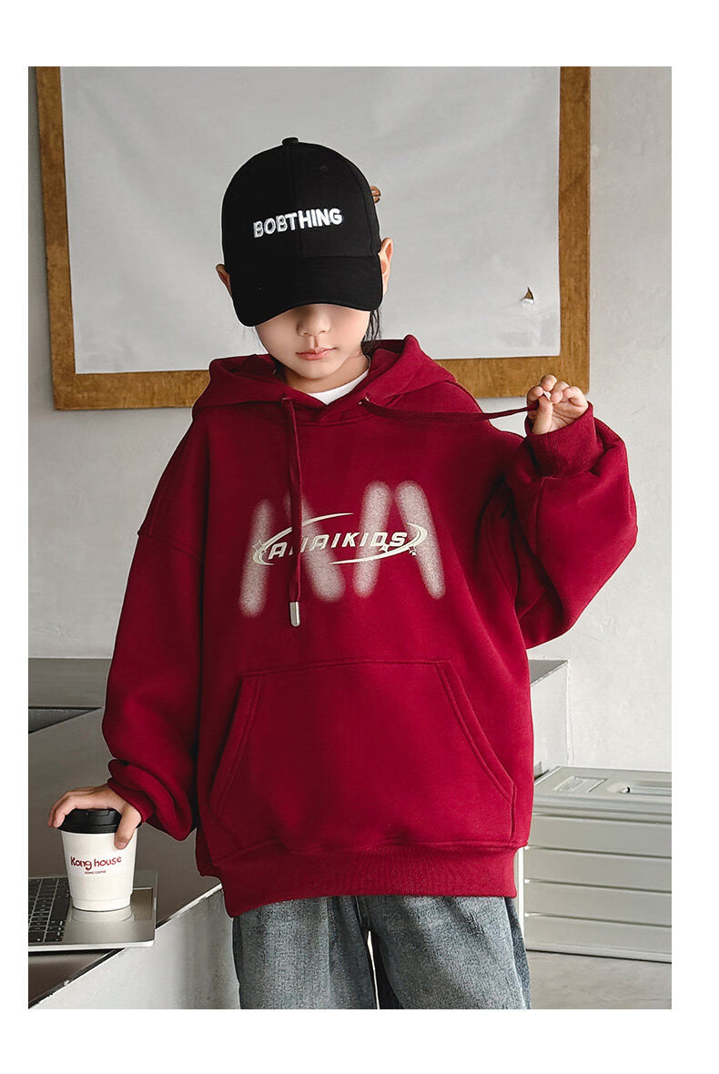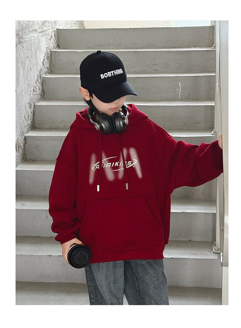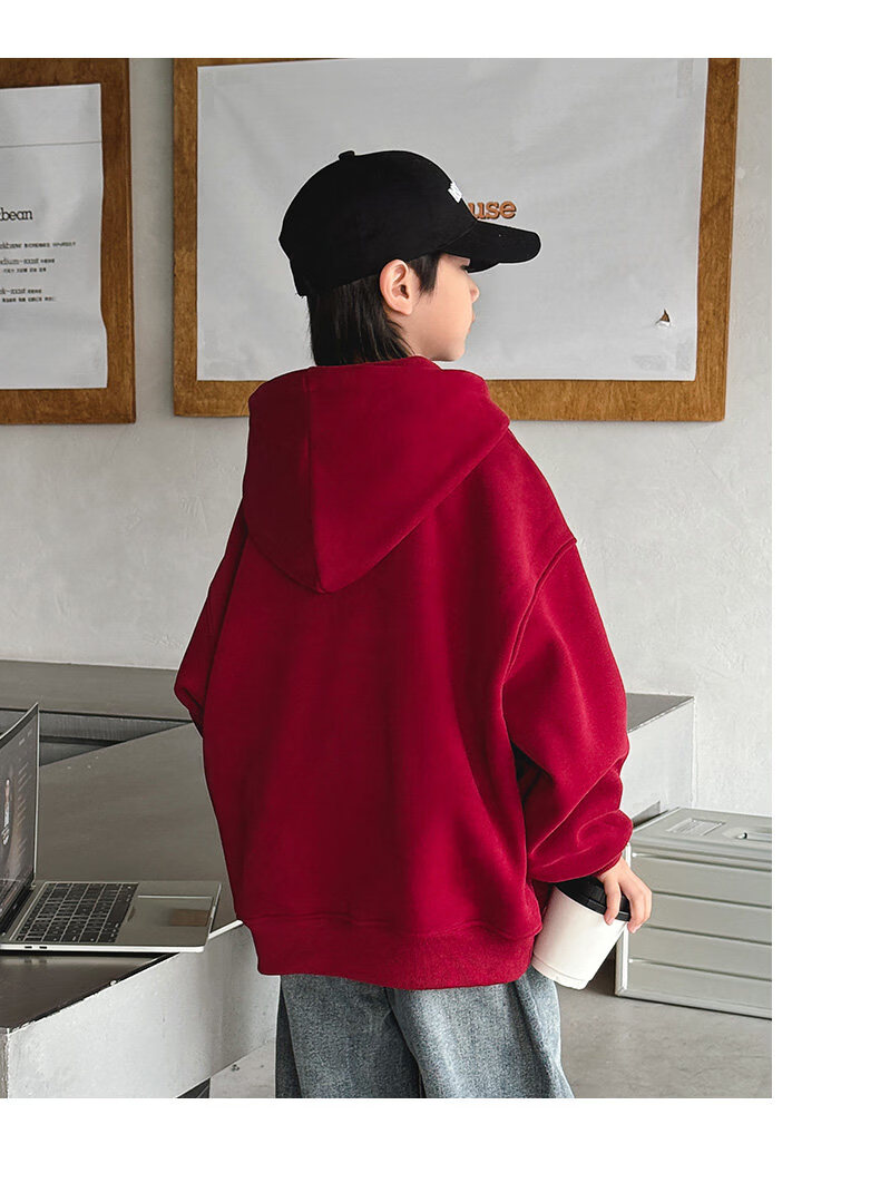 Disney Boys Red Sweatshirt Autumn and Winter New Zodiac New Year Children's Thickened Winter Year of the Horse Plus Velvet New Year's Clothes New Year Cotton Clothes Style Red Plus Velvet Thickened 170 cm