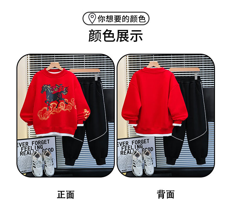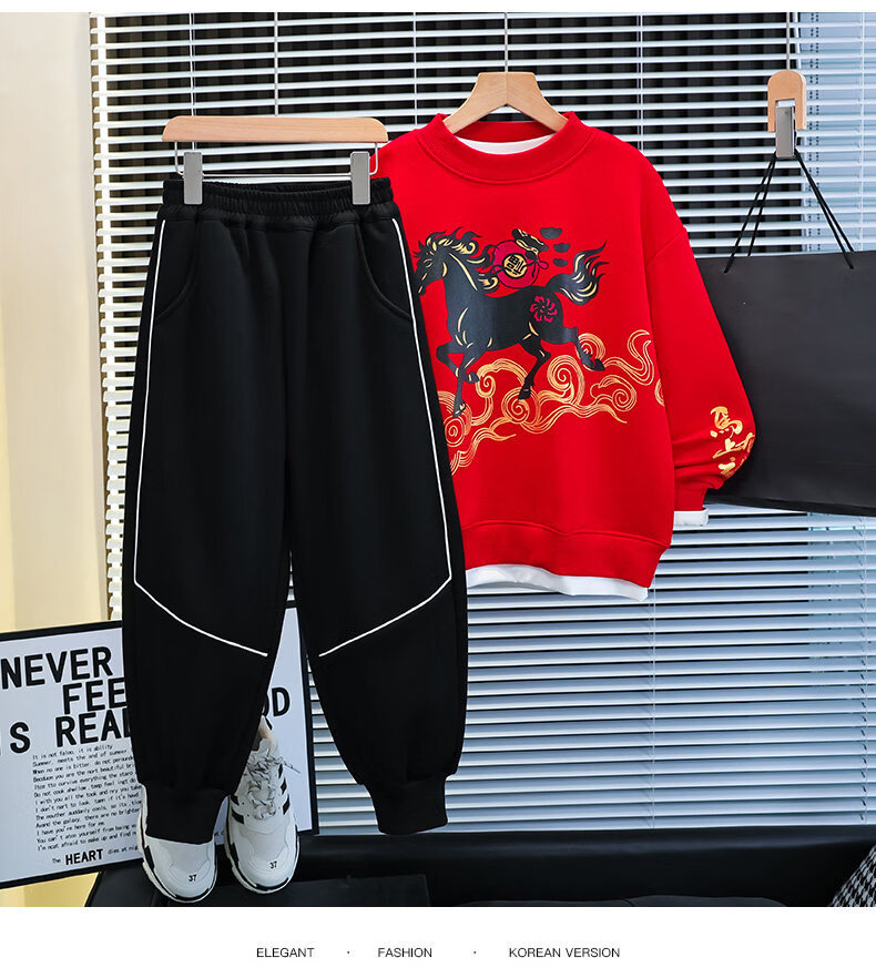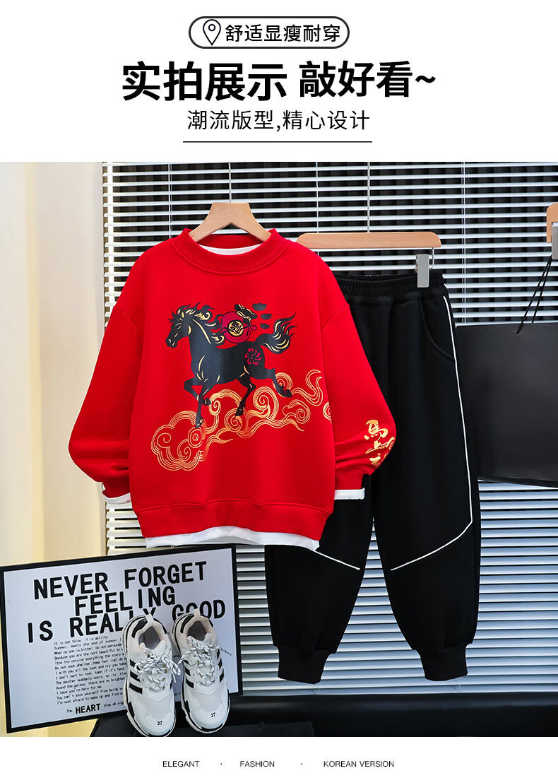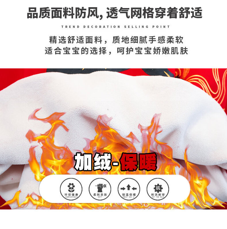 Disney boys' velvet suit autumn and winter new zodiac new year for older children winter thickened red clothes for New Year's greetings cotton coat style red velvet thickened 170 cm