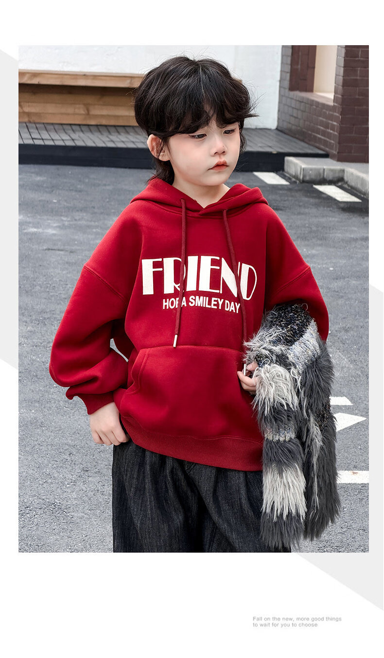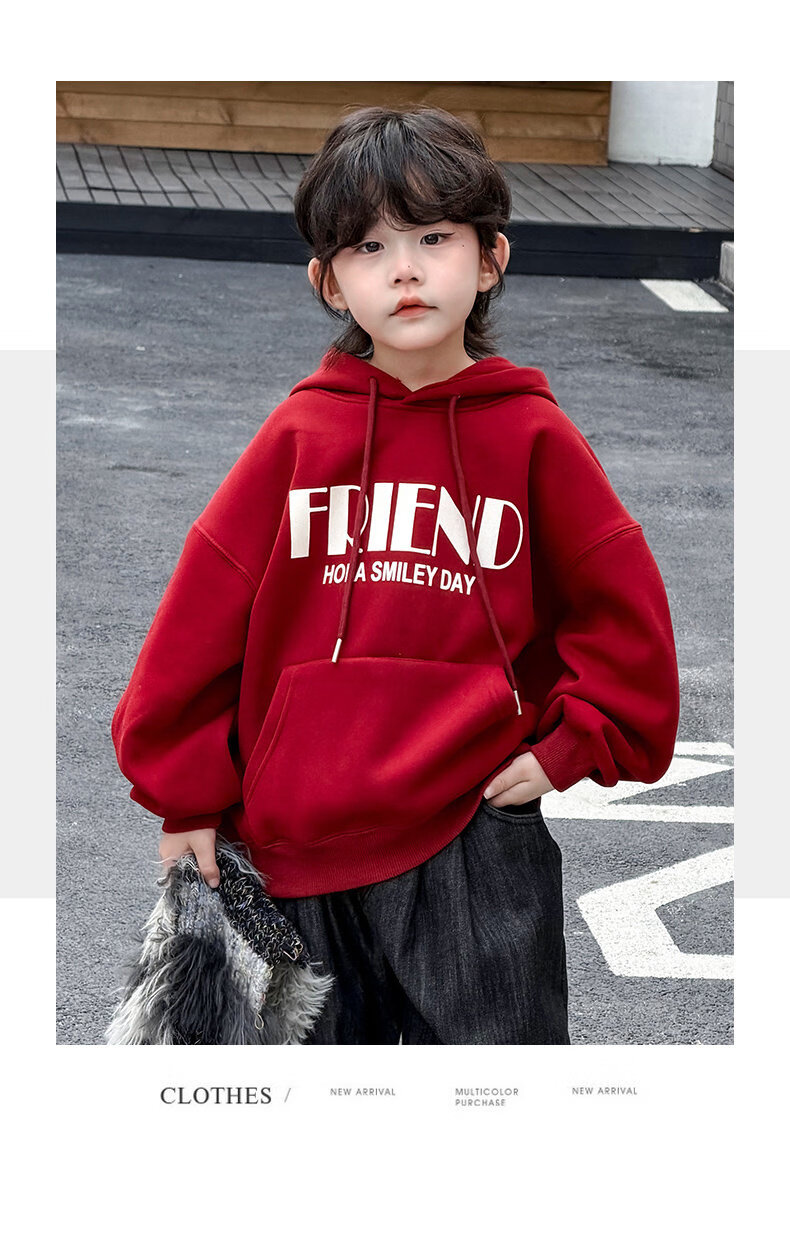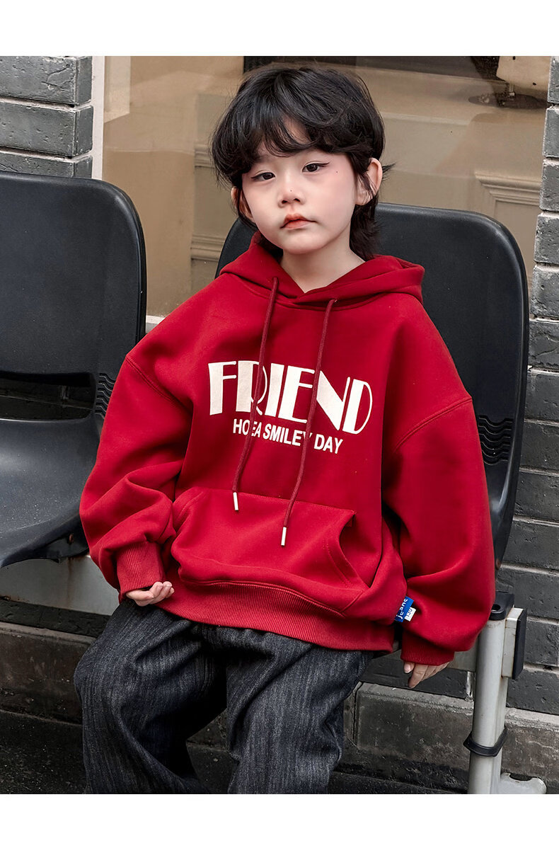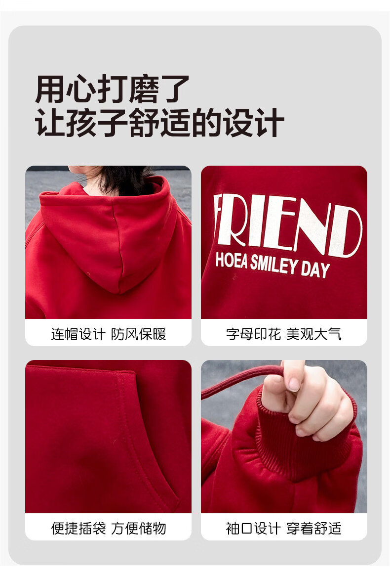 Disney Boys Red Sweatshirt Autumn and Winter New Style Children's Year of the Horse Thickened and Velvet Zodiac New Year Winter New Year's Greeting Clothes Cotton Jacket Style Red and Velvet Thickened 160 cm