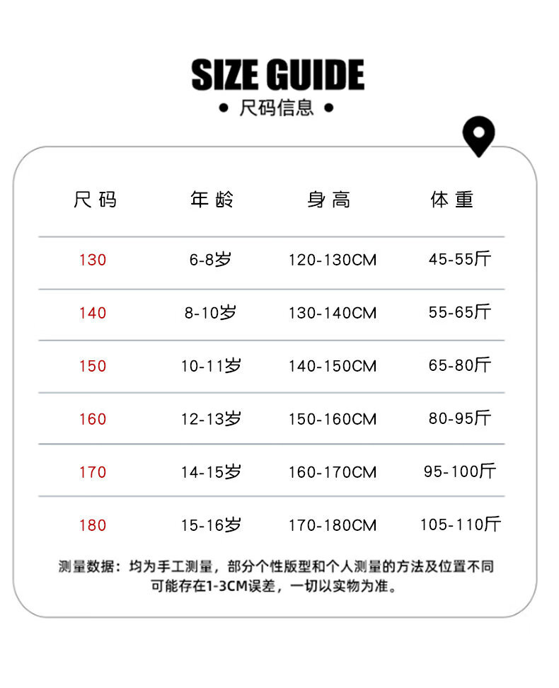 China (cm) 165 / 88-90 170 / 96-98 175 / 108-110 180 / 118-122 185 / 126-130