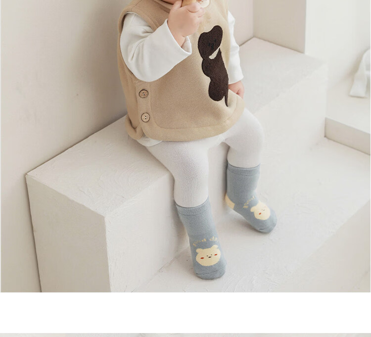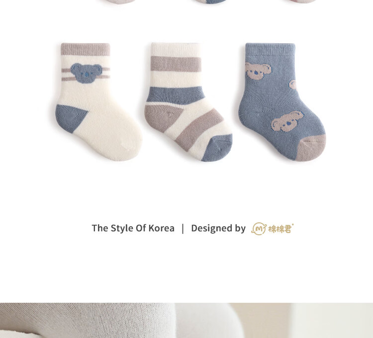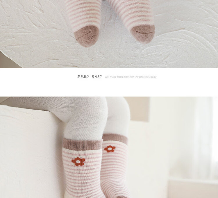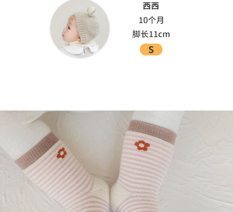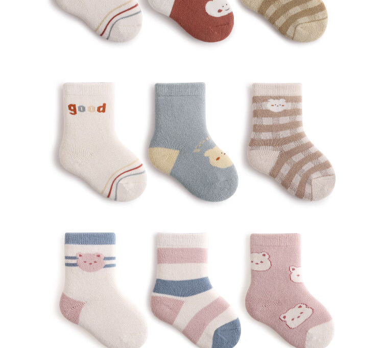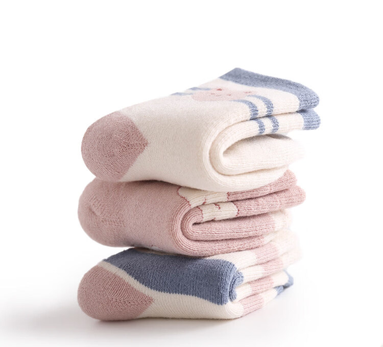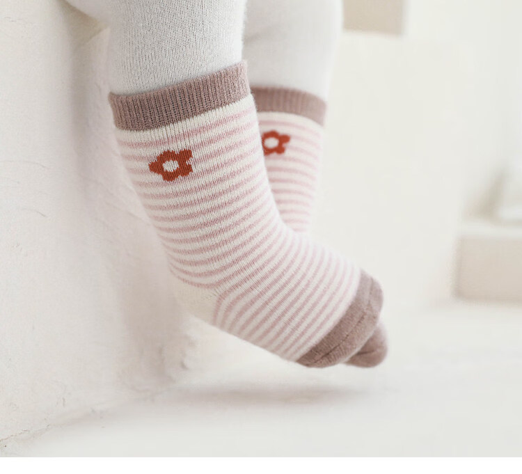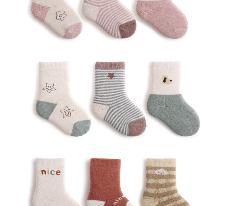 Disney Newborn Baby Socks Autumn and Winter Thickened Outing Terry Class A Male Baby Pure Cotton 0 to 3 Months Mid-Tube Children's Clothes Stripe Series - Striped Puppy (Pack) 3 Pairs One Size S 4-12 Months (Recommended Foot Length 9-11cm)