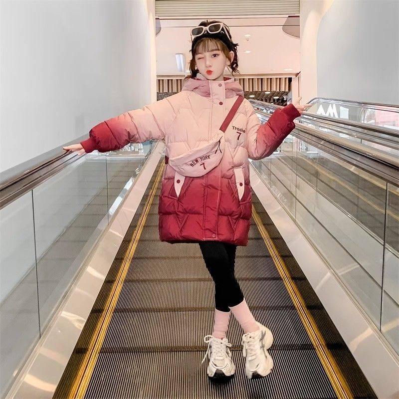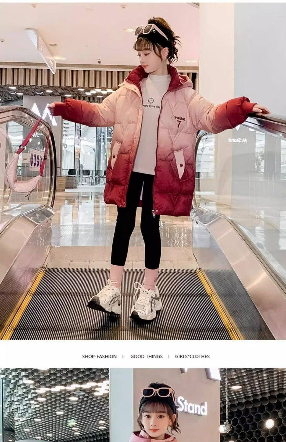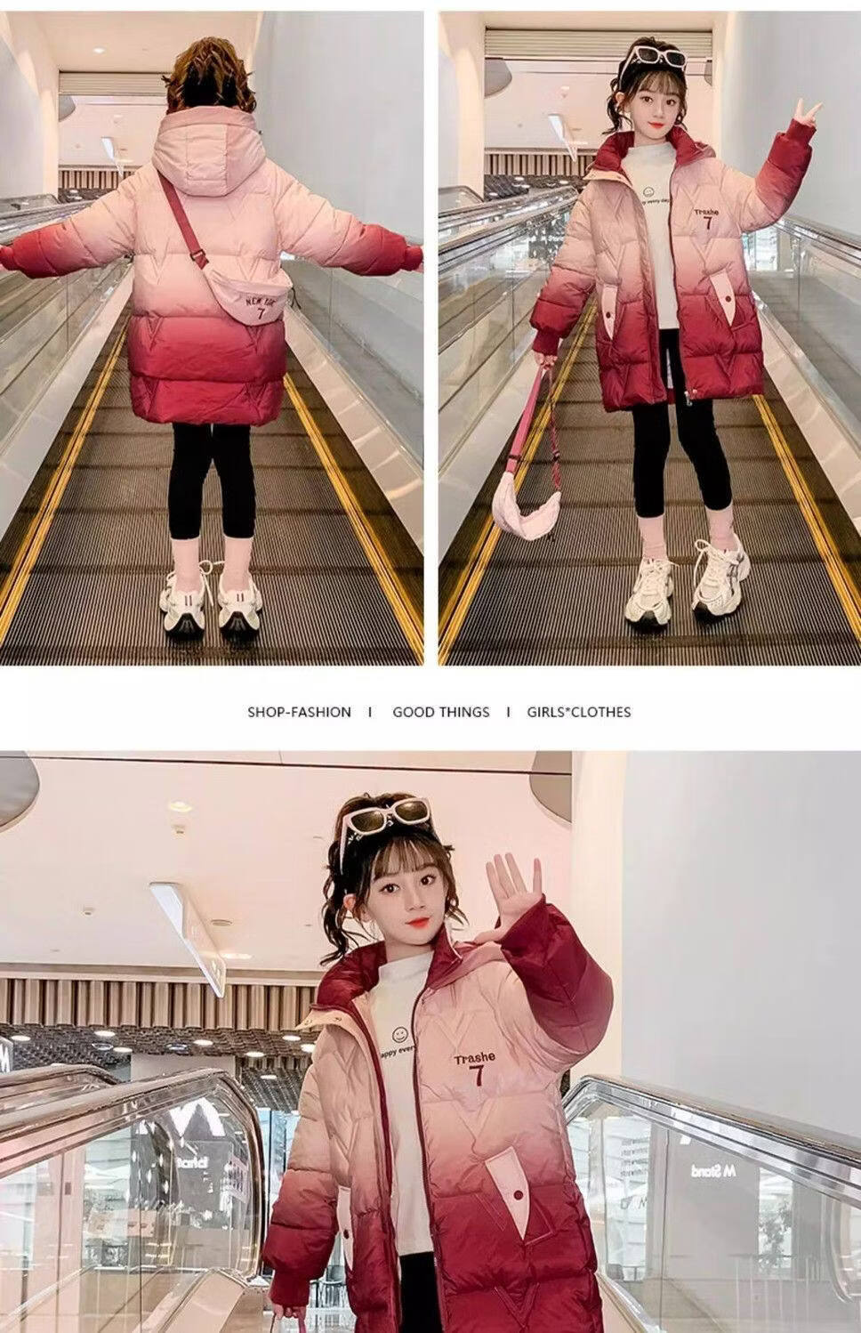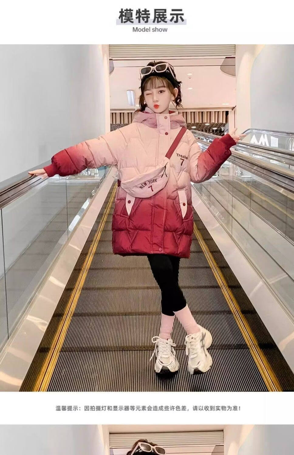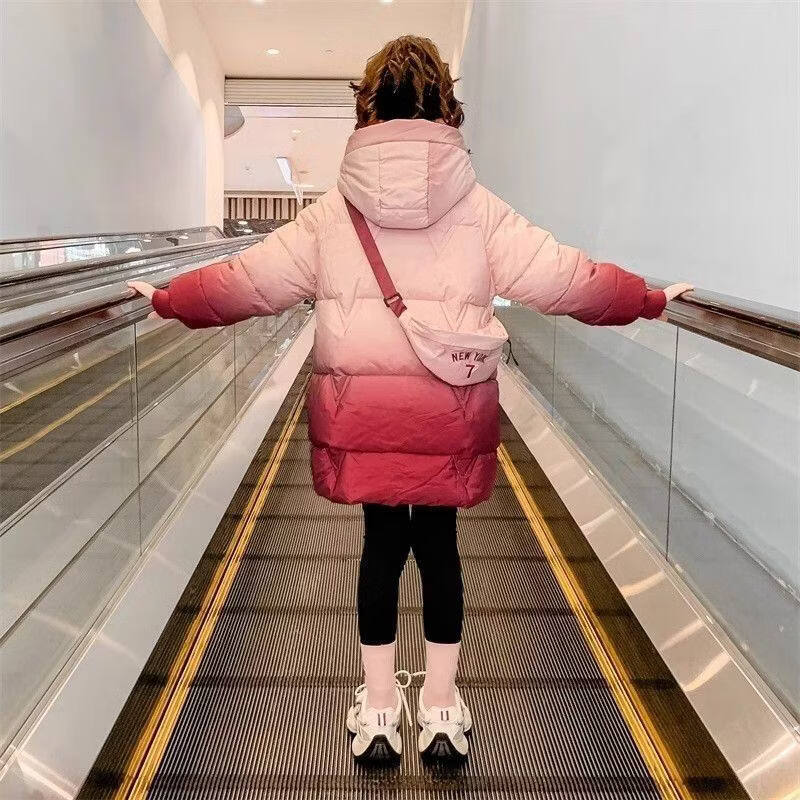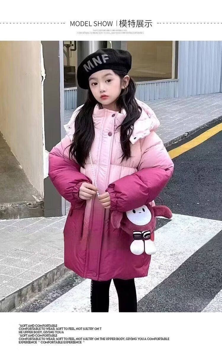 Disney Down Jacket Girls' Cotton Jacket New Winter Clothes Children's Cotton Clothes Gradient Medium and Big Children's Western Style Plus Velvet Thick Cotton Jackets Cotton Clothes Watermelon Red Egg Style Free Same Style Bag 130 (Recommended Height 115-125)