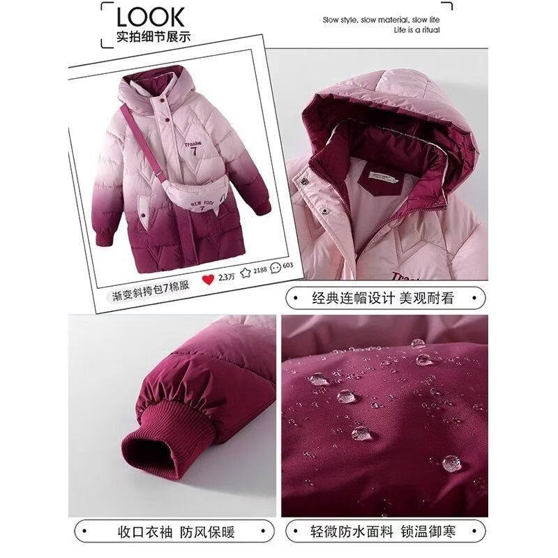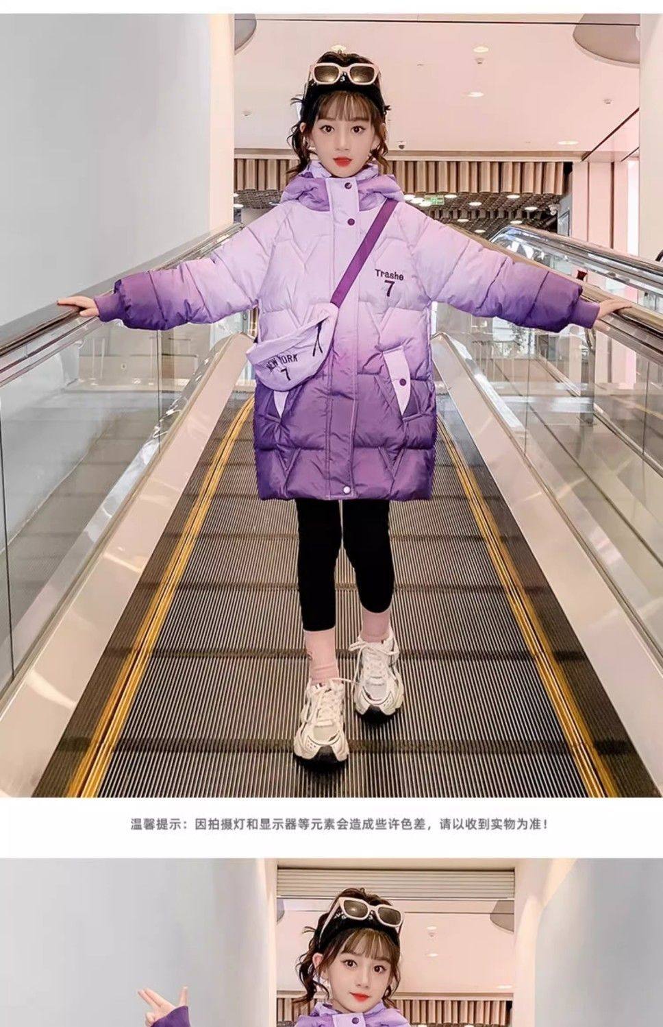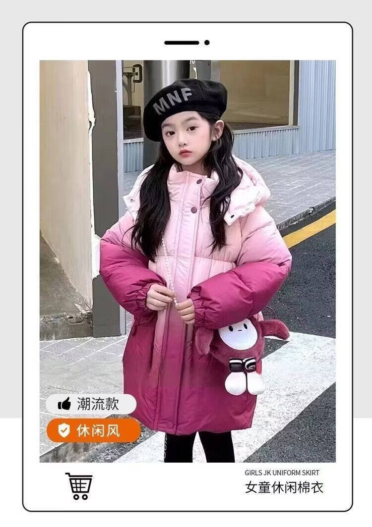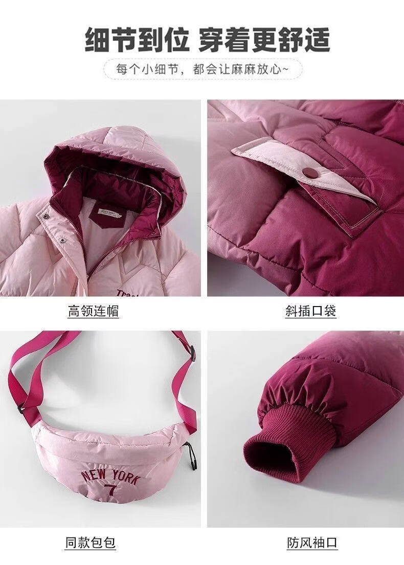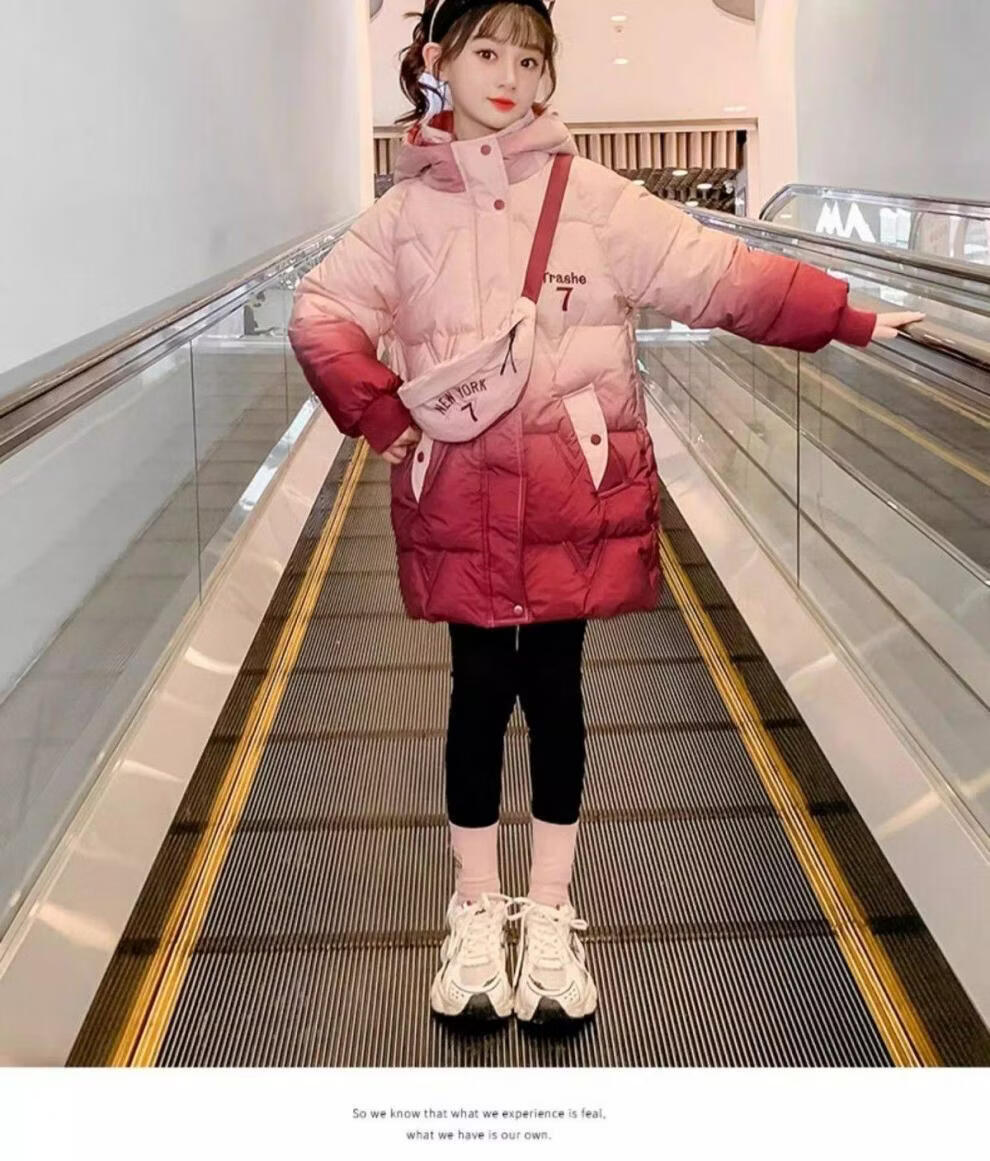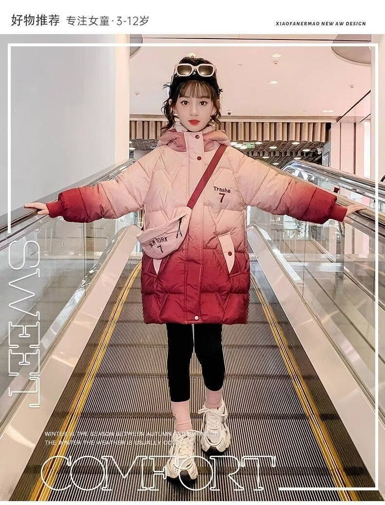 Disney Down Jacket Girls' Cotton Jacket New Winter Clothes Children's Cotton Clothes Gradient Medium and Big Children's Western Style Plus Velvet Thick Cotton Jackets Cotton Clothes Watermelon Red Egg Style Free Same Style Bag 130 (Recommended Height 115-125)