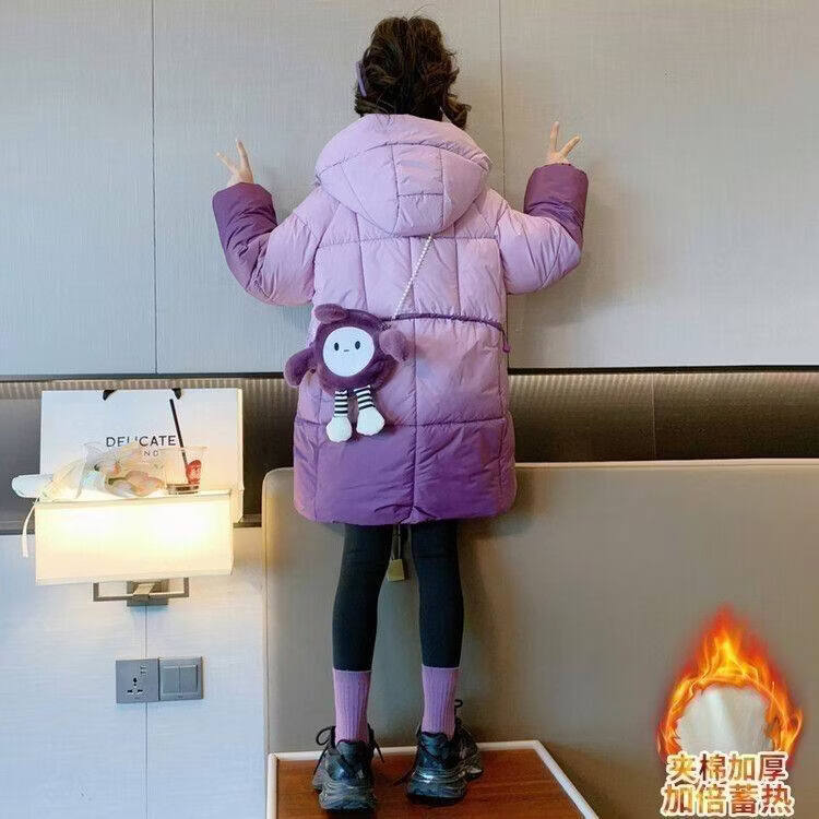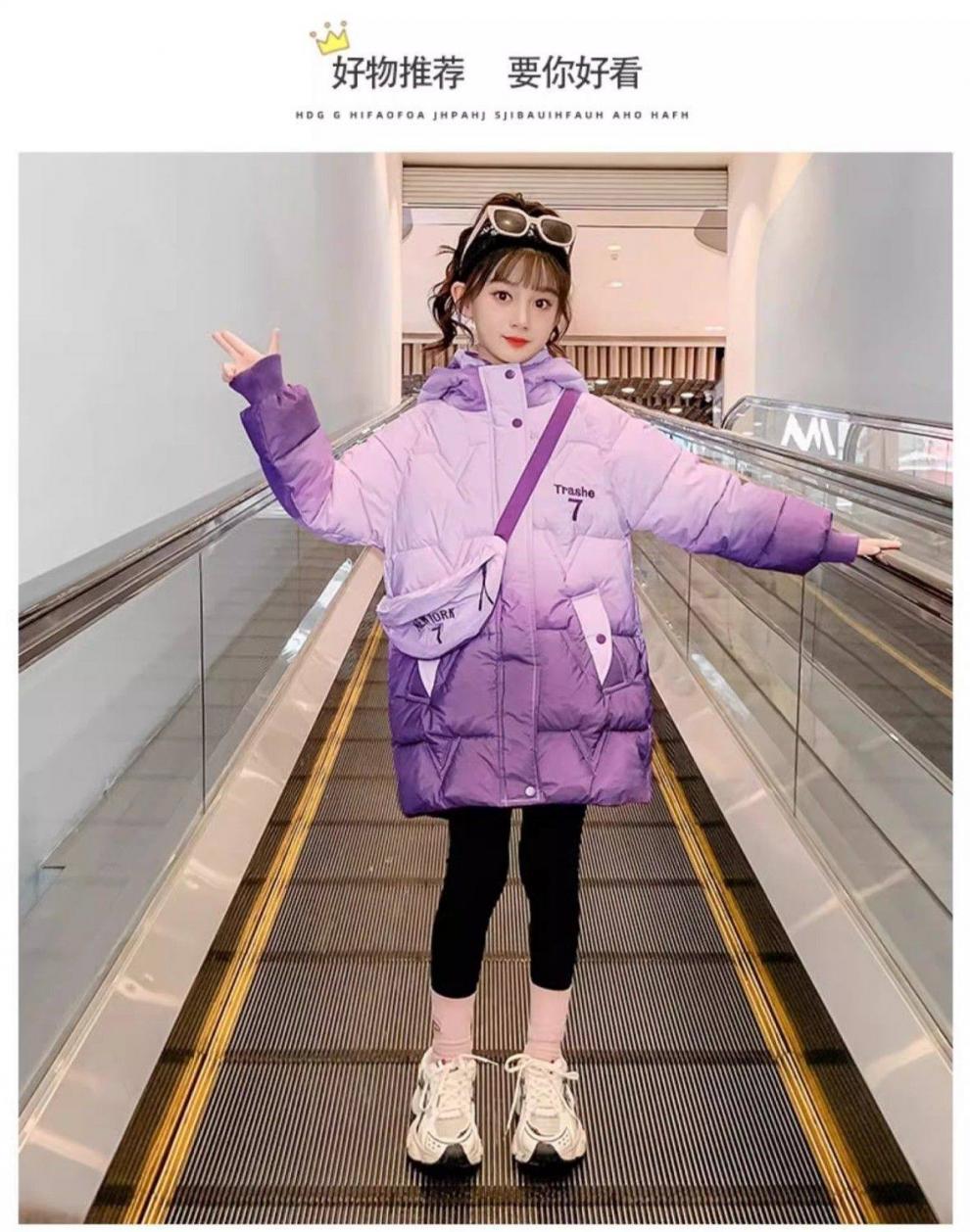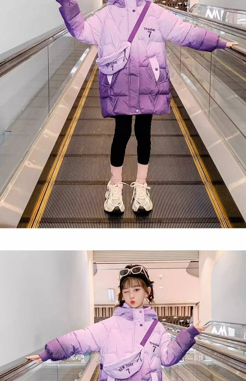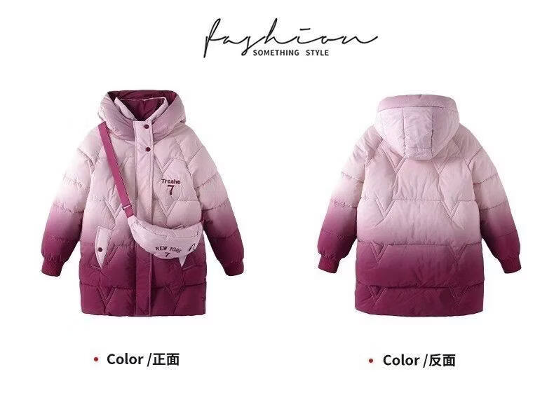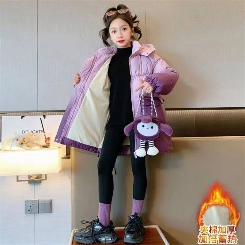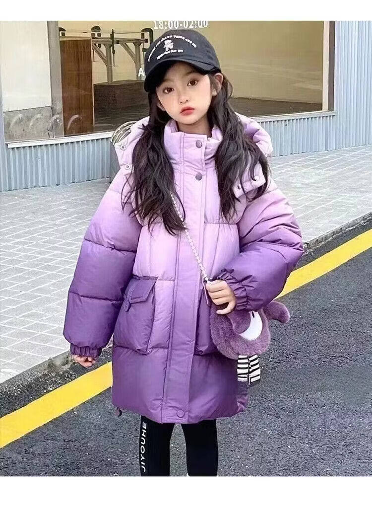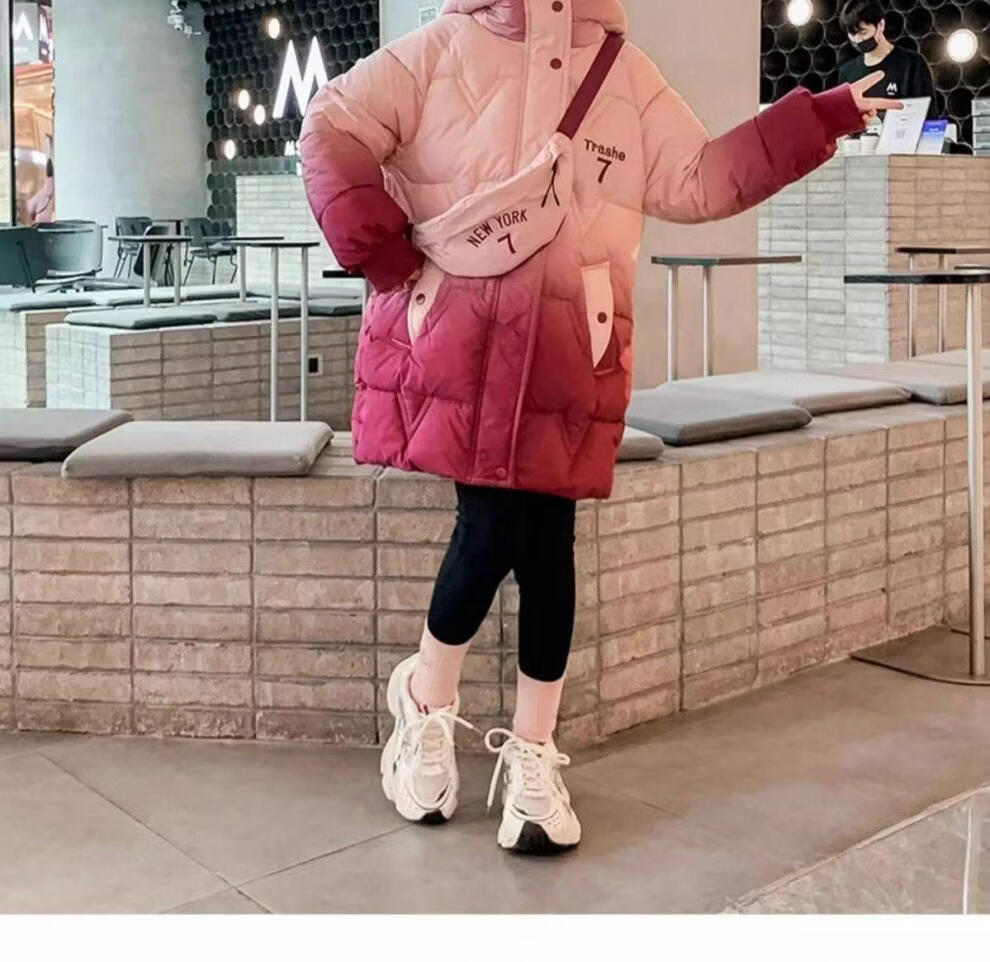 Disney Down Jacket Girls' Cotton Jacket New Winter Clothes Children's Cotton Clothes Gradient Medium and Big Children's Western Style Plus Velvet Thick Cotton Jackets Cotton Clothes Watermelon Red Egg Style Free Same Style Bag 130 (Recommended Height 115-125)